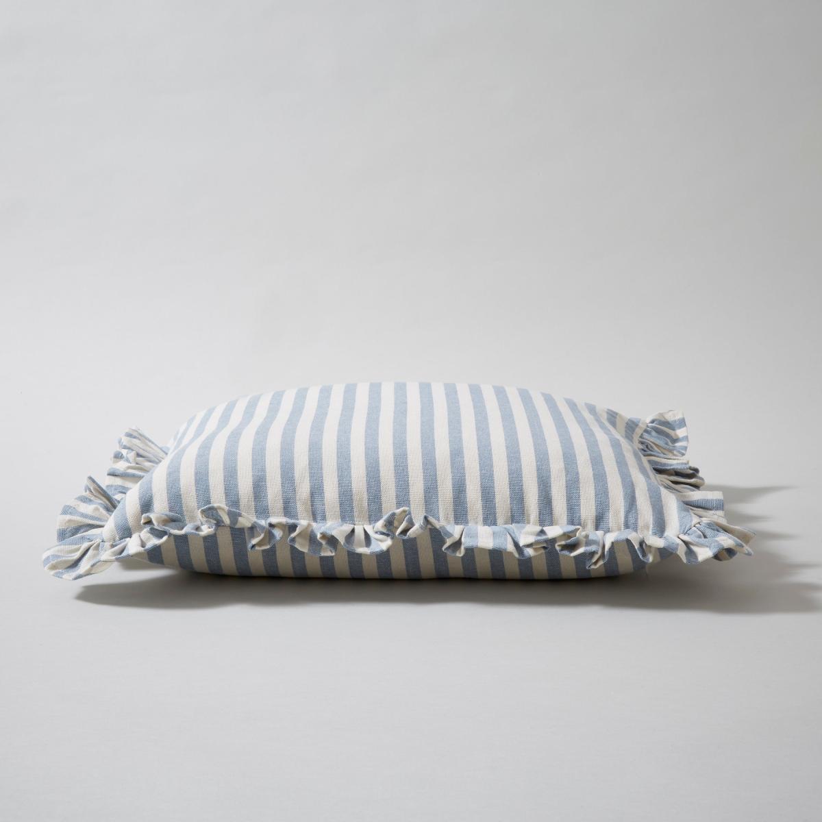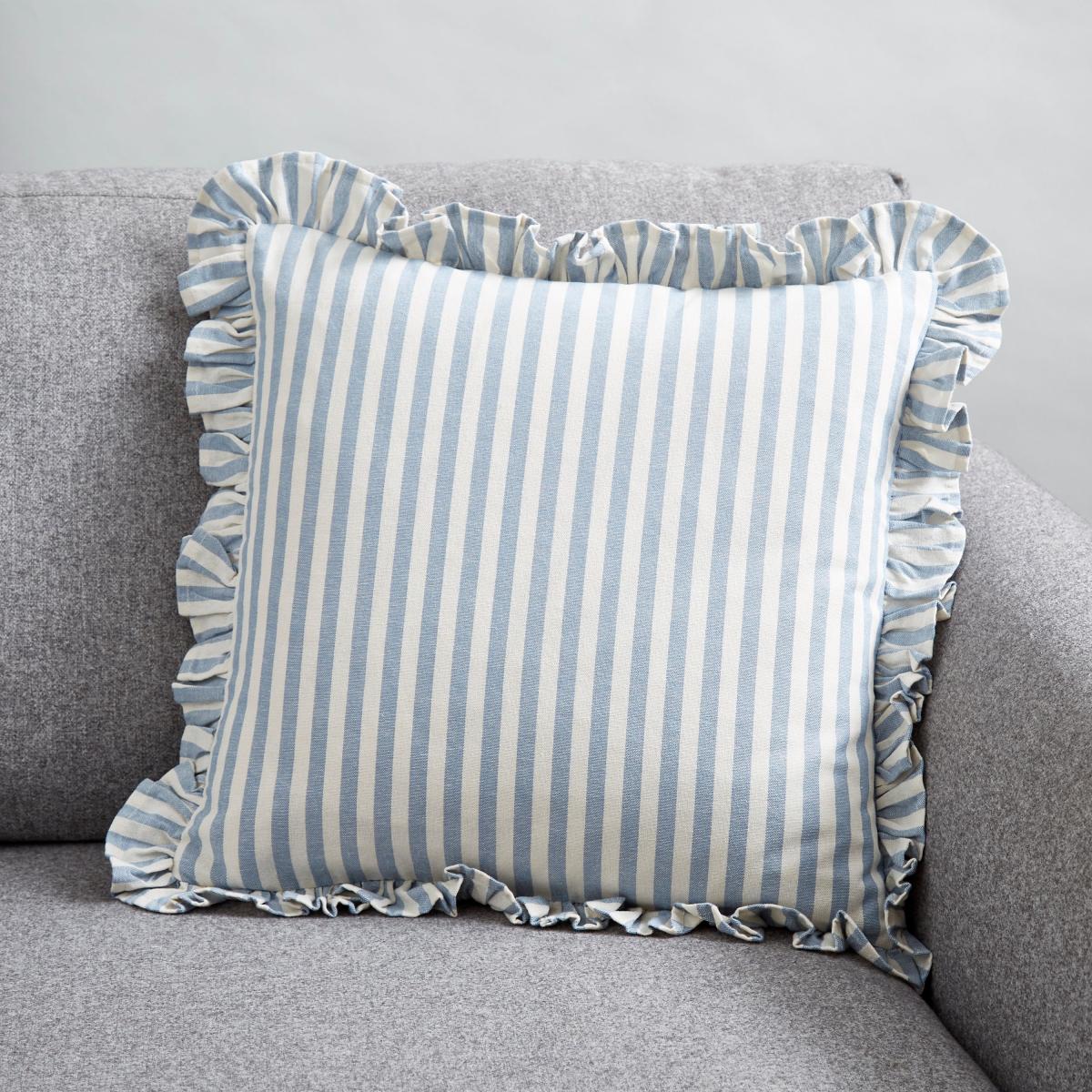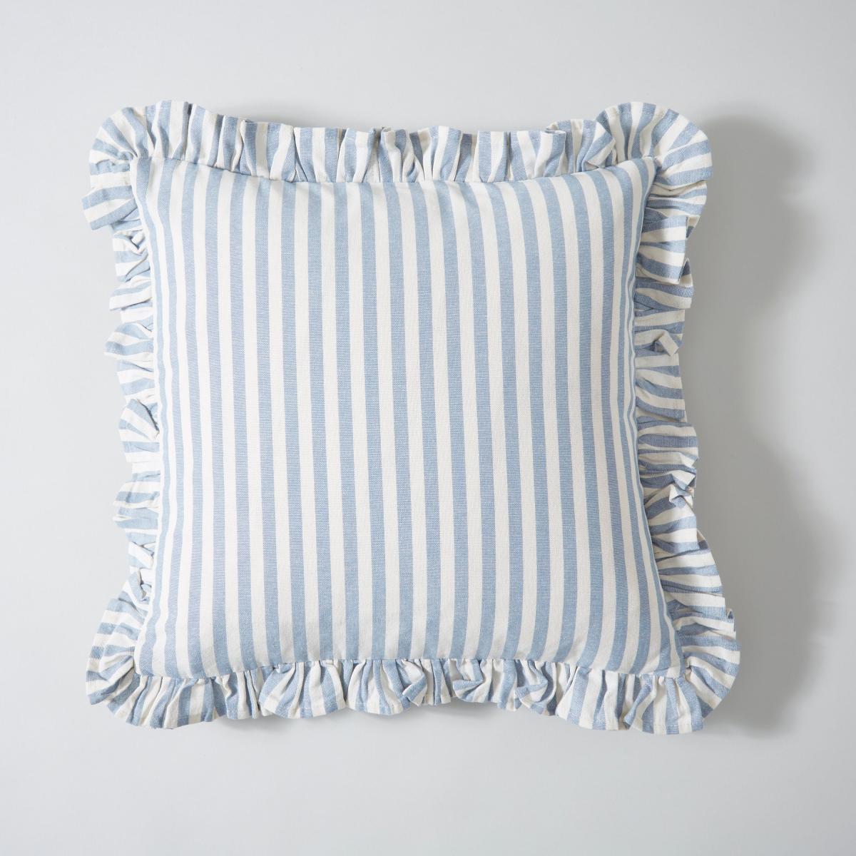 A pretty little cushion cover to brighten up your sofa or chair, this 100% cotton square fits right in any room. The classic striped design and frilled edge finish adds the finishing touch to any space!.