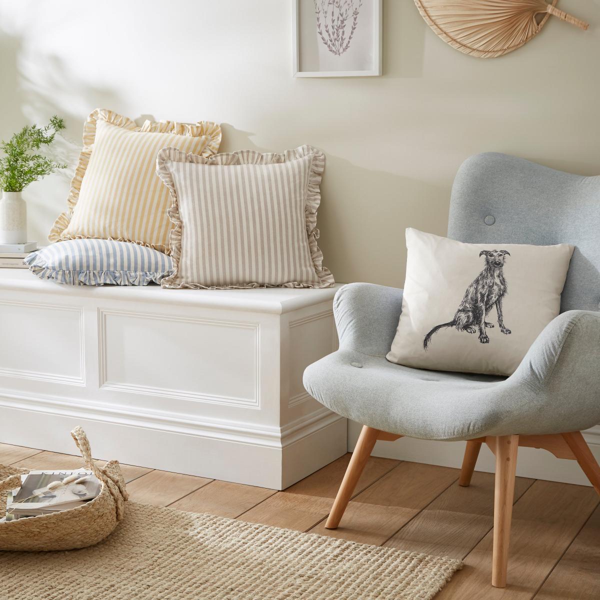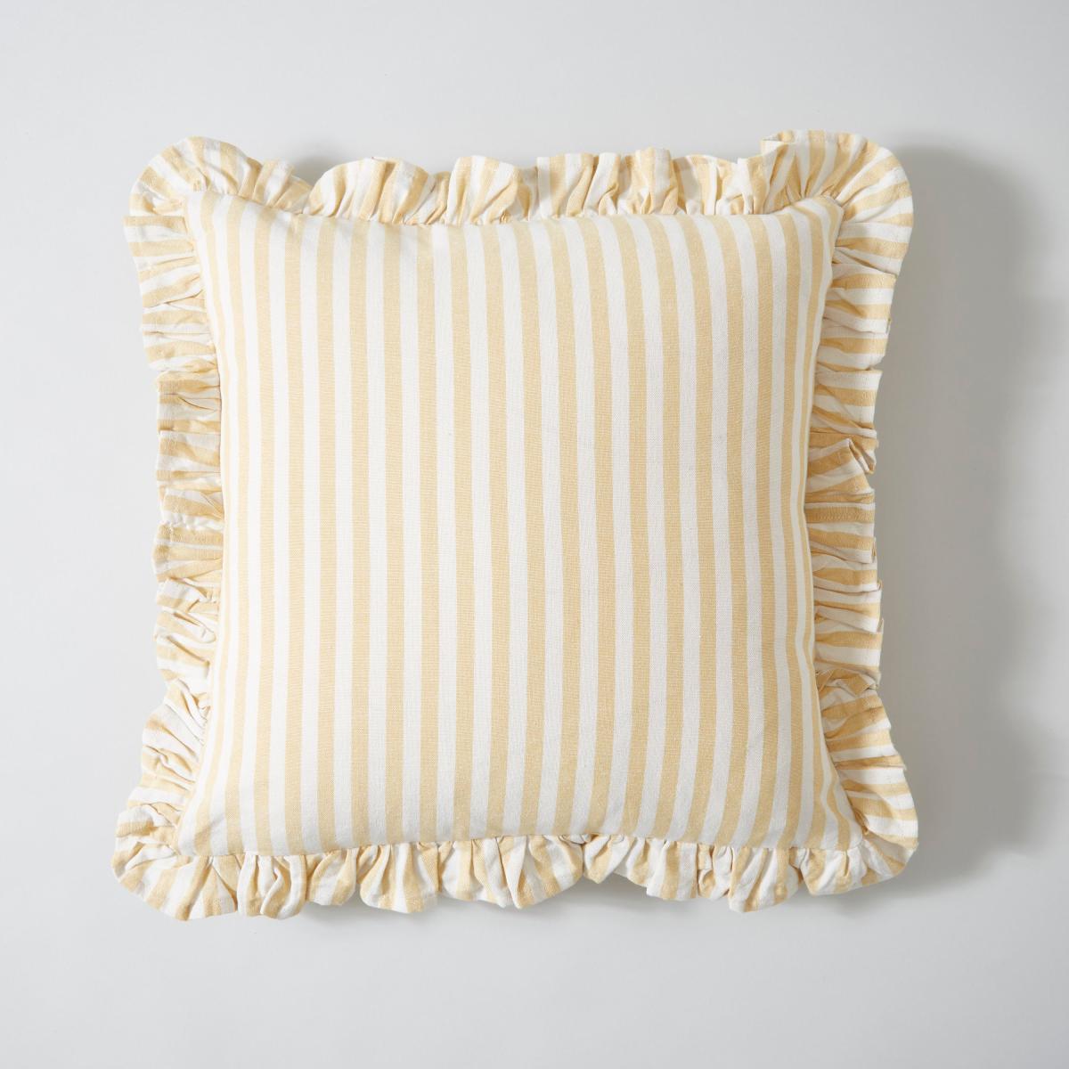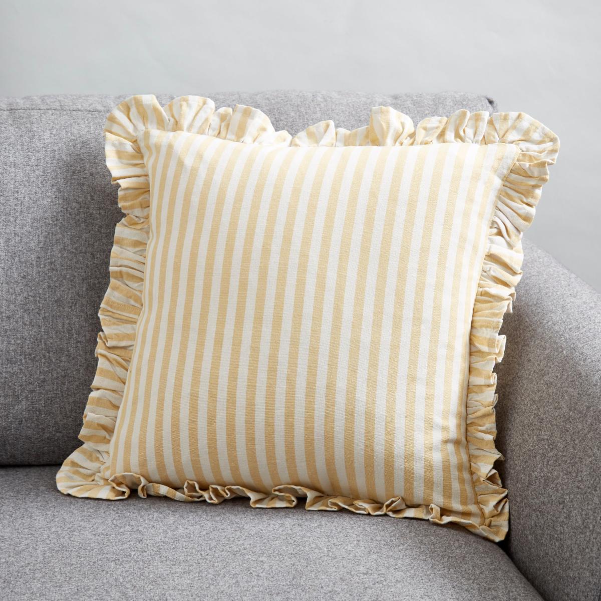 A pretty little cushion cover to brighten up your sofa or chair, this 100% cotton square fits right in any room. The classic striped design and frilled edge finish adds the finishing touch to any space!.