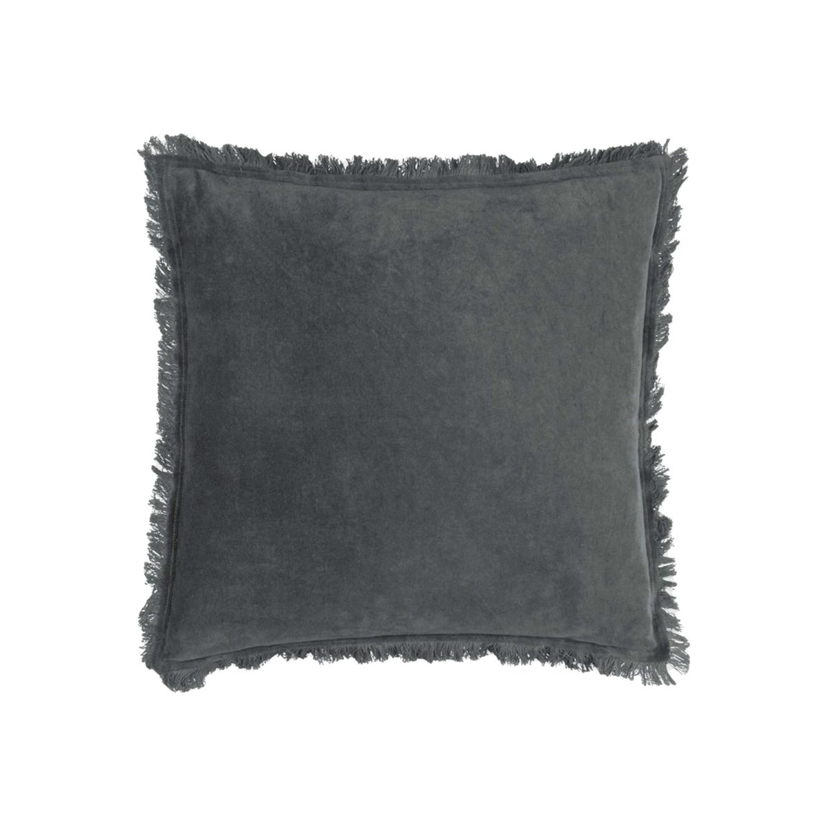 Fringed Velvet Slate Cushion, Square, Grey 100% Cotton | Barker & Stonehouse