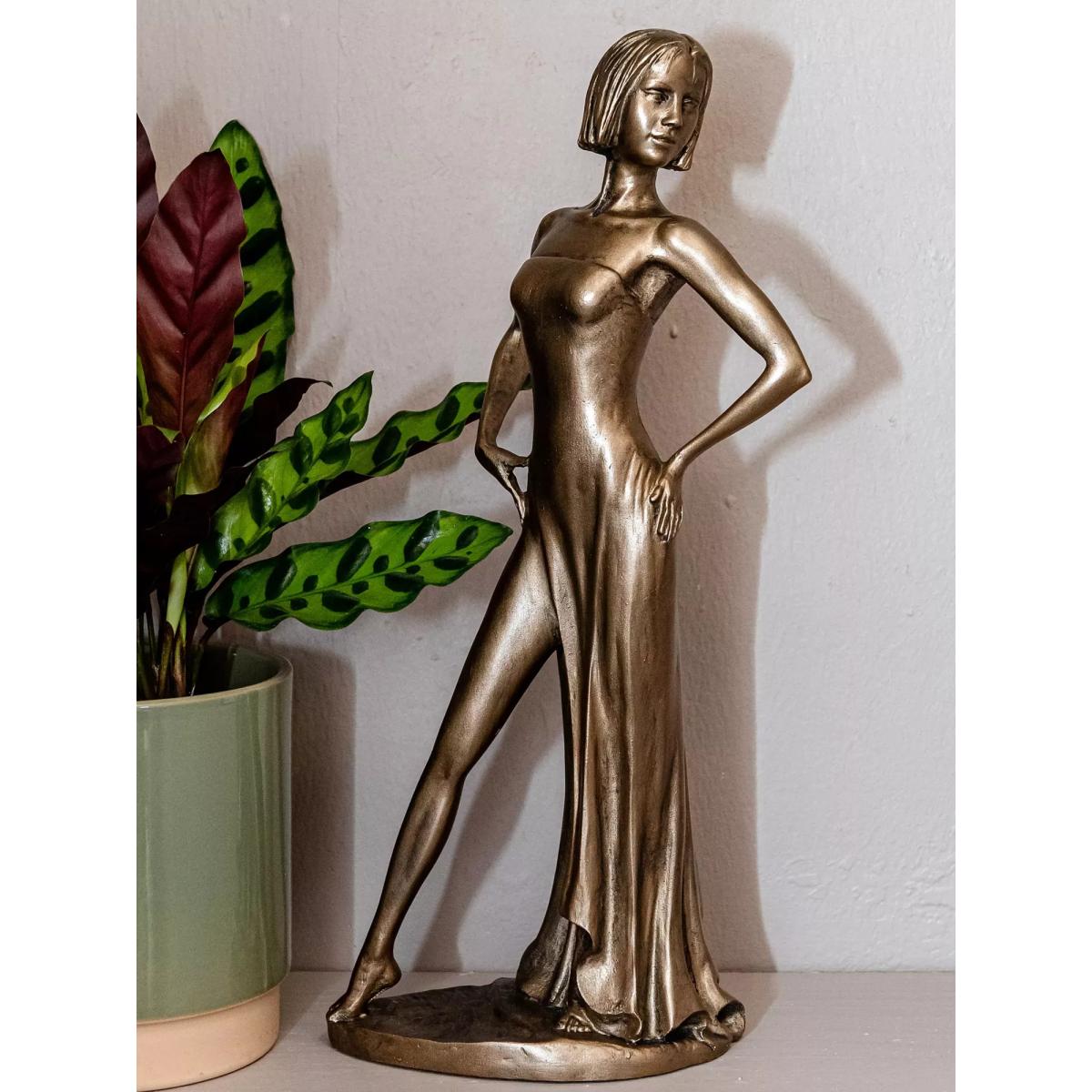An elegant figurine of a lady dancing by sculptor Mitko Kavrikov, capturing the poise of a dancer and the movement of her dress. Created from cold-cast bronze resin resulting in a solid ornament.