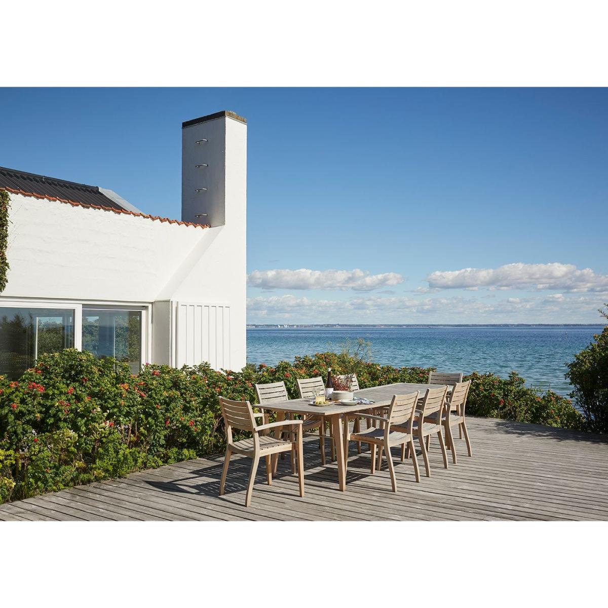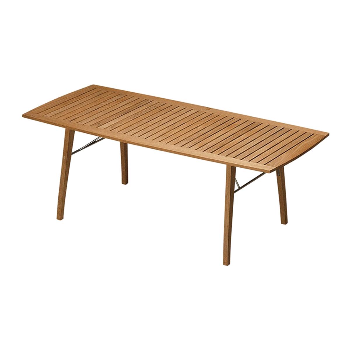 I’m a fan of the Ballare table for its simple, slatted teak top and slim, tapered legs - it brings warmth without overwhelming a space. It suits both contemporary and Scandi-inspired interiors, indoors or on a sheltered terrace, thanks to its natural finish and clean profile. For styling, I’d keep accessories minimal: a neutral linen runner, a couple of earthenware pots with trailing greenery and slender ceramic candleholders. If you need more colour, introduce cushions or a rug in muted tones rather than bold prints, so the table remains the focal point.