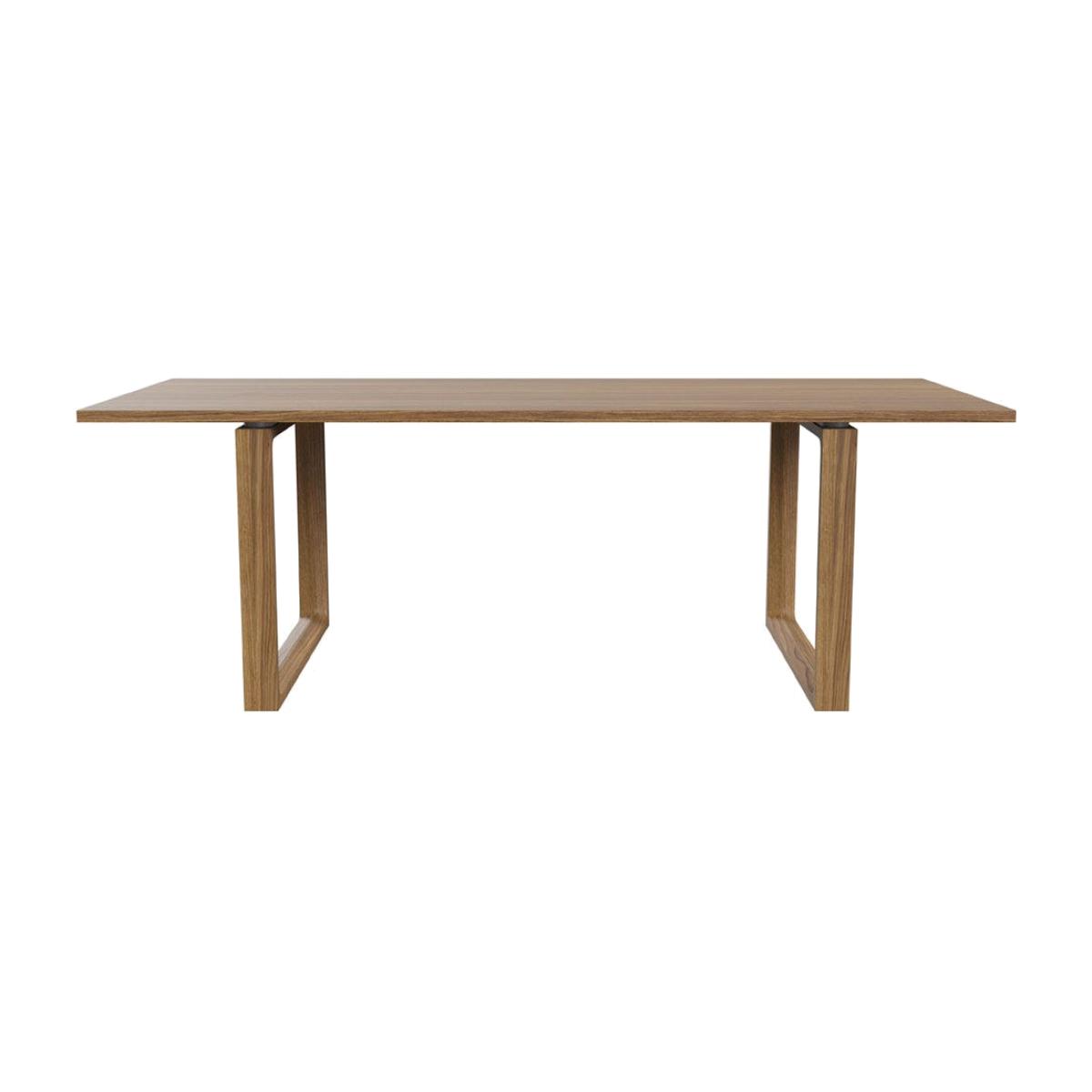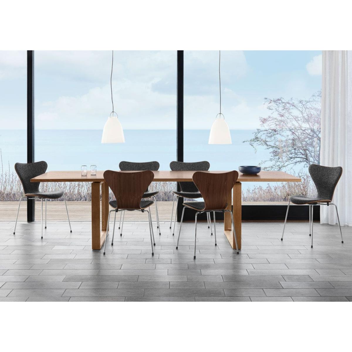 I love the Fritz Hansen dining table for its clean, minimalist design and the natural oak finish which adds warmth to any setting. It works particularly well in modern or Scandinavian-inspired interiors, where its simple lines can be complemented with textured textiles and statement lighting. For practical styling tips, pair it with neutral-toned chairs for a subtle look or add colourful or patterned upholstery to create an inviting, eclectic vibe. Its versatile design also makes it suitable for open-plan living spaces, where it can serve as a sturdy, stylish centerpiece for both everyday family meals and entertaining guests.