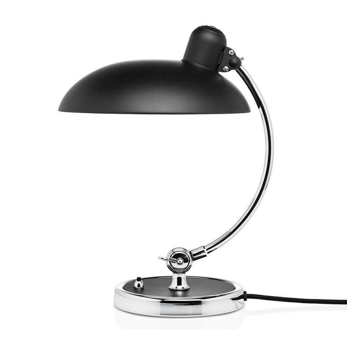 An original Bauhaus design lovingly reproduced by Fritz Hansen, the Kaiser Idell Luxus table lamp is a masterpiece of early modernist lighting. Beautifully balancing form and functionality, this officially licensed reproduction has a world-patented swivel-joint, arched tubular arm and iconic domed shade.