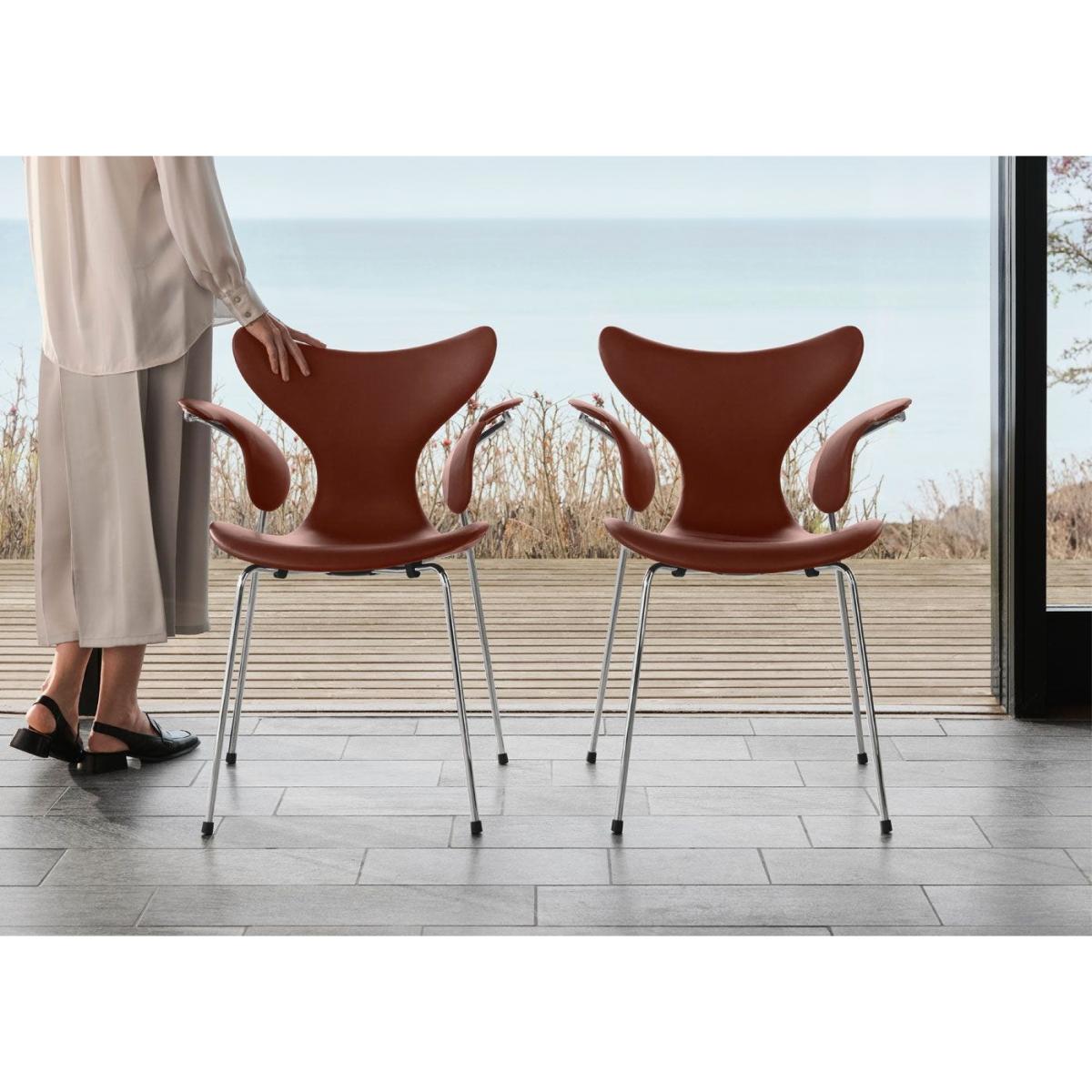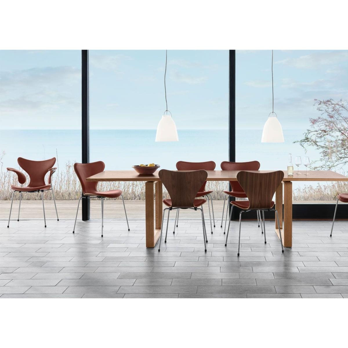 The Anniversary Collection curates a selection of the most iconic designs from Fritz Hansen's first 150 years. Arne Jacobsen first created the sleek, curvaceous Lily™ chair for Danmarks Nationalbank. Its characteristic wide shoulders and slim waist are striking examples of Jacobsen exploring and challenging the possibilities of veneer to create perfect curves and offer ultimate comfort. The Lily 3208 has angled armrests which accentuate the chair’s wood grain and require expert craftsmanship. This model is the pinnacle of Arne Jacobsen’s plywood designs and experimentations with wood veneer.