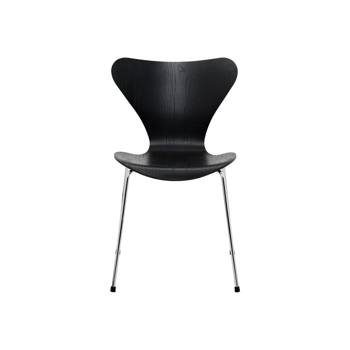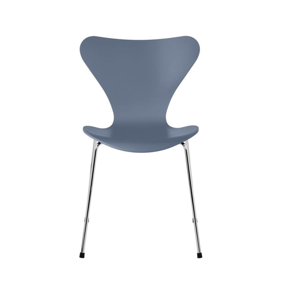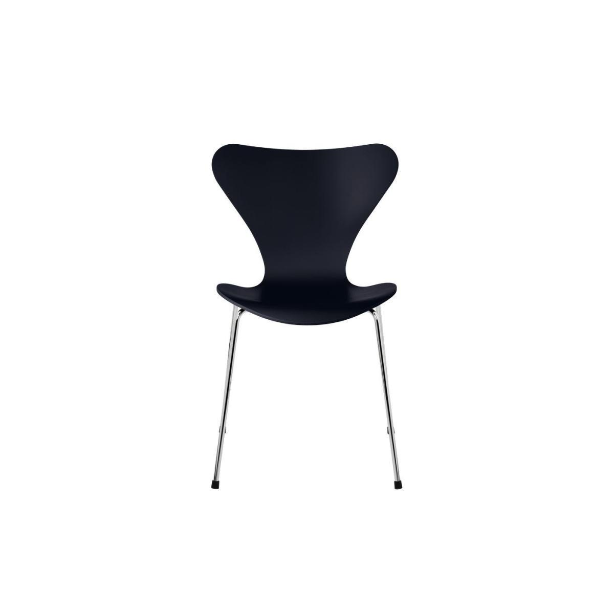 A ubiquitous design that still grabs your attention, the best-selling Fritz Hansen Series 7 Chair, first produced in 1955 by Arne Jacobsen is one of the most enduring designs of the 20th century. A truly timeless piece, the flowing form of the seat anticipates 1960s pop style, while the thin tubular legs nod to classic modernist industrial inspired design. A culmination of Jacobsen's experimentation with pressure moulded, laminated furniture the swooping curves along the backrest mirror those of the seat, while a pinched, cutaway waistline on the lower back provides a graceful silhouette. To finish, a beautifully textured lacquer is applied in a variety of colours.