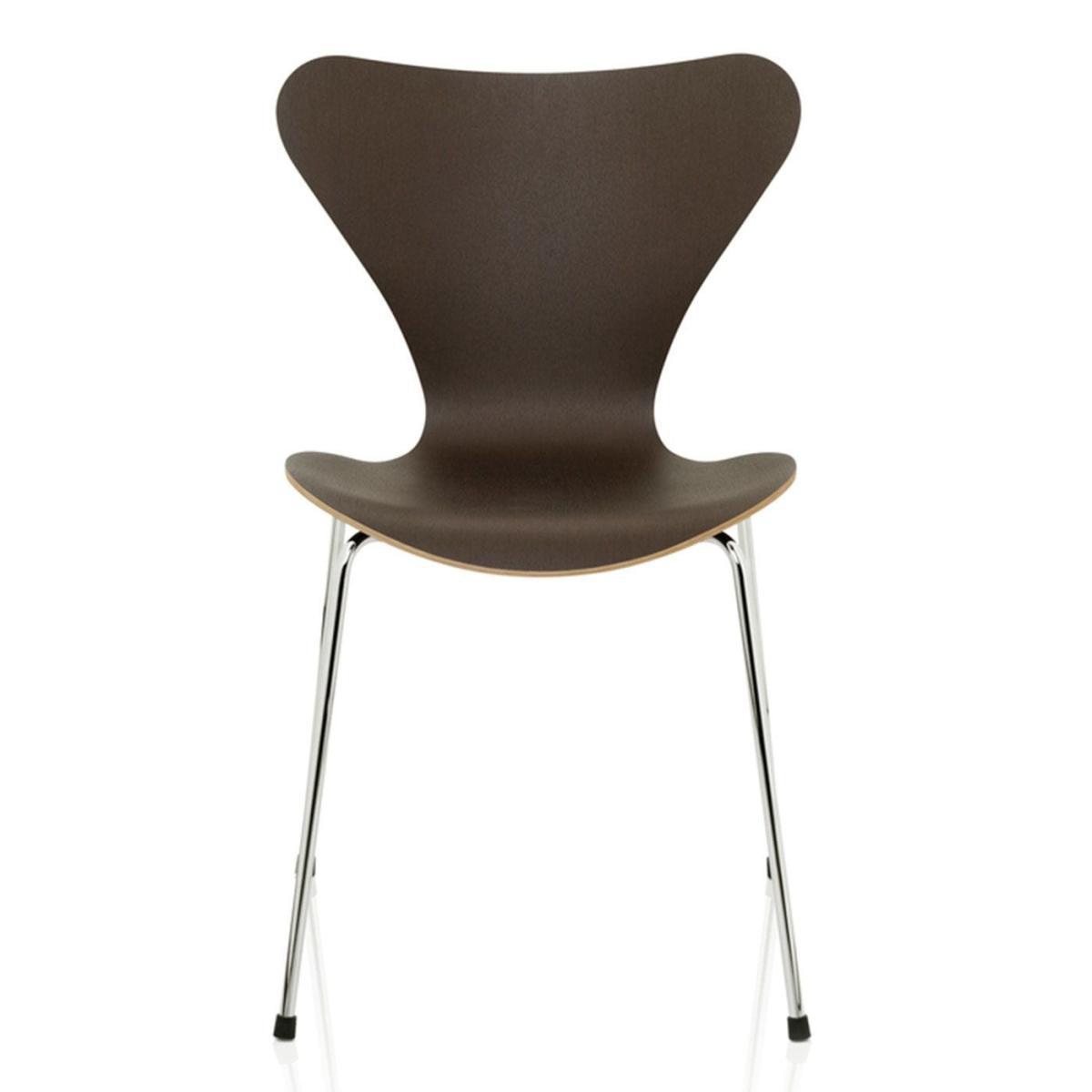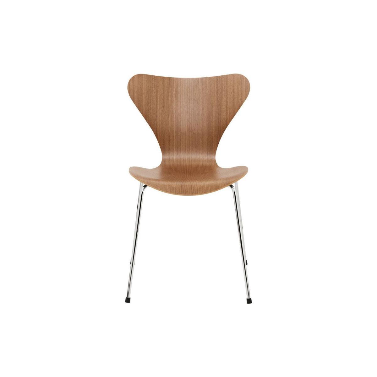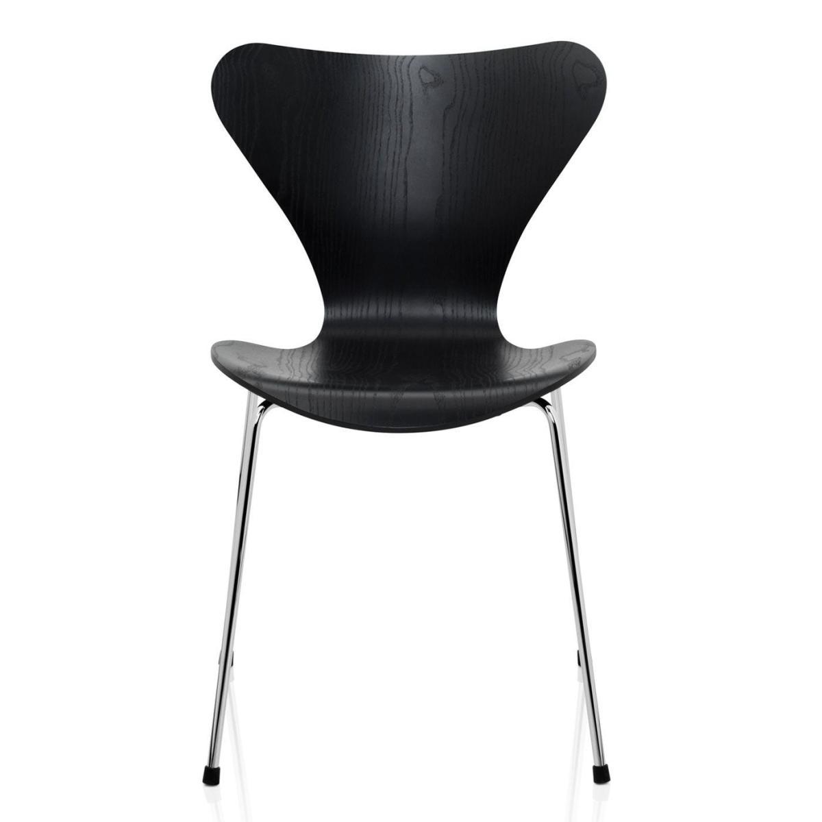 A ubiquitous design that still grabs your attention, the best-selling Fritz Hansen Series 7 Chair, first produced in 1955 by Arne Jacobsen is one of the most enduring designs of the 20th century. A truly timeless piece, the flowing form of the seat anticipates 1960s pop style, while the thin tubular legs nod to classic modernist industrial inspired design. A culmination of Jacobsen's experimentation with pressure moulded, laminated furniture the swooping curves along the backrest mirror those of the seat, while a pinched, cutaway waistline on the lower back provides a graceful silhouette. To finish, a beautifully textured lacquer is applied in a variety of colours.