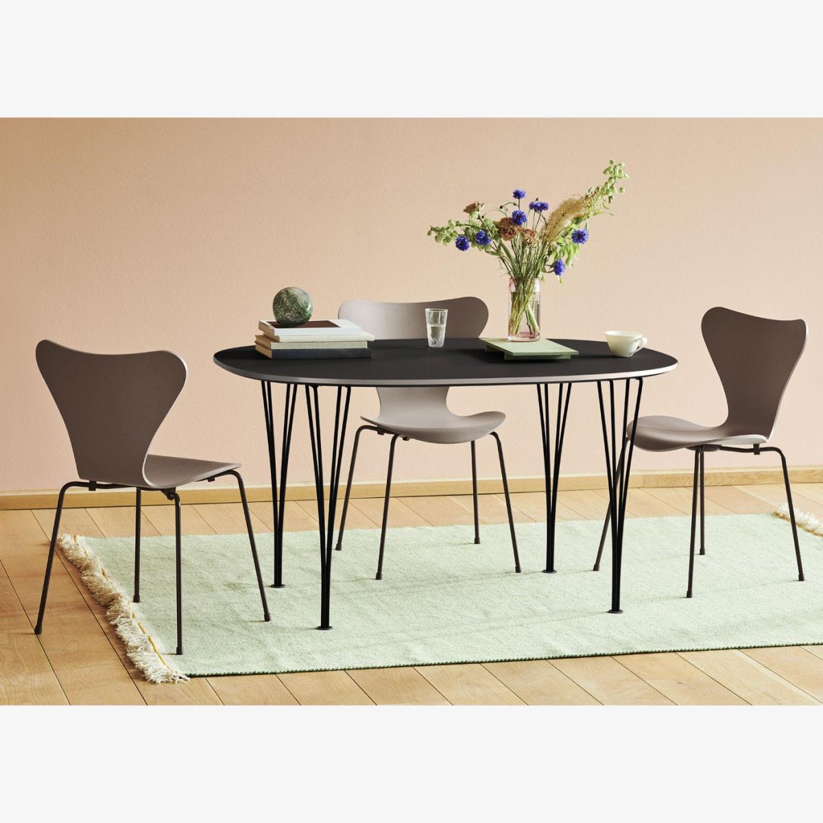 A ubiquitous design that still grabs your attention, the best-selling Fritz Hansen Series 7 Chair, first produced in 1955 by Arne Jacobsen is one of the most enduring designs of the 20th century. A truly timeless piece, the flowing form of the seat anticipates 1960s pop style, while the thin tubular legs nod to classic modernist industrial inspired design. A culmination of Jacobsen's experimentation with pressure moulded, laminated furniture the swooping curves along the backrest mirror those of the seat, while a pinched, cutaway waistline on the lower back provides a graceful silhouette. To finish, a beautifully textured lacquer is applied in a variety of colours.