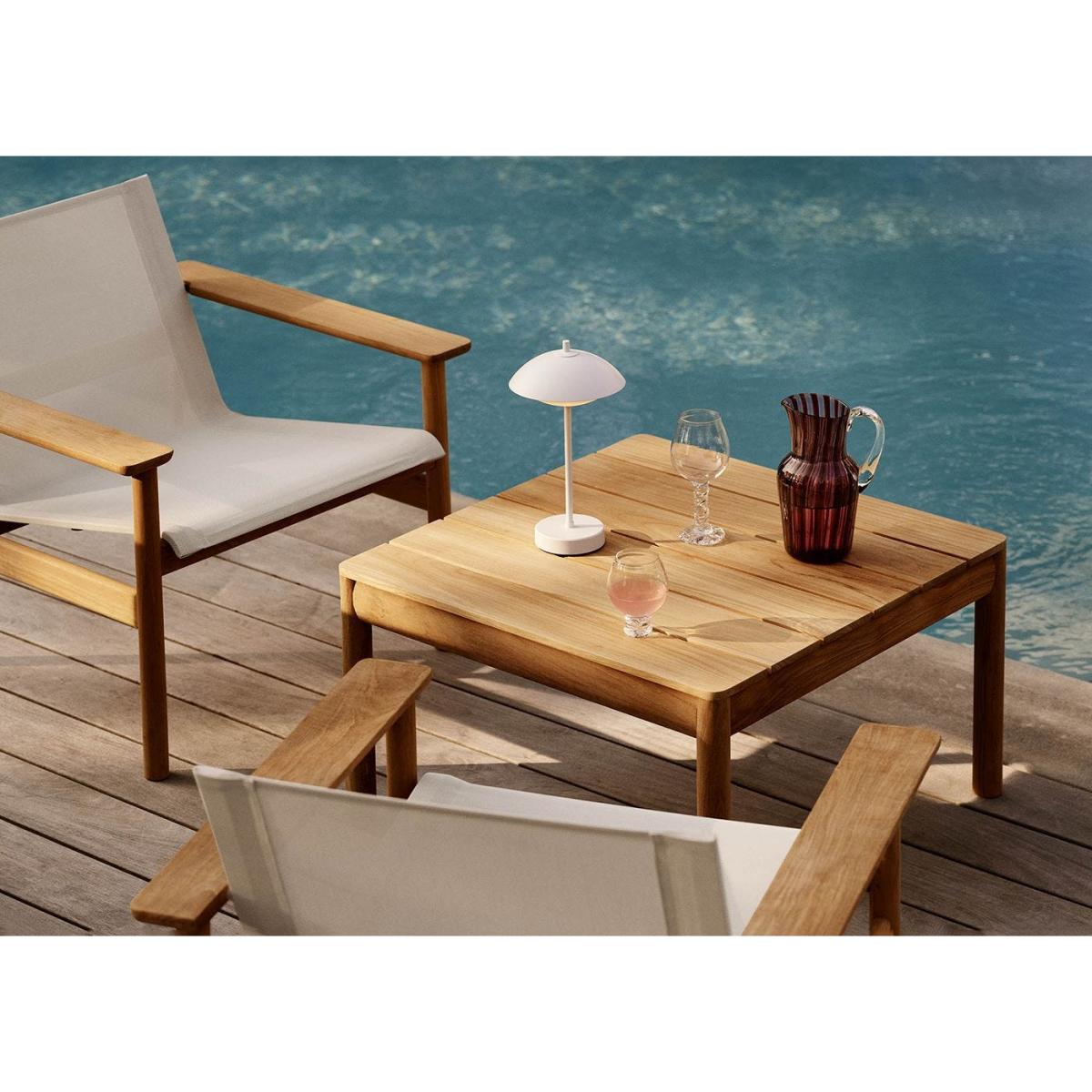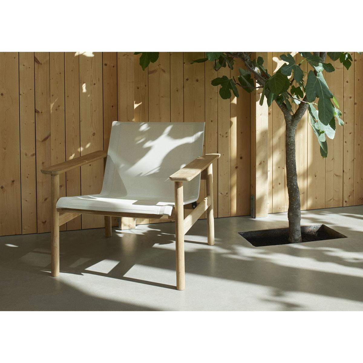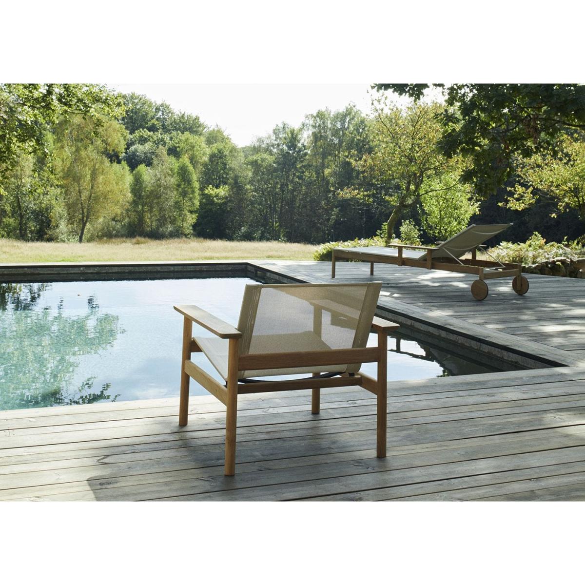 The Pelagus Lounge Chair is designed for laid-back days of sun and sociability. Perfectly at home on a leafy porch or by the pool on a hotel terrace, it features a solid teak frame that evokes classic Scandinavian design. The weatherproof sling seat adds a modern edge with its lightness and transparency. With a perfectly reclined angle for hours of comfort, its wide wooden armrests provide the ideal spot for a drink or a book.