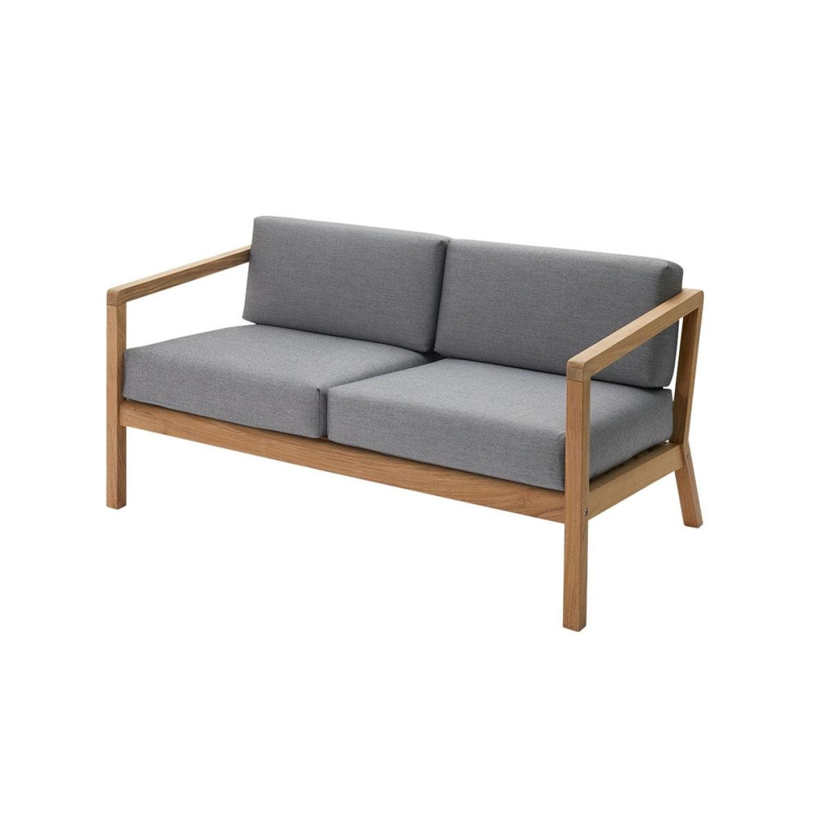 Designed for outdoor relaxation, the Virkelyst Outdoor 2 Seater Sofa blends style, comfort, and durability. Its solid teak frame supports deep, plush cushions upholstered in Oeko-Tex certified fabric, which is weatherproof, colourfast, and resistant to water, dirt, and mildew. Over time, the untreated teak develops a natural silvery patina, adding character.