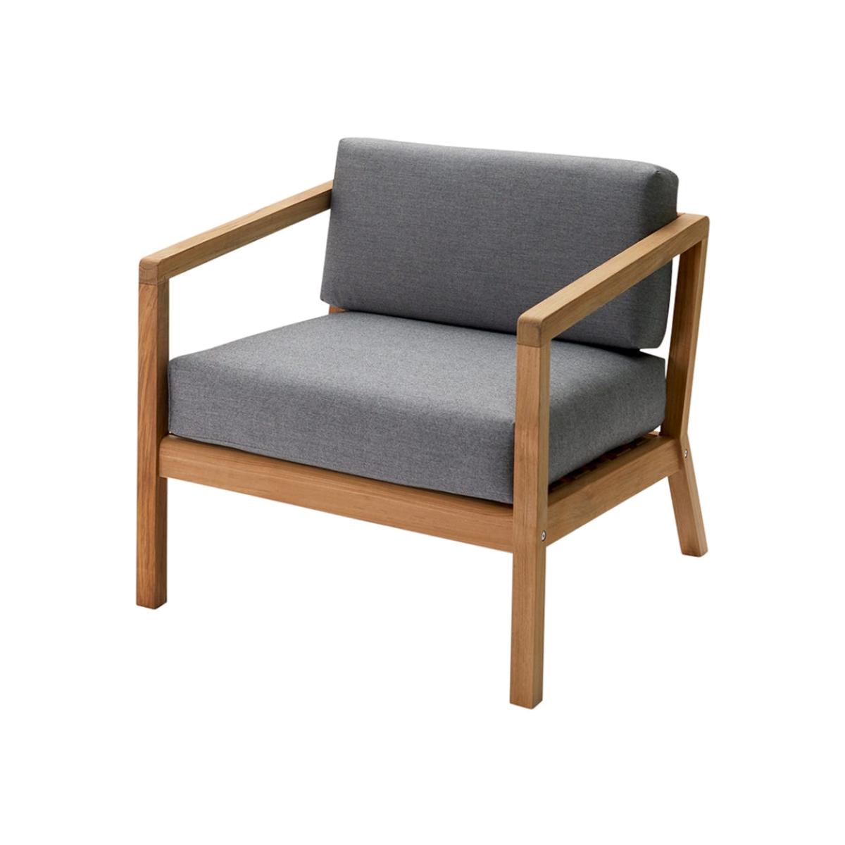 Designed for outdoor comfort, the Virkelyst Outdoor Lounge Chair blends Scandinavian simplicity with durable craftsmanship. Its solid teak frame offers a natural, timeless appeal, while the plush cushions provide exceptional support. Upholstered in Oeko-Tex certified fabric, the cushions are weatherproof, colourfast, and resistant to water, dirt, and mildew, ensuring lasting beauty in any outdoor setting.