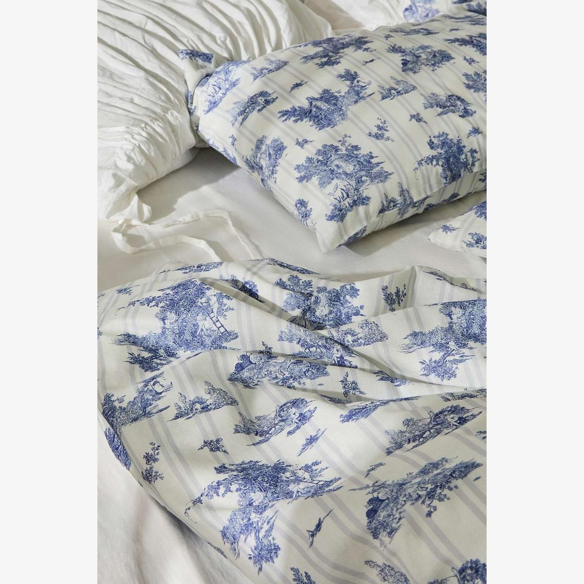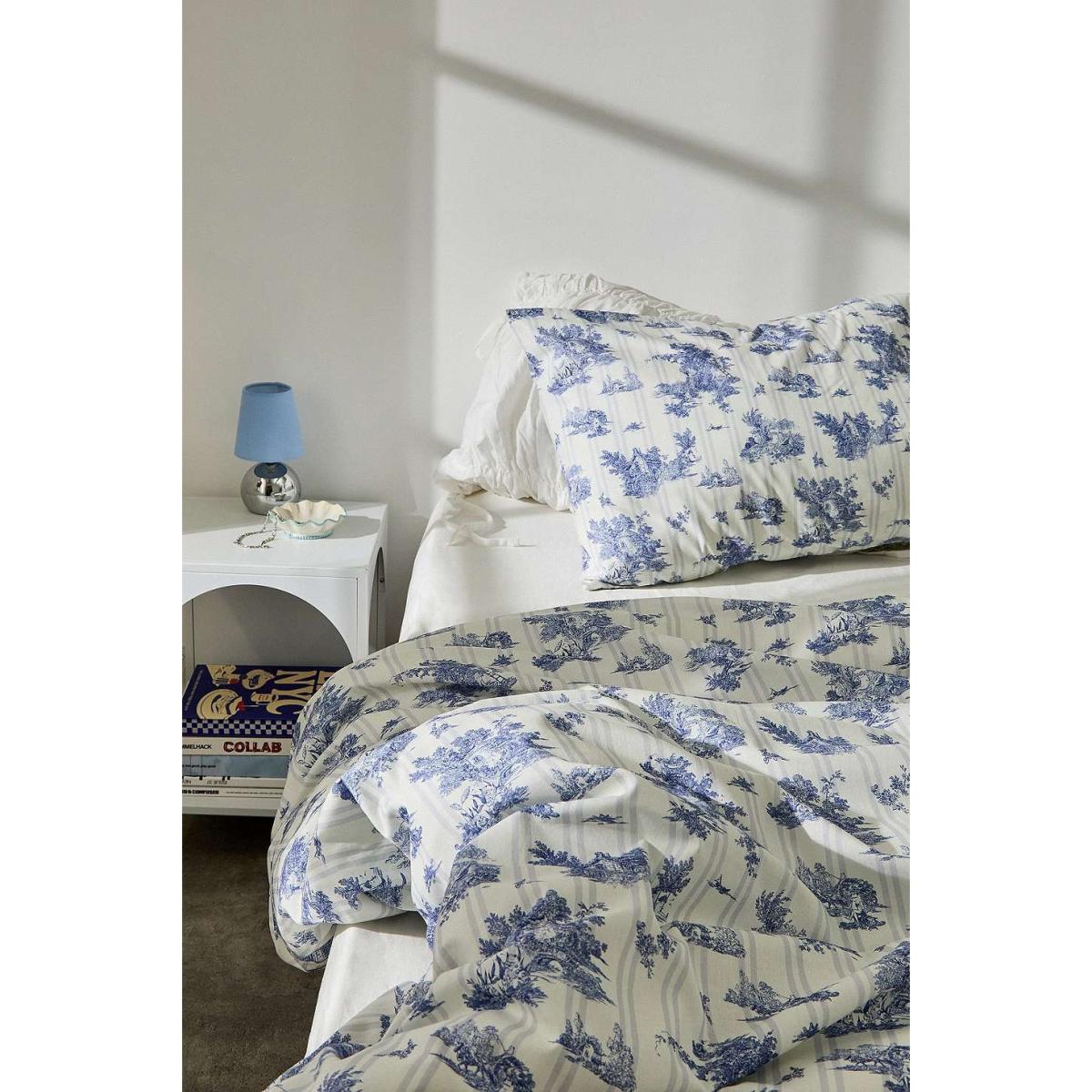 Pretty duvet set with a cute froggy toile print and subtle stripes. Crafted from cotton, it includes a single duvet cover and matching pillowcase. **Content + Care** \- 100% Cotton- Machine wash **Size** \- Single (includes 1 pillowcase): 135cm (W) x 200cm (H)- Pillowcase: 75cm x 50cm