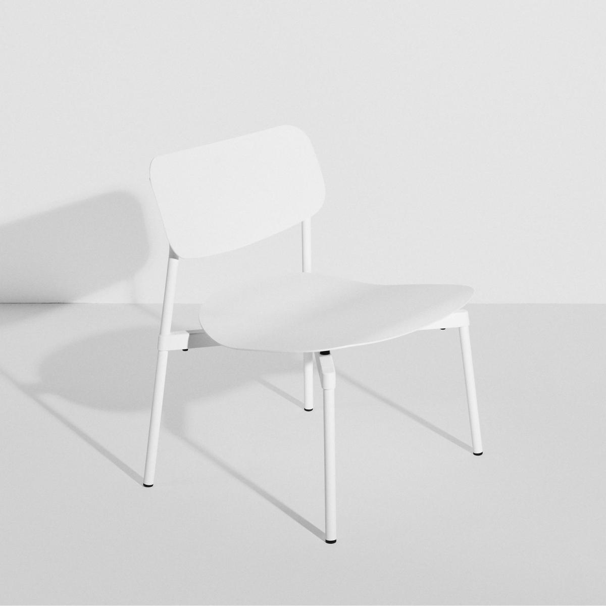 An armchair with a competitive spirit... Sleek lines and an incredibly lightweight form for this aluminium lounge chair design, with attention paid to every last detail. A real featherweight (just 5.9 kilos), this armchair is rock solid, particularly thanks to a specific and very technical assembly of its various parts. Fromme is a practical lounge chair boasting all the technical properties of a bike seat, thanks to the shock absorbers positioned underneath the seat which add flexibility and suppleness to create optimal comfort. The slightly curved shape of the seat and inclined plane at the front further increase comfort. More inspiration from the racing bike: Its sleek and moulded lines, which are a common feature throughout the Fromme collection. The Fromme collection boasts several functional benefits: comfort (thanks to the slightly curved seat and shock absorbers underneath), indoor and outdoor use, thanks to the choice of aluminium for the production of this piece and a textured matt paint with an anti-UV coating. The Fromme lounge chair can be stacked in sets of four, is water-resistant and certified for intensive outdoor use. An avid cyclist, Canadian designer Tom Chung used to climb Fromme Mountain, which is just outside of Vancouver, and was always fascinated by the technical performance of his bike. For his first collaboration with Petite Friture, Tom Chung wanted to reproduce the efficacy provided by his racing bike to reinvent the most common object, which nevertheless poses the biggest challenge for a designer: a chair. One year after the release of the Fromme chairs in 2020, Tom Chung and Petite Friture teamed up once again to release this extended range. This new addition to the line of avant-garde products from Petite Friture proves once again that the brand gives young designers a chance, trusting them to create key pieces for its collections. Each colour offers a new perspective for the minimalist design of the incredibly lightweight, robust and efficient lounge chair.