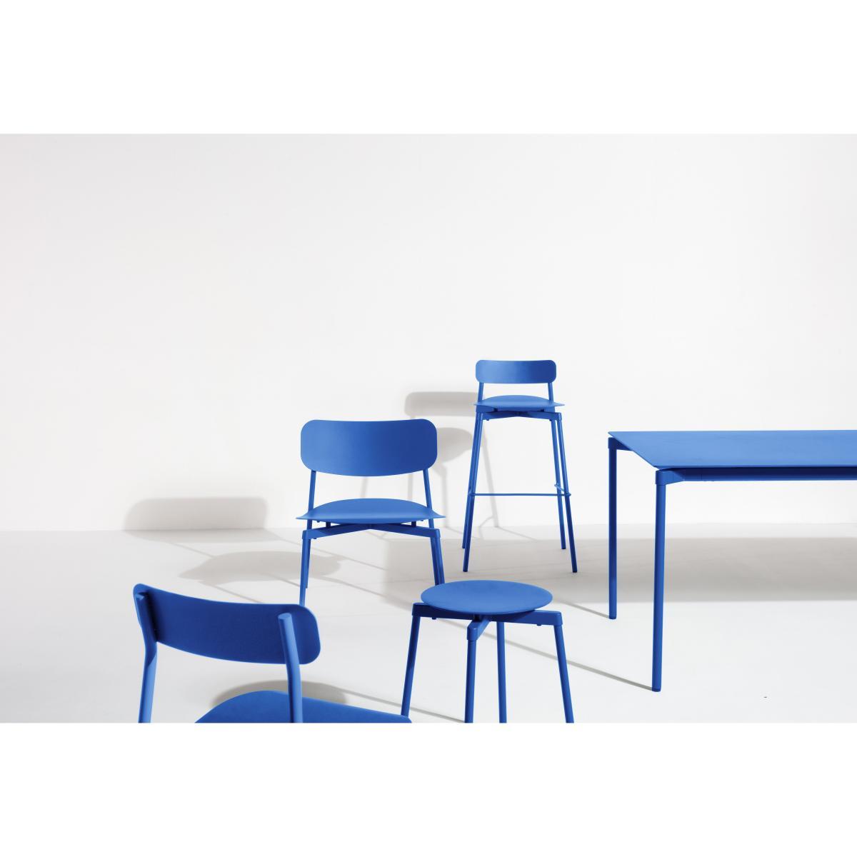 An armchair with a competitive spirit. Sleek lines and an incredibly lightweight form for this aluminium chair design, with attention paid to every last detail. A real featherweight (just 5. 9 kilos), this armchair is rock solid, particularly thanks to a specific and very technical assembly of its various parts. Fromme is a practical lounge chair boasting all of the technical properties of a bike seat, thanks to the shock absorbers positioned underneath the seat which add flexibility and suppleness to create optimal comfort. The slightly curved shape of the seat and inclined plane at the front further increase comfort. More inspiration from the racing bike: Its sleek and moulded lines, which are a common feature throughout the Fromme collection. The Fromme collection boasts several functional benefits: comfort (thanks to the slightly curved seat and the shock absorbers underneath), indoor and outdoor use, thanks to choice of aluminium for the production of this peace and a textured matte paint with an anti-UV coating. The Fromme lounge chair can be stacked in sets of four, is water-resistant and is certified for intensive outdoor use. An avid cyclist, Canadian designer Tom Chung used to climb Fromme Mountain, which is just outside of Vancouver, and was always fascinated by the technical performance of his bike. For his first collaboration with Petite Friture, Tom Chung wanted to reproduce the efficacy provided by his racing bike to reinvent the most common object, which nevertheless poses the biggest challenge for a designer: a chair. One year after the release of the Fromme chairs in 2020, Tom Chung and Petite Friture teamed up once again to release this extended range. This new addition to the line of avant-garde products from Petite Friture proves once again that the brand gives young designers a chance, trusting them to create key pieces for its collections. Each colour offers a new perspective for the minimalist design of the incredibly lightweight, robust and efficient lounge chair.