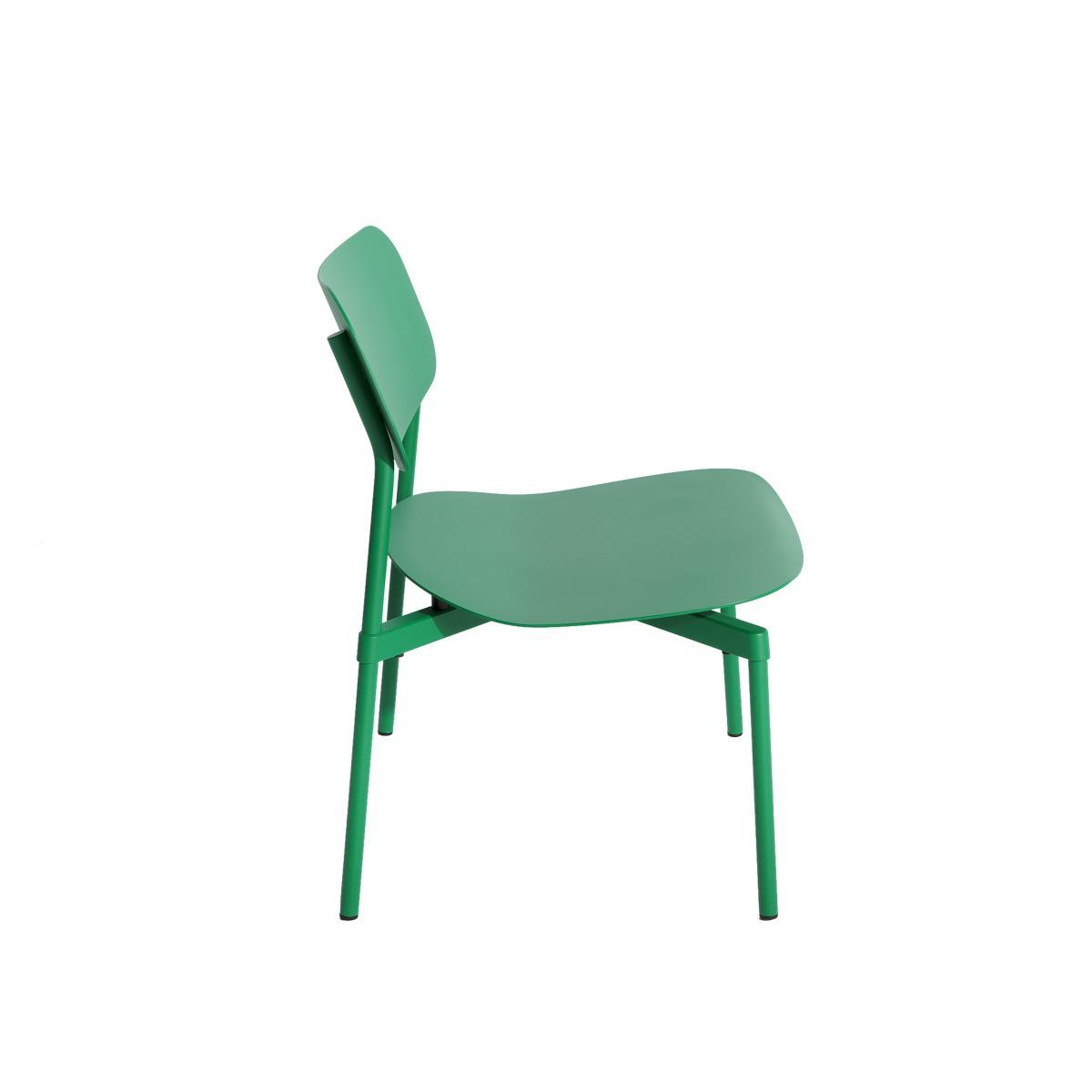 An armchair with a competitive spirit. Sleek lines and an incredibly lightweight form for this aluminium chair design, with attention paid to every last detail. A real featherweight (just 5. 9 kilos), this armchair is rock solid, particularly thanks to a specific and very technical assembly of its various parts. Fromme is a practical lounge chair boasting all of the technical properties of a bike seat, thanks to the shock absorbers positioned underneath the seat which add flexibility and suppleness to create optimal comfort. The slightly curved shape of the seat and inclined plane at the front further increase comfort. More inspiration from the racing bike: Its sleek and moulded lines, which are a common feature throughout the Fromme collection. The Fromme collection boasts several functional benefits: comfort (thanks to the slightly curved seat and the shock absorbers underneath), indoor and outdoor use, thanks to choice of aluminium for the production of this peace and a textured matte paint with an anti-UV coating. The Fromme lounge chair can be stacked in sets of four, is water-resistant and is certified for intensive outdoor use. An avid cyclist, Canadian designer Tom Chung used to climb Fromme Mountain, which is just outside of Vancouver, and was always fascinated by the technical performance of his bike. For his first collaboration with Petite Friture, Tom Chung wanted to reproduce the efficacy provided by his racing bike to reinvent the most common object, which nevertheless poses the biggest challenge for a designer: a chair. One year after the release of the Fromme chairs in 2020, Tom Chung and Petite Friture teamed up once again to release this extended range. This new addition to the line of avant-garde products from Petite Friture proves once again that the brand gives young designers a chance, trusting them to create key pieces for its collections. Each colour offers a new perspective for the minimalist design of the incredibly lightweight, robust and efficient lounge chair.
