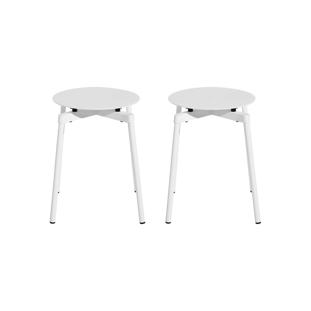 Set of 2 identical stools. A stool with a competitive spirit... Sleek lines and an incredibly lightweight form for this aluminium stool design, with attention paid to every last detail. A real featherweight (just 2.6 kilos), this stool is rock solid thanks in particular to a specific and very technical assembly of the various parts. Fromme is a practical stool boasting all of the technical properties of a bike seat, thanks to the shock absorbers positioned underneath the seat which add flexibility and suppleness to create optimal comfort. More inspiration from the racing bike: Its sleek and moulded lines, which are a common feature throughout the Fromme collection. The Fromme collection boasts several functional benefits: comfort (thanks to the shock absorbers underneath), indoor and outdoor use, thanks to choice of aluminium for the production of this peace and a textured matte paint with an anti-UV coating. The Fromme stool can be stacked, is water-resistant and certified for intensive outdoor use. An avid cyclist, Canadian designer Tom Chung used to climb Fromme Mountain, which is just outside of Vancouver, and was always fascinated by the technical performance of his bike. For his first collaboration with Petite Friture, Tom Chung wanted to reproduce the efficacy provided by his racing bike to reinvent the most common object, which nevertheless poses the biggest challenge for a designer: a chair. One year after the release of the Fromme chairs in 2020, Tom Chung and Petite Friture teamed up once again to release this extended range. This new addition to the line of avant-garde products from Petite Friture proves once again that the brand gives young designers a chance, trusting them to create key pieces for its collections. Each colour offers a new perspective for the minimalist design of the incredibly lightweight, robust and efficient lounge chair.