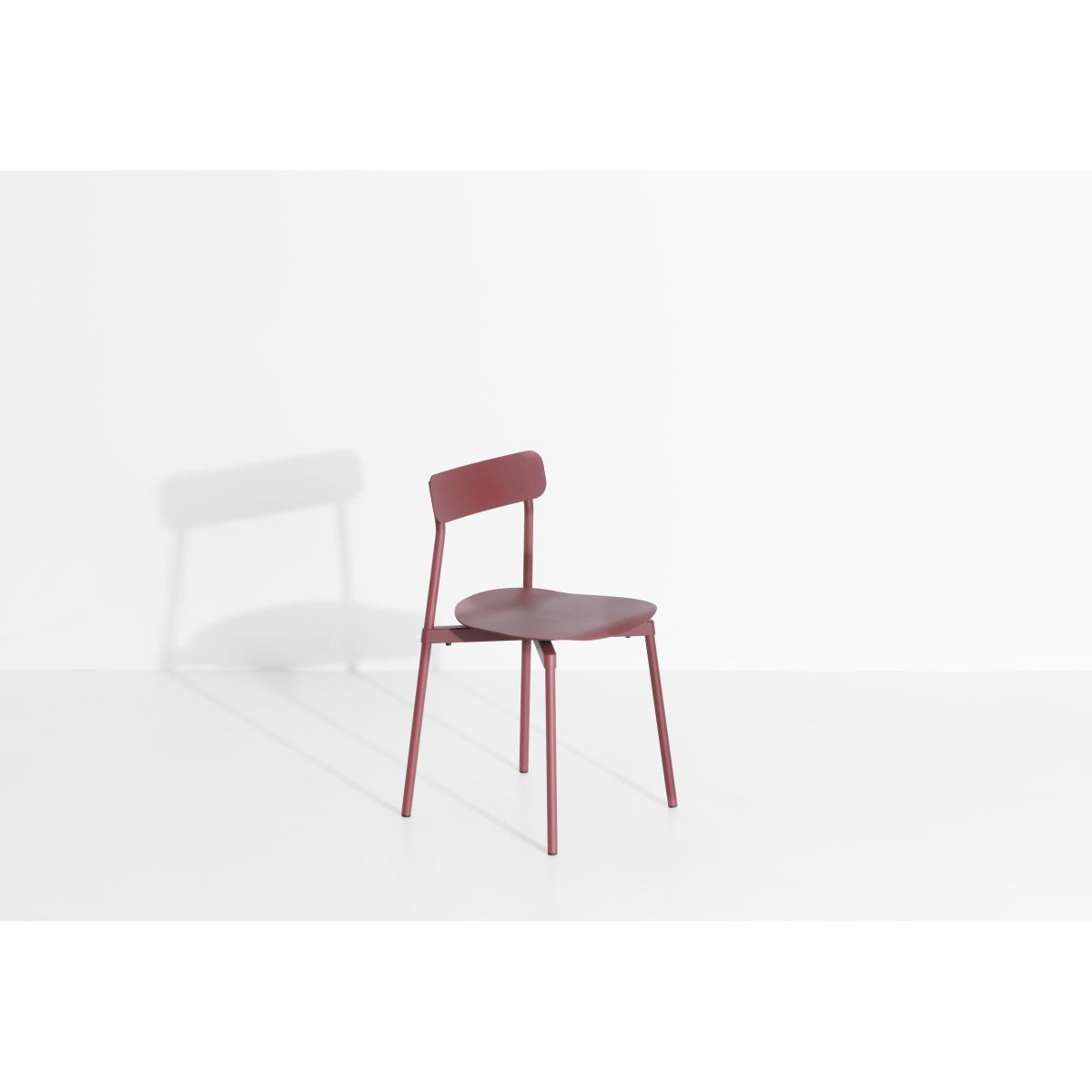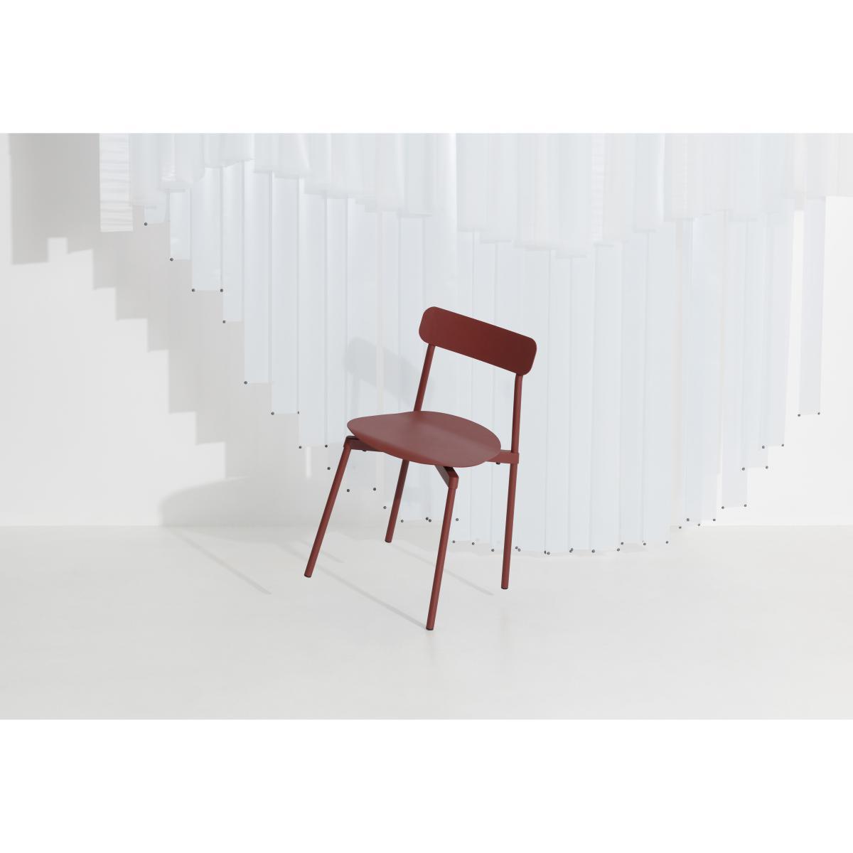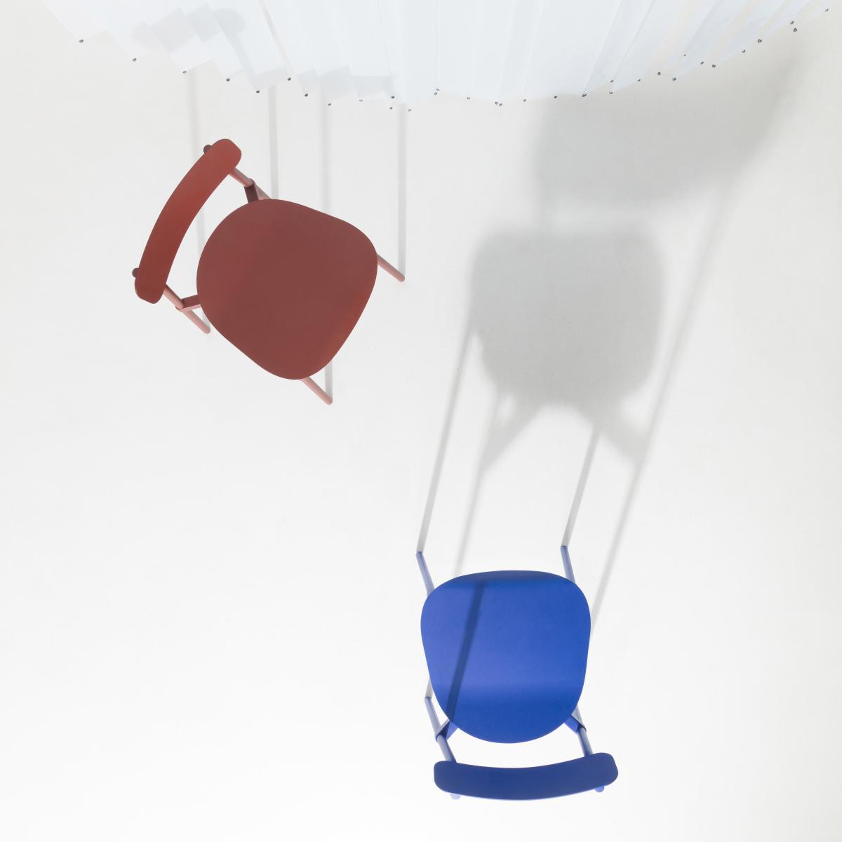 Competition chair. Pure lines and incredible lightness for this aluminium chair with its extremely successful design. A real featherweight (just 4 kilos), this chair is rock solid thanks in particular to a specific and very technical assembly of the different parts. Highly ergonomic, the Fromme chair stands out with the absorbers placed under the seat which, like shock absorbers on a car, provide flexibility and suppleness for optimal comfort. The slightly curved shape of the seat and inclined plane on its front further increase comfort. A confirmed cyclist, Canadian designer Yom Chung used to climb Fromme Mountain outside Vancouver and was fascinated by the technical performance of his bike. He sought to rediscover the efficiency it brought him to reinvent the most common object and yet the greatest challenge for a designer: a chair. This new addition to the line of avant-garde products from Petite Friture proves once again that the brand gives young designers a chance and trusts them to create key pieces for its collections. Each colour gives a new conception of the sleek design of this incredibly light and efficient chair. Made of aluminium, it can be used both indoors and out and is easily stackable.