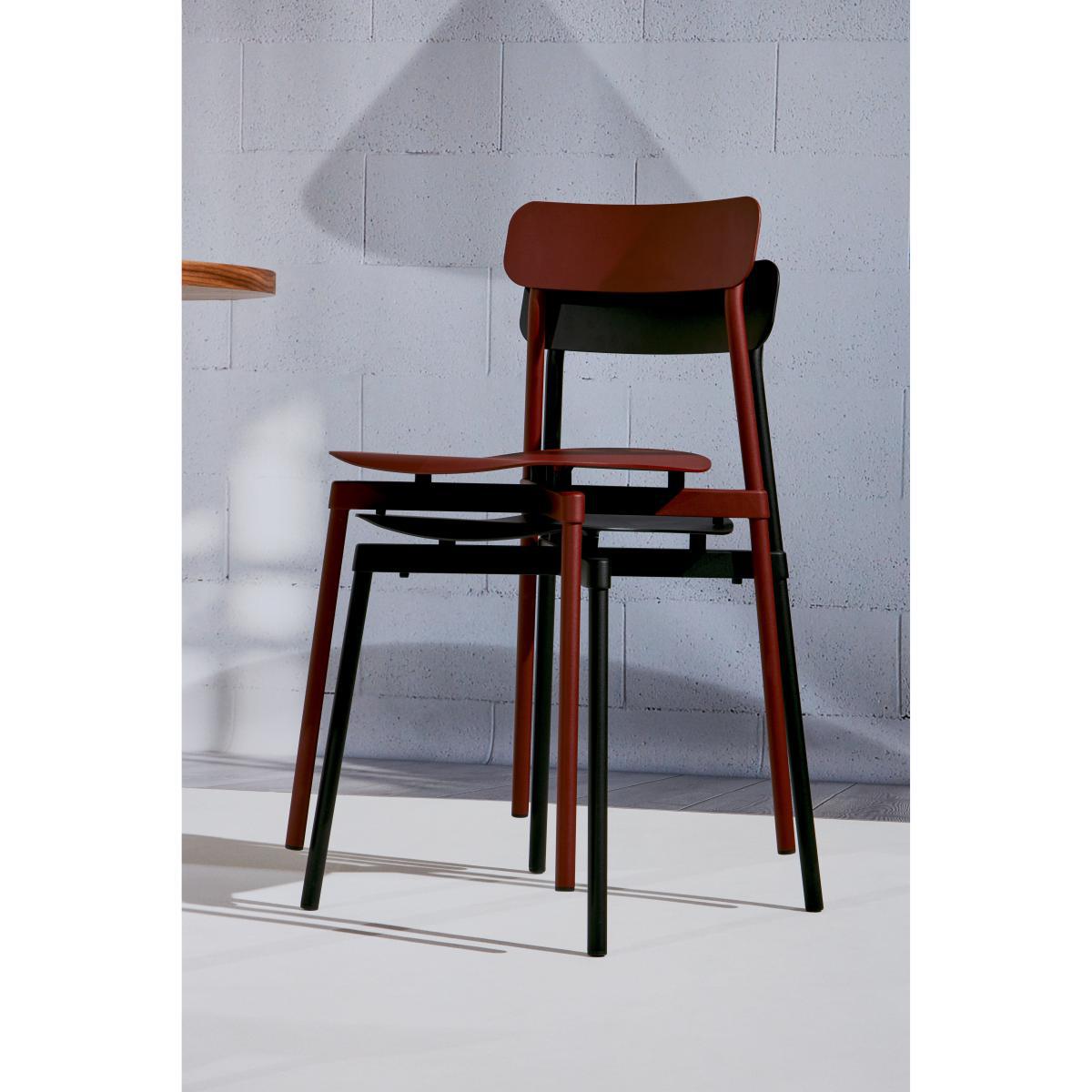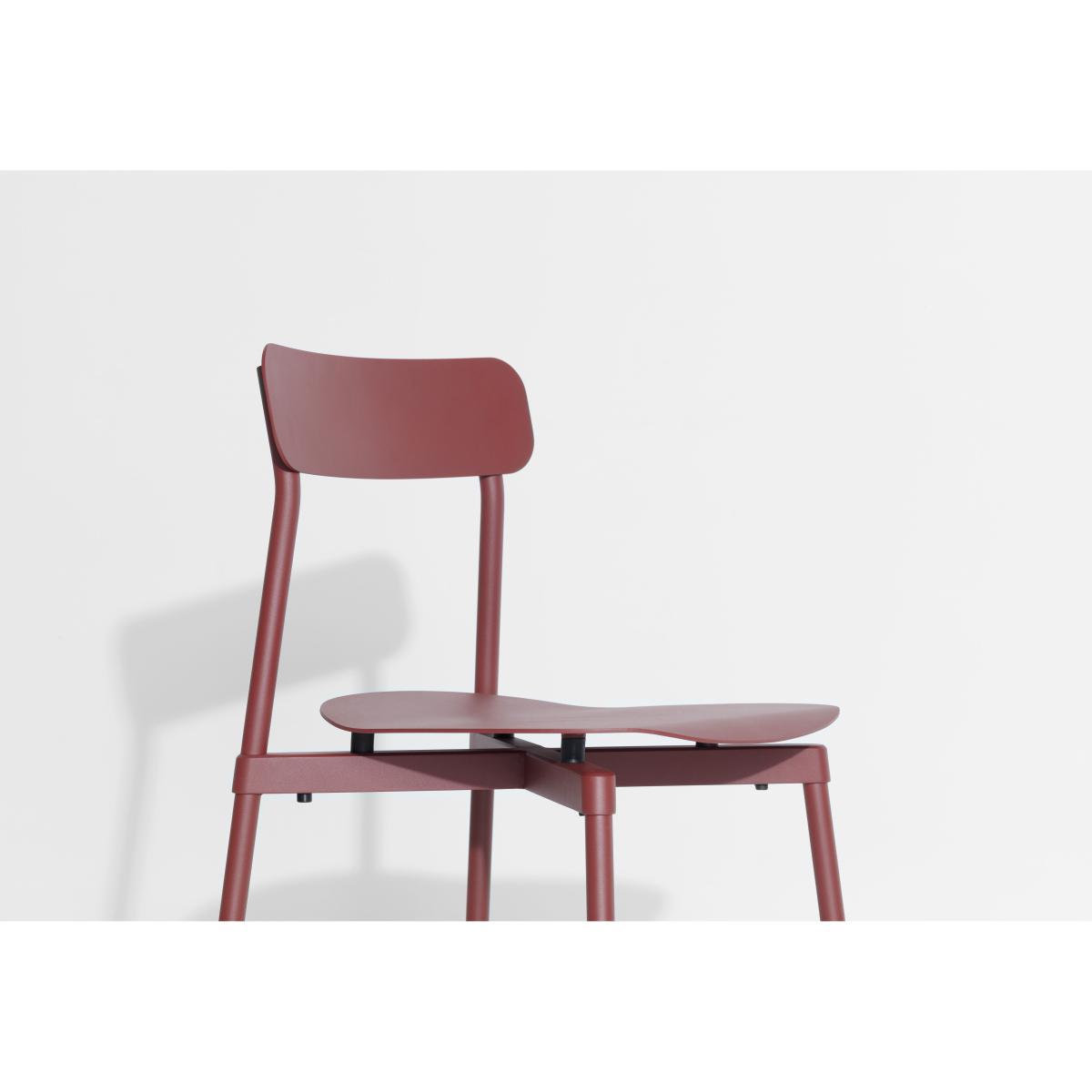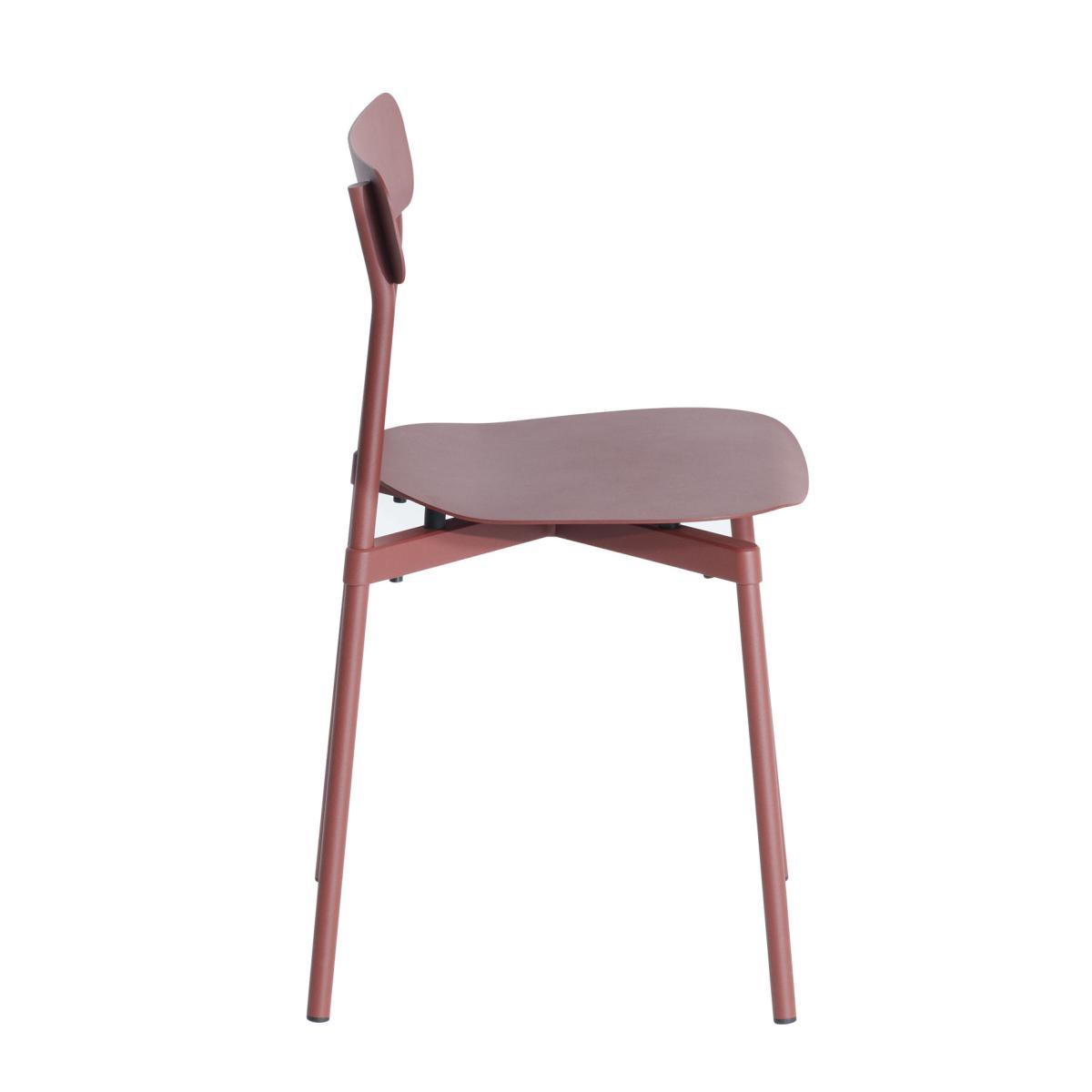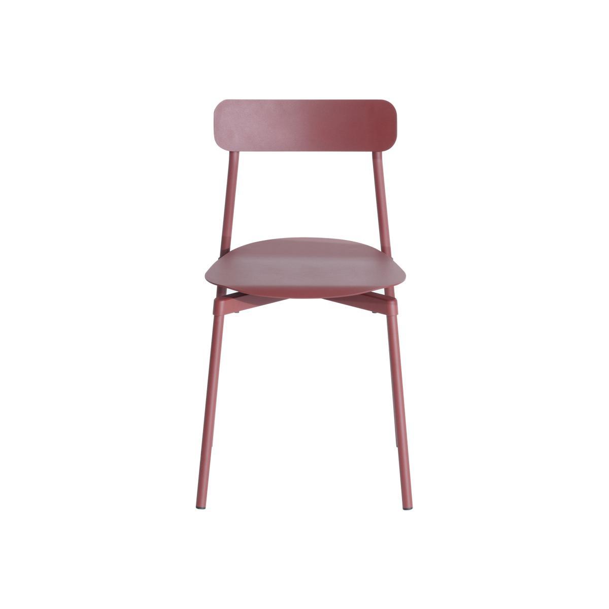 Competition chair. Pure lines and incredible lightness for this aluminium chair with its extremely successful design. A real featherweight (just 4 kilos), this chair is rock solid thanks in particular to a specific and very technical assembly of the different parts. Highly ergonomic, the Fromme chair stands out with the absorbers placed under the seat which, like shock absorbers on a car, provide flexibility and suppleness for optimal comfort. The slightly curved shape of the seat and inclined plane on its front further increase comfort. A confirmed cyclist, Canadian designer Yom Chung used to climb Fromme Mountain outside Vancouver and was fascinated by the technical performance of his bike. He sought to rediscover the efficiency it brought him to reinvent the most common object and yet the greatest challenge for a designer: a chair. This new addition to the line of avant-garde products from Petite Friture proves once again that the brand gives young designers a chance and trusts them to create key pieces for its collections. Each colour gives a new conception of the sleek design of this incredibly light and efficient chair. Made of aluminium, it can be used both indoors and out and is easily stackable.