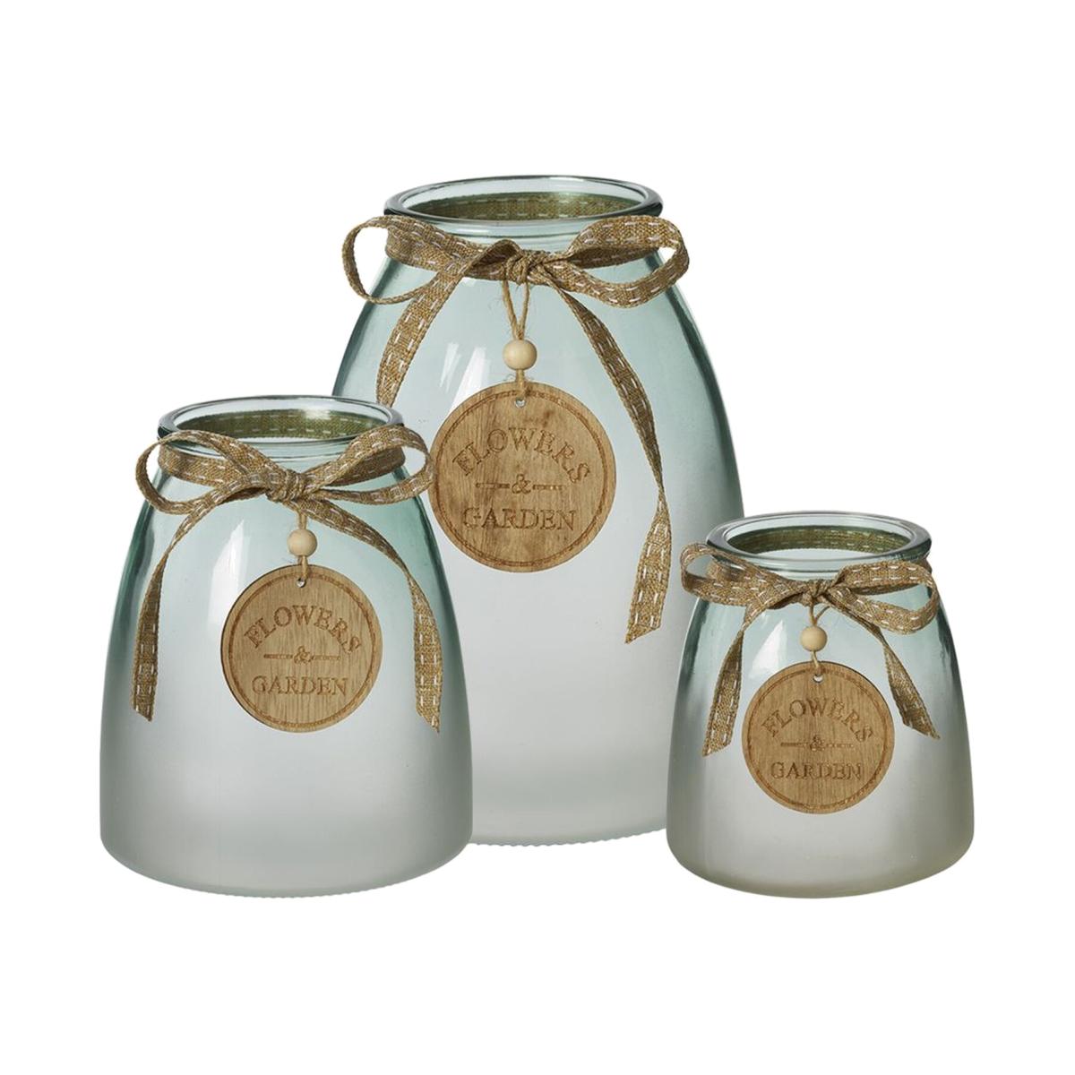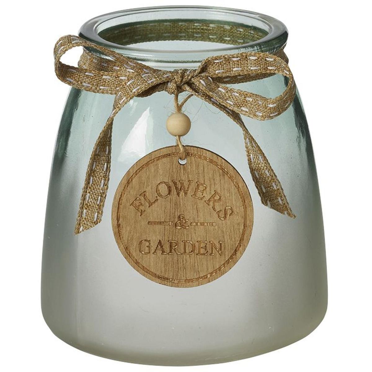 This Frosty Glass Jar Vase is all you need to add a touch of beauty to your home. With ribbon detail and a rustic wooden flowers and garden plaque gives a lovely effect. Perfect for displaying fresh flowers or dried arrangements. Use as a flower vase for a show-stopping display, or simply as a decorative item.