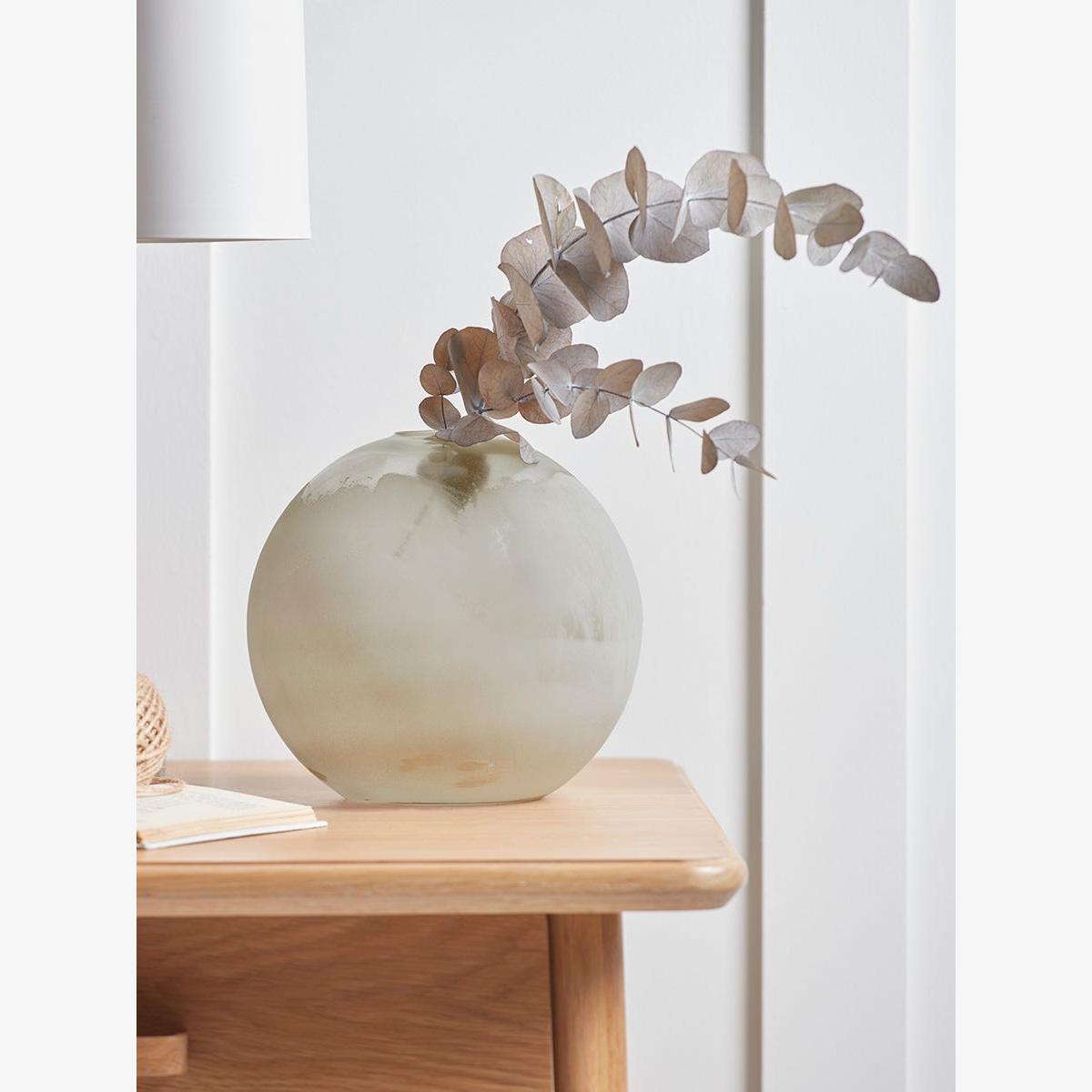 I love this round frosted globe, as it offers a subtle yet sophisticated statement piece that works well in various interior styles. Its soft, matte finish lends itself beautifully to minimalist, Scandi, or even contemporary settings, adding texture without overwhelming the space. For styling, try filling it with fresh or dried botanicals-such as eucalyptus or pampas grass-to enhance its organic feel. It’s particularly effective placed on sideboards, mantelpieces, or bedside tables where its simple shape can be appreciated. To keep the look fresh, pair it with neutral tones or metallic accents for an elegant touch.