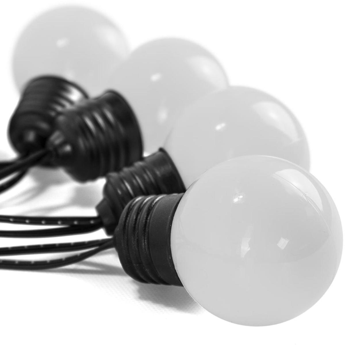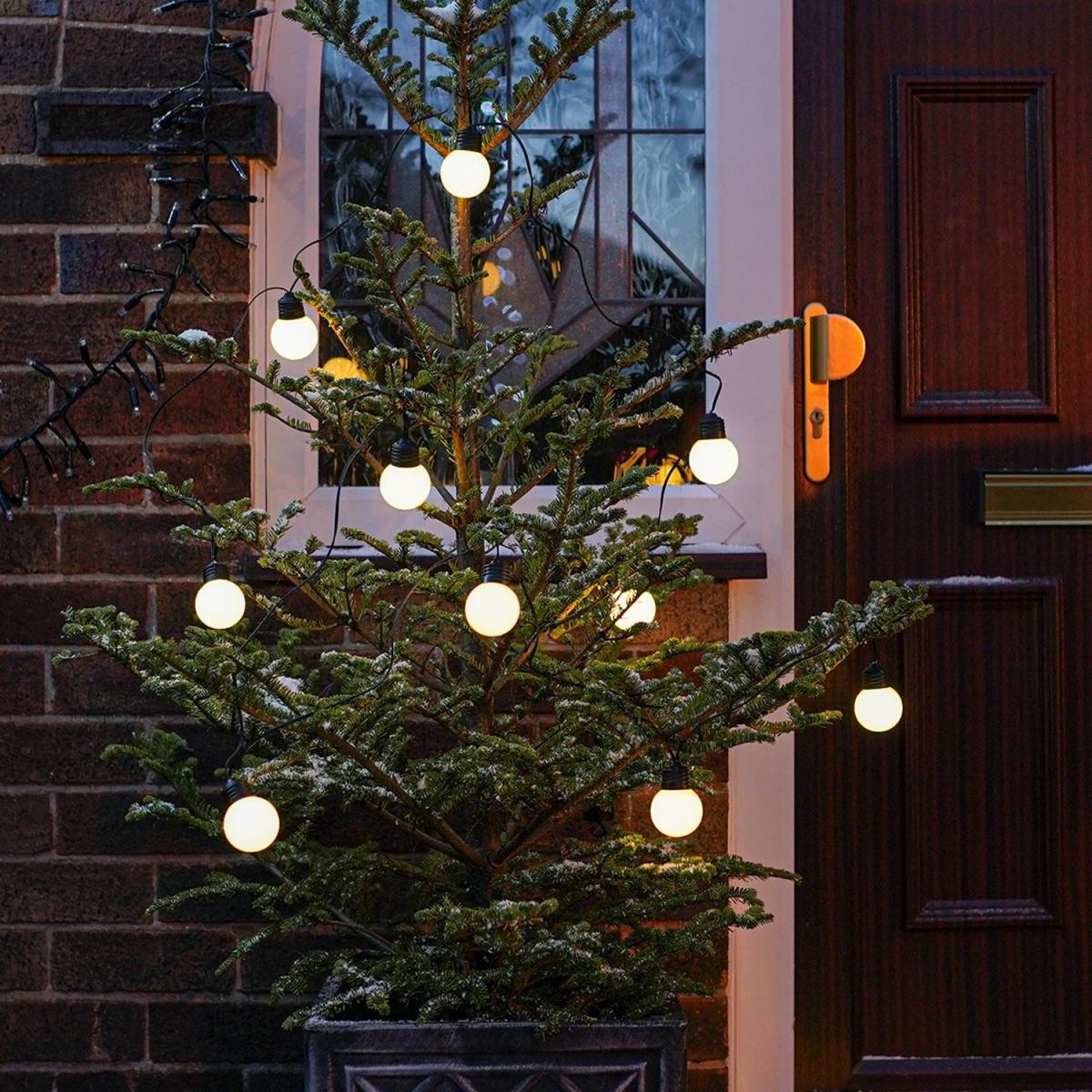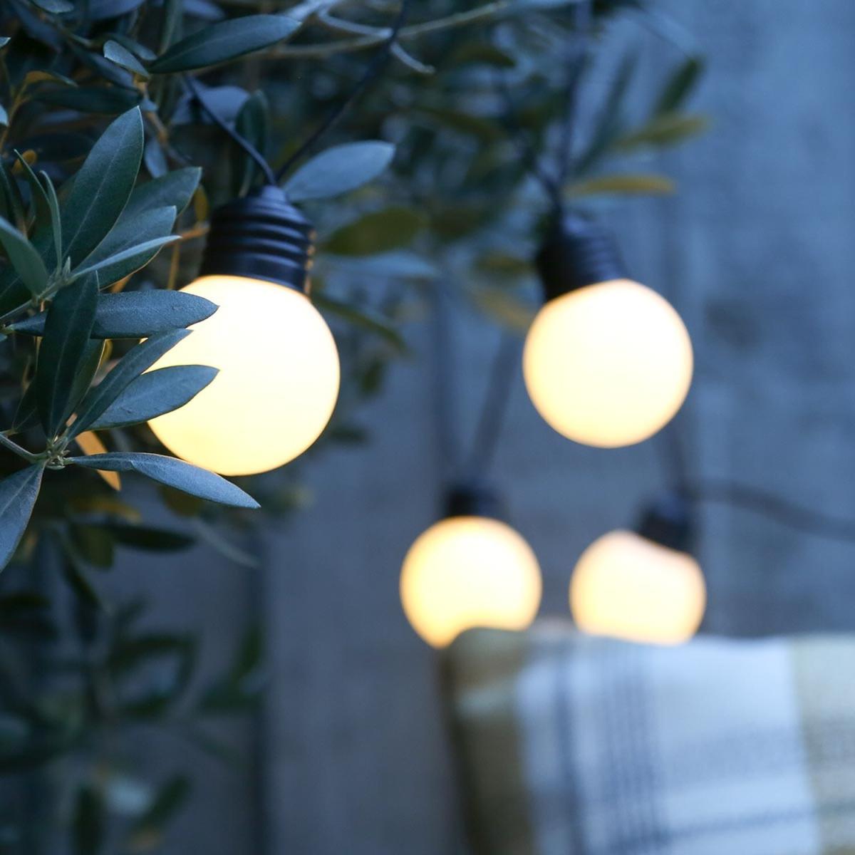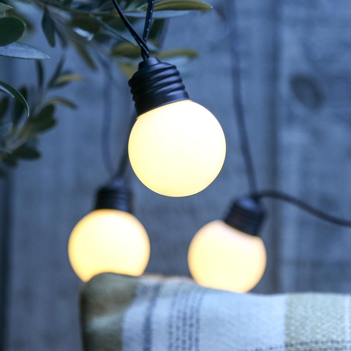 These indoor and outdoor battery festoon lights feature a new and improved design, with a higher quality construction and brighter LEDs. They're perfect for adding soft, ambient, decorative lighting to your home, garden or event and, thanks to being battery-powered, they're great in places that are hard to reach with mains power. These lights are so easy to install since the battery box comes complete with a pre-mounted hook. There's also a handy timer function which allows you to leave the lights switched on: they'll stay lit for six hours, before turning off for eighteen hours and then turning back on at the same time as the previous day, it's that easy! This is brilliant for two reasons, firstly it saves you having to remember to switch your beautiful lights on/off every night and, and secondly, it conserves the battery life. If you want your lights to stay on for longer, simply set the switch to the On position and turn off when required. This set has 10 waterproof, golf ball sized frosted bulb caps, placed 50cm apart on a black cable. Each globe measures 5cm in diameter, contains a single warm white LED bulb. The 10 bulbs are fitted along a set 4.5m length and are not connectable. Please note: to switch the lights on, press the 'ON' button for 3 seconds. Press the 'ON' button again to engage the timer function - the LEDs will flash on and off 5 times to let you know the timer function has been activated. Requires 3 x AA batteries (not included).