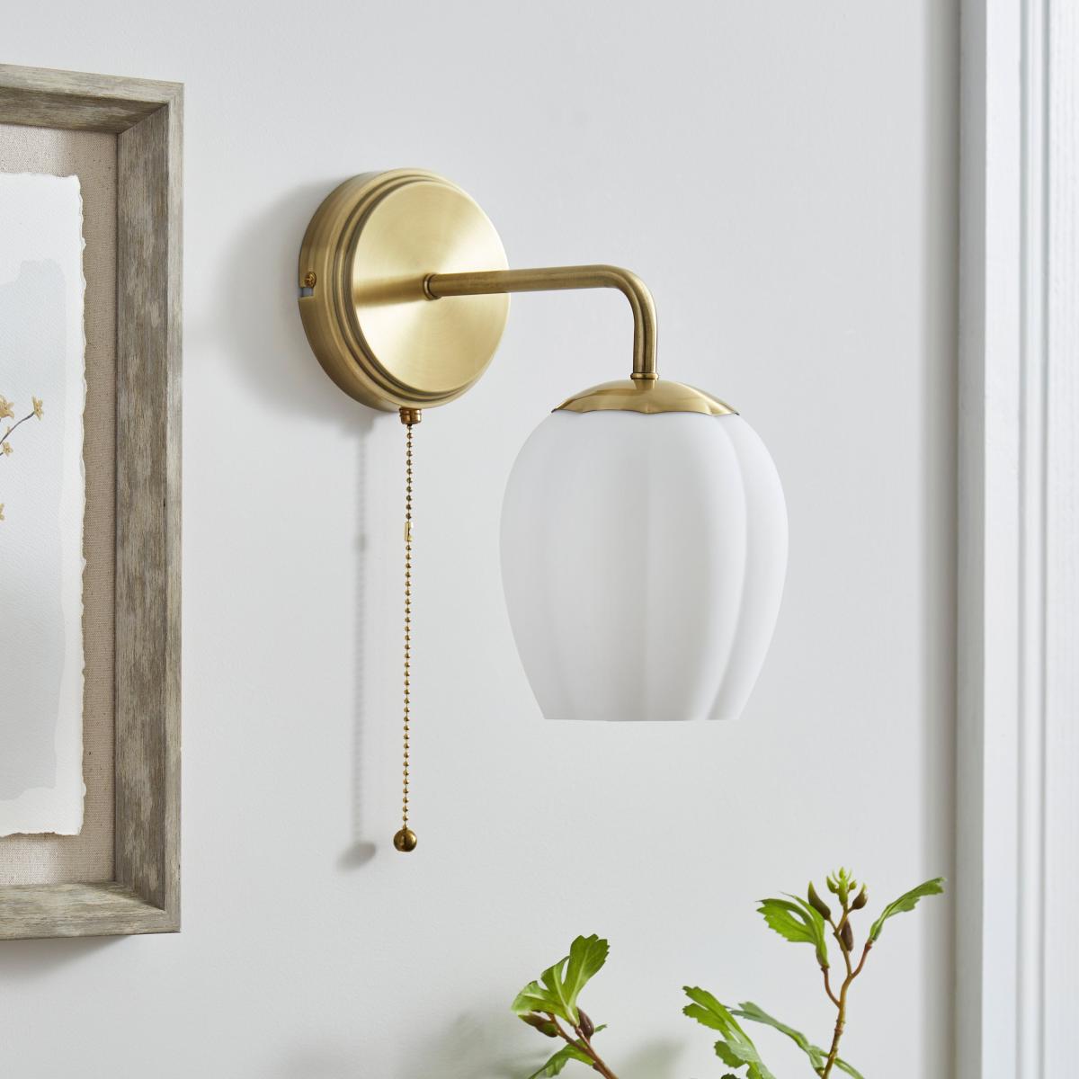 I love this wall light for its subtle sophistication and versatility in both modern and classic interiors. The gold finish adds a touch of elegance, while the frosted tulip shape keeps it soft and understated. It works beautifully above a bedside table or in a hallway to create warm, ambient lighting. To style it effectively, consider pairing it with other gold accents or matte finishes to create a cohesive look. Keep the surrounding decor simple to let the light fixture stand out, or enhance a vintage-inspired space with existing brass or antique elements. Practical tips include installing it at eye level for bedside use or slightly higher in living rooms to highlight artwork or architectural features.