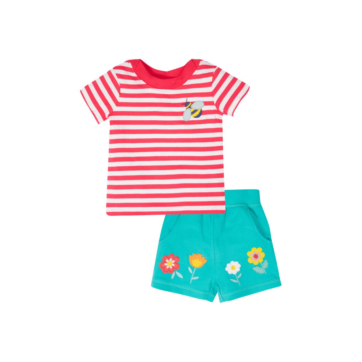 Frugi Baby Stripe Flowers Pure Organic Cotton Easy On Set, Watermelon Stripe