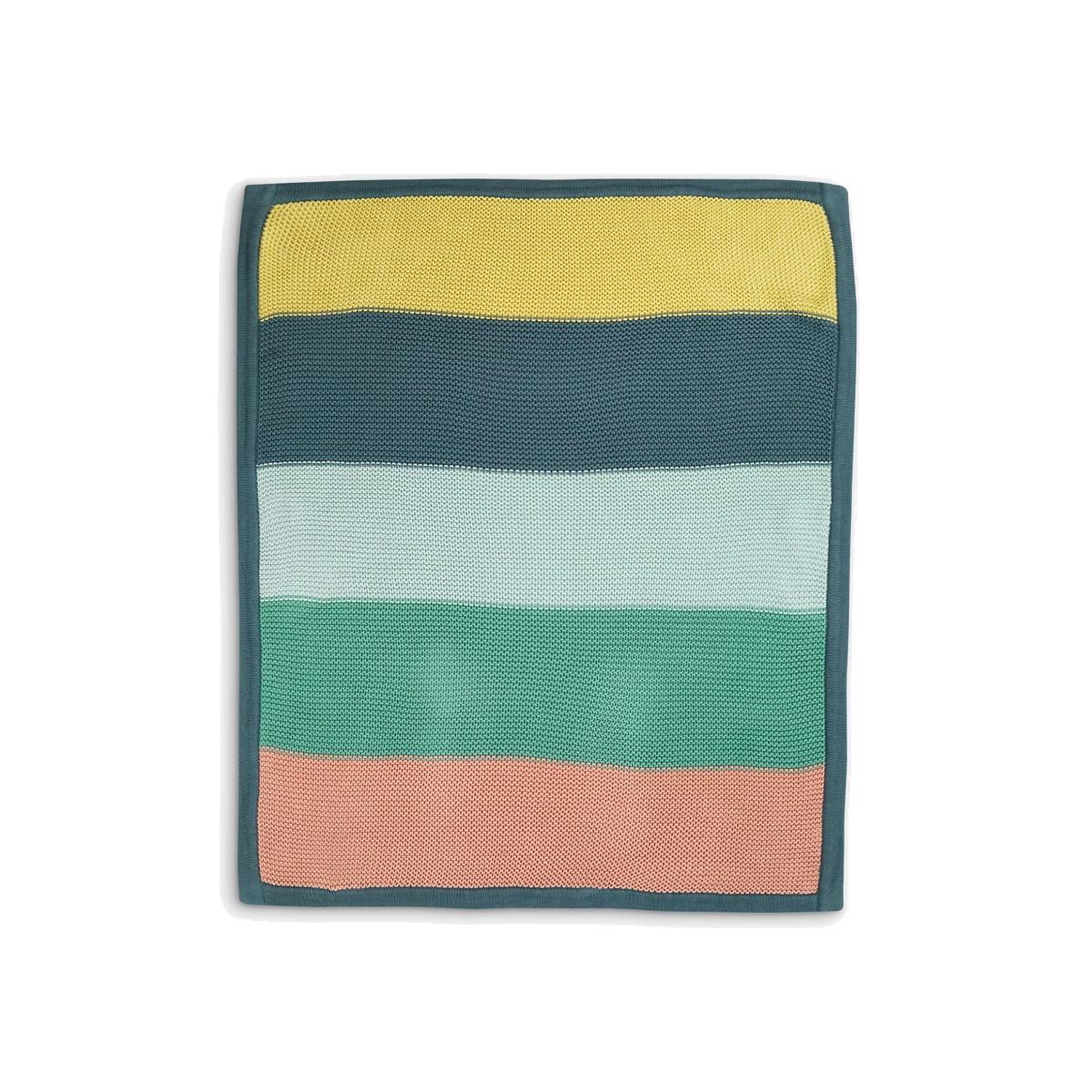 Frugi Organic Cotton Snuggle Up Baby Blanket, Blue Rainbow Stripe