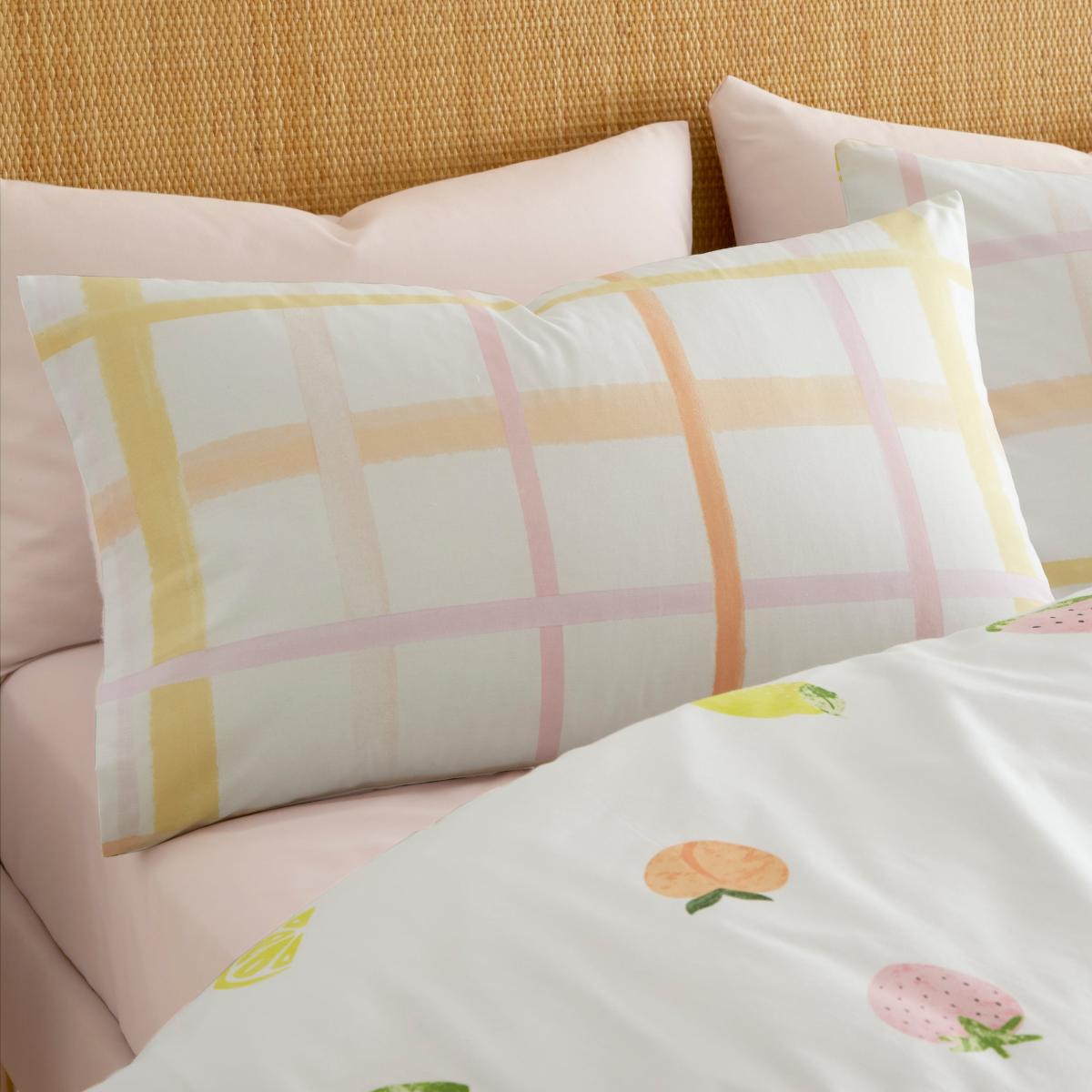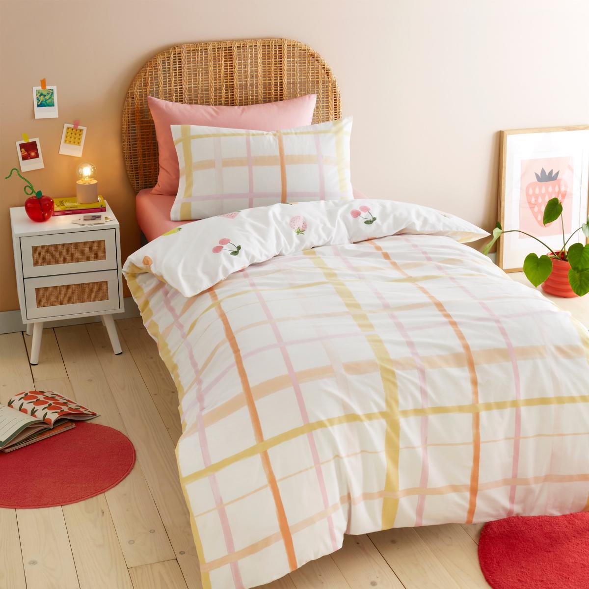 Add a pop of colour to your bedroom with this colourful fruits print duvet cover and pillowcase set which has been made from a soft and cosy blend of recycled polycotton. Crafted in a reversible style with a colourful fruit print on one side and a colourful gingham print on the reverse, so you can switch the bedding up whenever you desire. It comes complete with matching pillowcase(s) and is finished with a secure button closure for an uninterrupted night sleep. Machine washable for convenient cleaning. MADE IN GREEN by OEKO-TEX® is a unique product label to trace the countries and production facilities - search the product label for more information.
