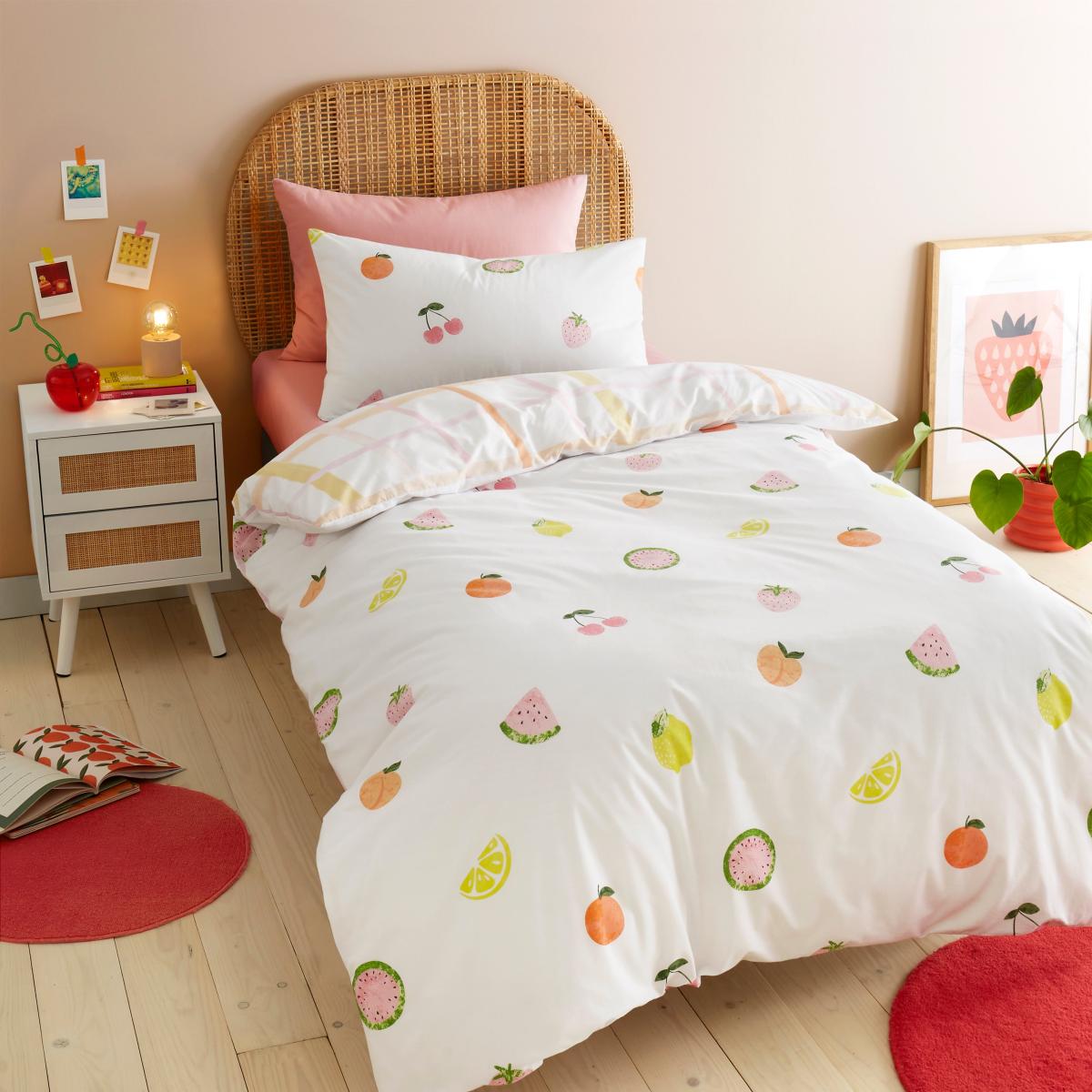 Fruit Print Duvet Cover and Pillowcase Set MultiColoured