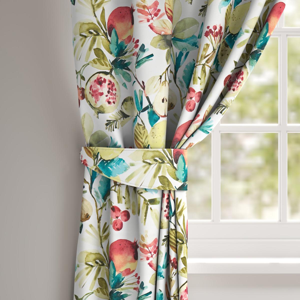 Boasting a colourful floral design, the Fruta Tieback are perfect for welcoming a personal touch into a room. Available with a plain or piped edge, this tieback can be paired with our matching Made to Measure curtains to to give your home a coordinated finish. Please note:. Our Made to Measure Tieback is sold as a single, for a pair you will need to add 2 to your basket. Need some support with your creating Made to Measure tieback? Feel free to book an appointment with one of our experts. Just.