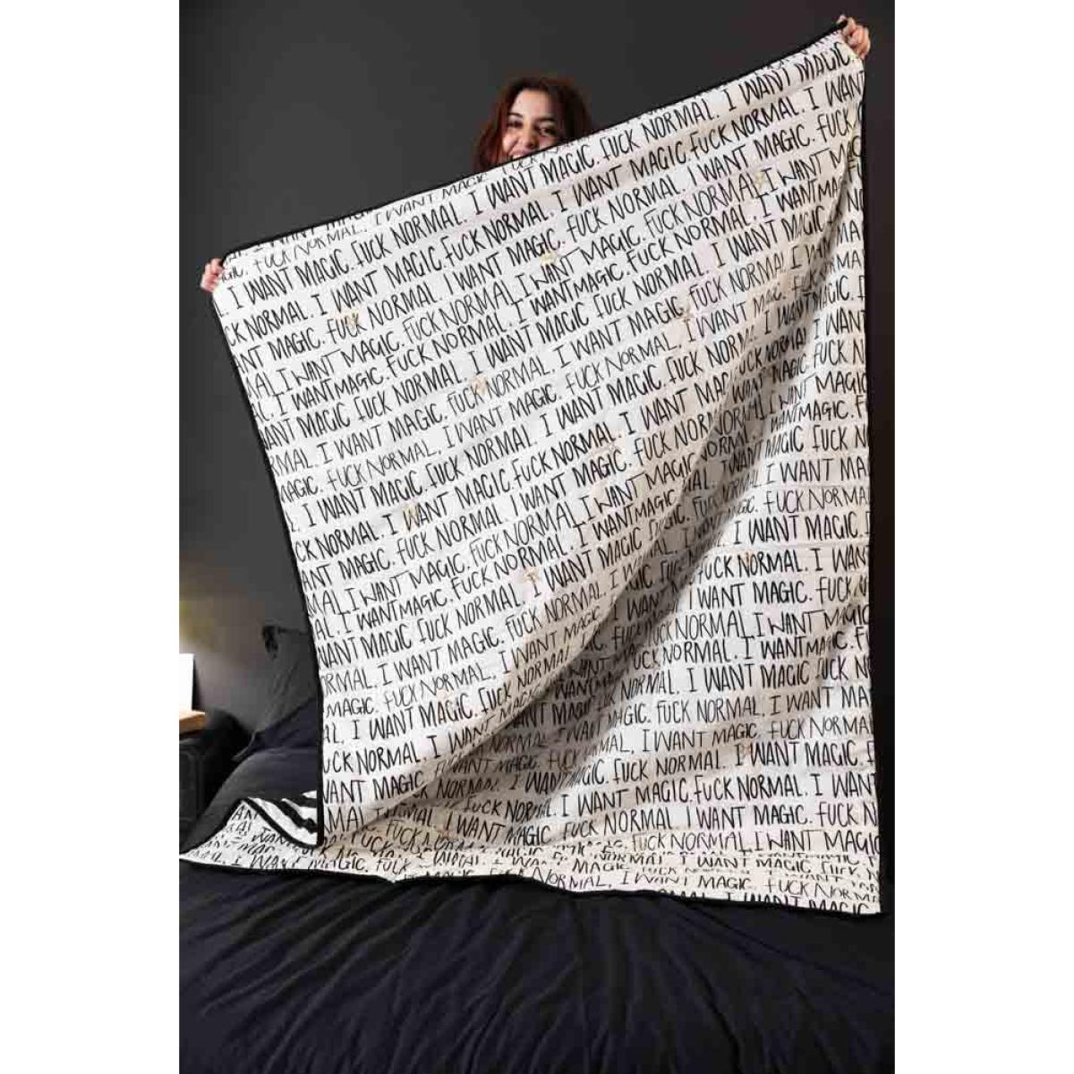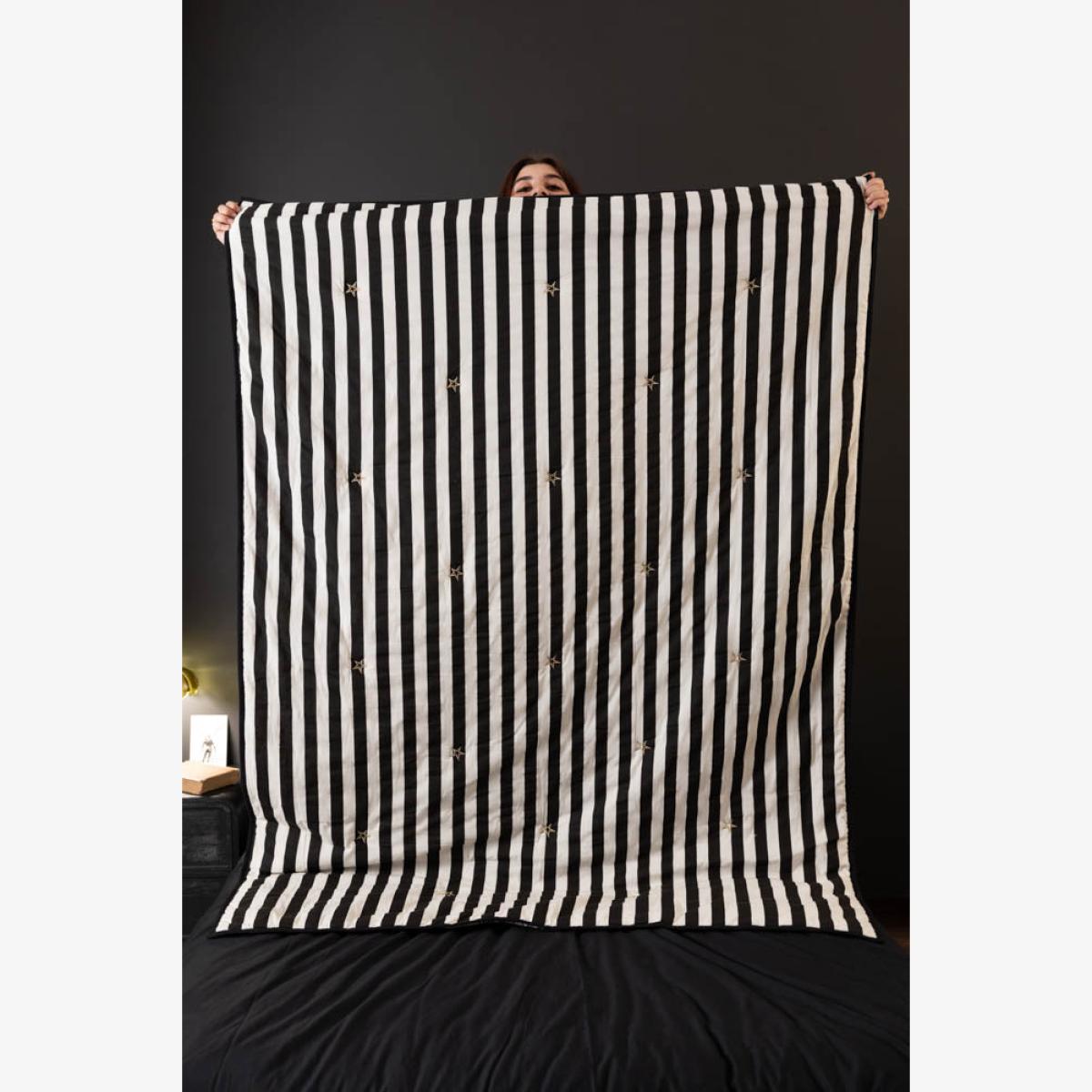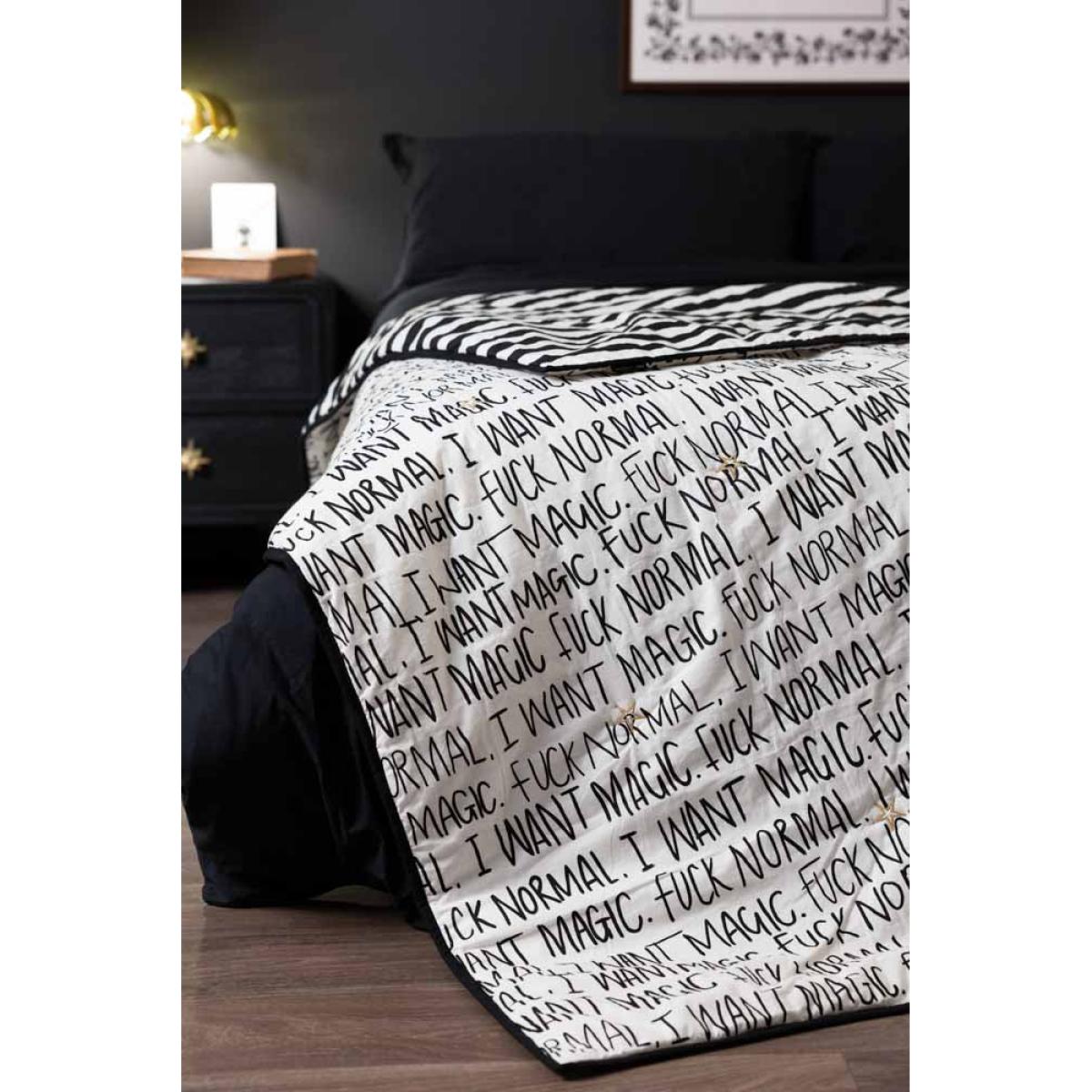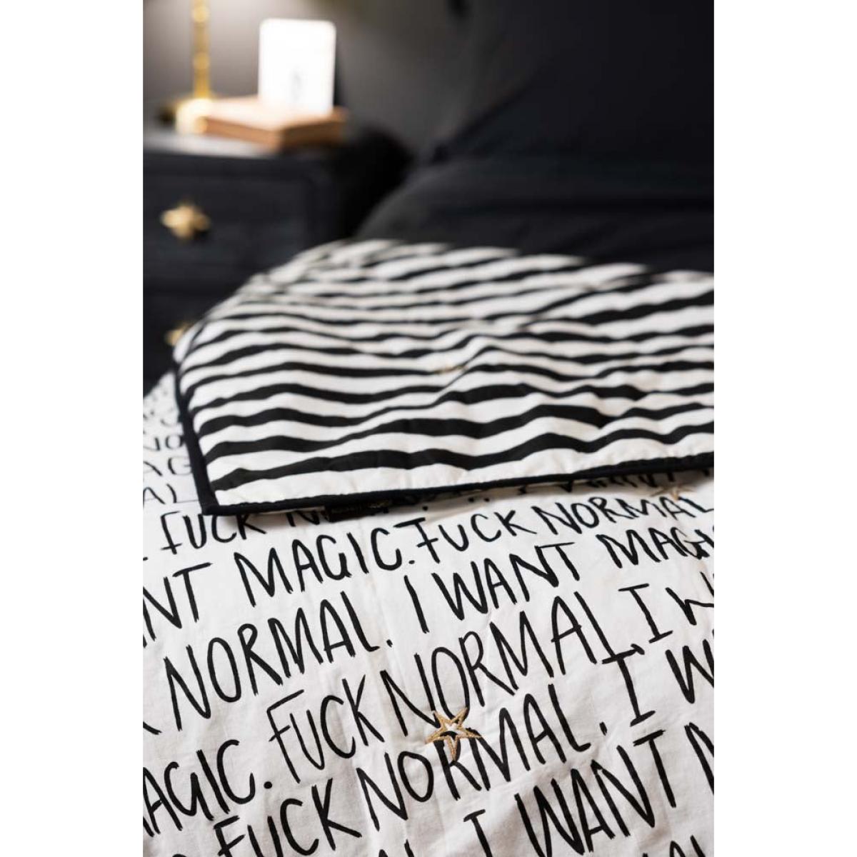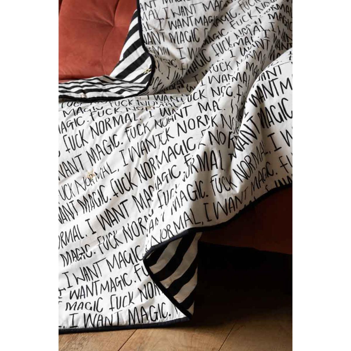 Ready to level up your cosy game, quilts and blankets? Meet the Fuck Normal, I Want Magic Print Reversible Quilt – the cotton throw that brings equal parts comfort, charm, and cheeky attitude to your home. This bedspread is for the dreamers, the rule-breakers, and those who seek more than ordinary. On one side, you’ve got crisp white fabric covered in the bold, unapologetic manta “fuck normal, I want magic” in playful black lettering. It’s sassy, it’s empowering, and it’s basically your personality in the form of a quilt for the bed. Flip it over and boom – instant mood change. The reverse unveils chic black-and-white stripes sprinkled with embroidered golden stars that look like they’ve been stolen from a midnight sky. It’s whimsical, stylish and effortlessly magical. - Fuck Normal, I Want Magic Print Reversible Quilt - Measures: W130cm x H180cm - Material: Cotton - Machine Washable