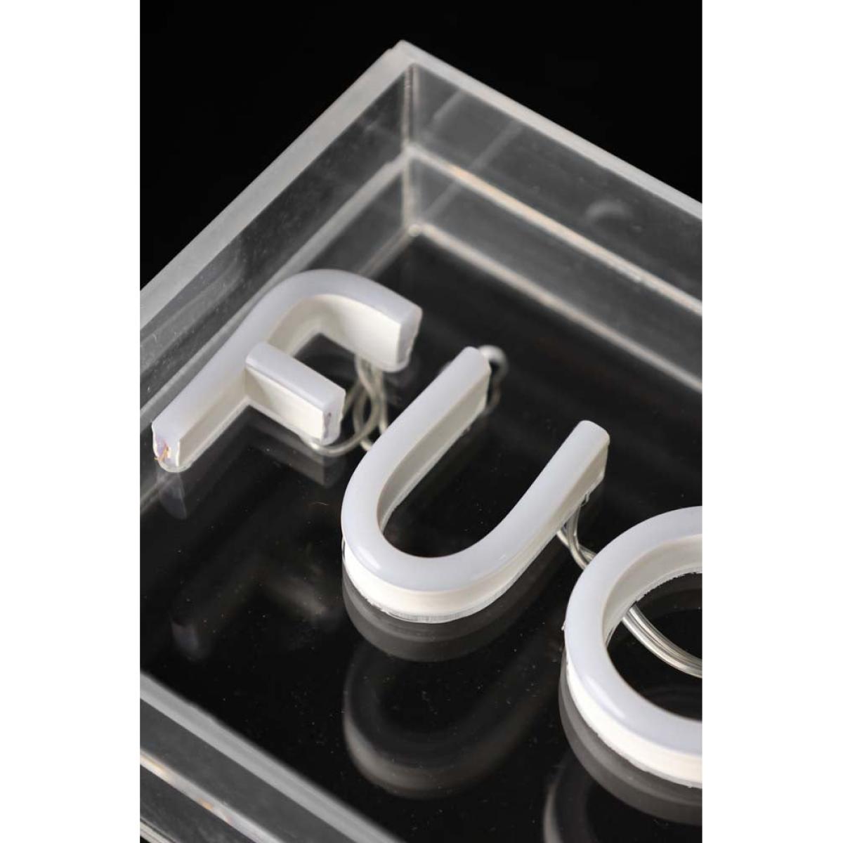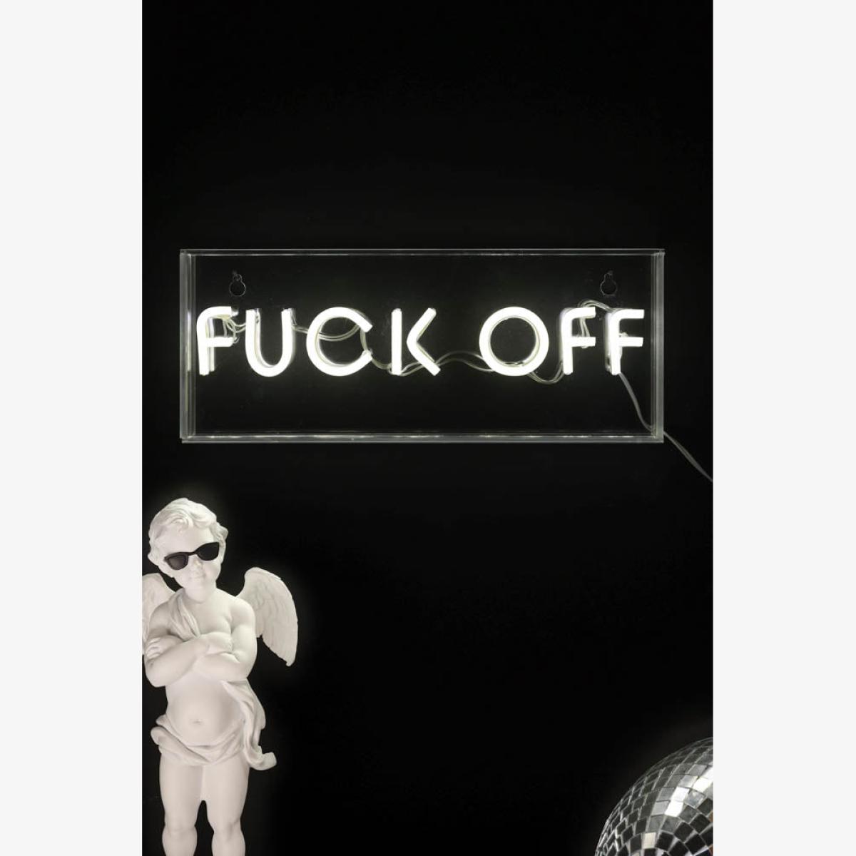 About The Fuck Off LED Neon Acrylic Light Box Embrace the power of playful profanity with the Fuck Off LED Neon Acrylic Light Box. Designed from acrylic, the bold rectangular light box reveals the words ‘Fuck Off’ in white LED neon light when switched on. Measuring H12cm x W30cm, this neon wall light is the perfect size for any room in the house. Please note that a 1.75m USB cable is included with this design but a USB-compatible plug will need to be sourced separately. Why We Think You’ll Love The Fuck Off White Neon Light Neon lights have become a design must-have over the last few years, but it can be tricky to find fabulous, affordable options that won’t break the bank. With this firmly in mind, our neon wall sign collection includes budget-friendly neon options that don’t compromise on style. Celebrating our love of swear words, the Fuck Off Neon Light Box brings sassy, sweary style to the walls of your home. Never intended to offend, we find that the word fuck evokes a sense of catharsis and makes us smile, so hopefully, this neon light will have that same effect on you! How To Style The Fuck Off Neon Sign The Fuck Off LED Neon Acrylic Light Box can be styled on a shelf or attached to the walls of your kitchen, bedroom, hallway or living space. However, maybe steer clear of the family rooms...