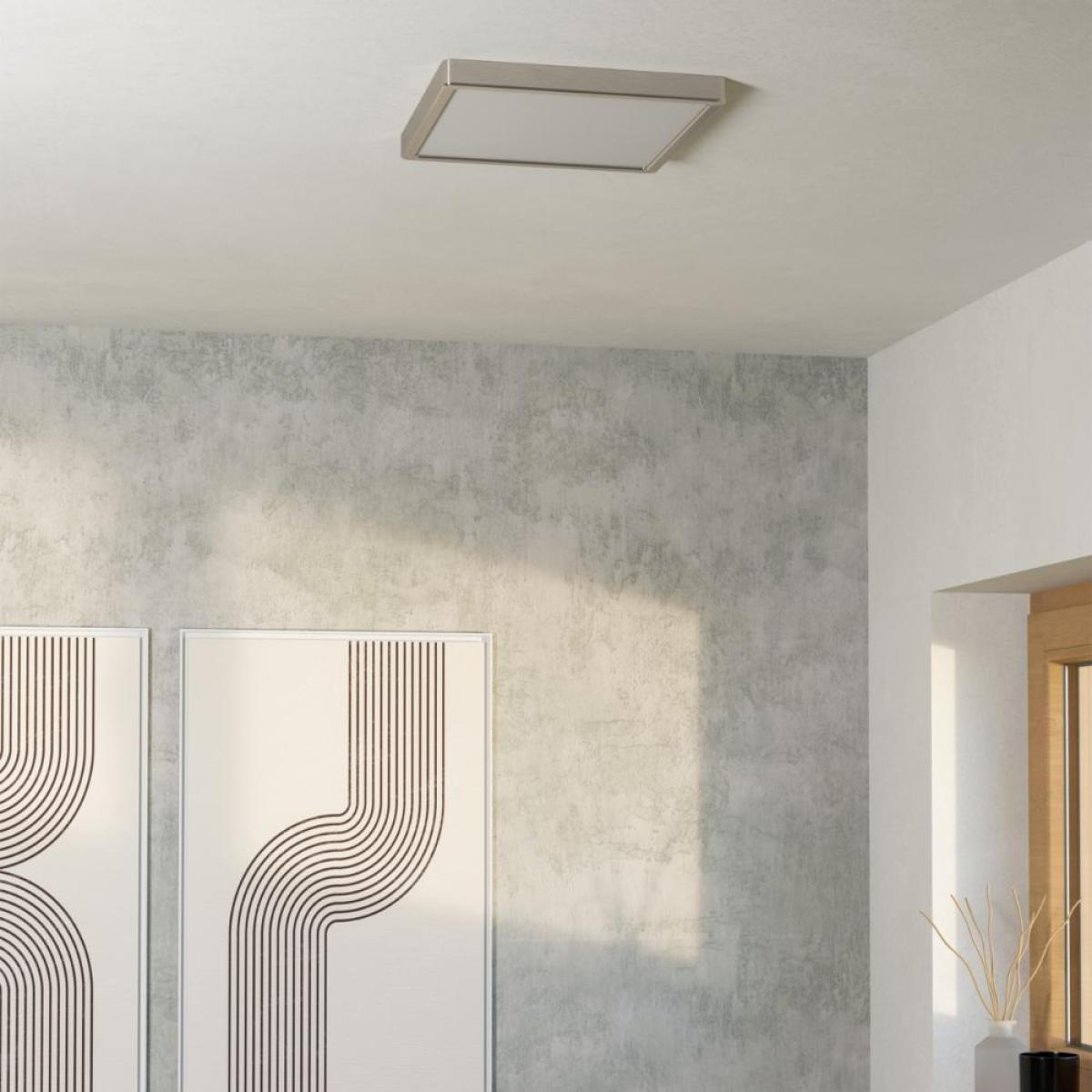 The round combines an elegant nickel finish with modern lighting technology. The white, satin diffuser ensures even and pleasant illumination, while the brushed nickel housing adds a timeless touch. The CCT function allows for adjustable colour temperature – from warm white for cosy moments to cool white light for focused work. With a diameter of 290 mm, this flat surface-mounted light is perfect for hallways, kitchens, or living rooms, blending harmoniously into both modern and classic interiors. The integrated LEDs are energy-efficient, long-lasting, and virtually maintenance-free.