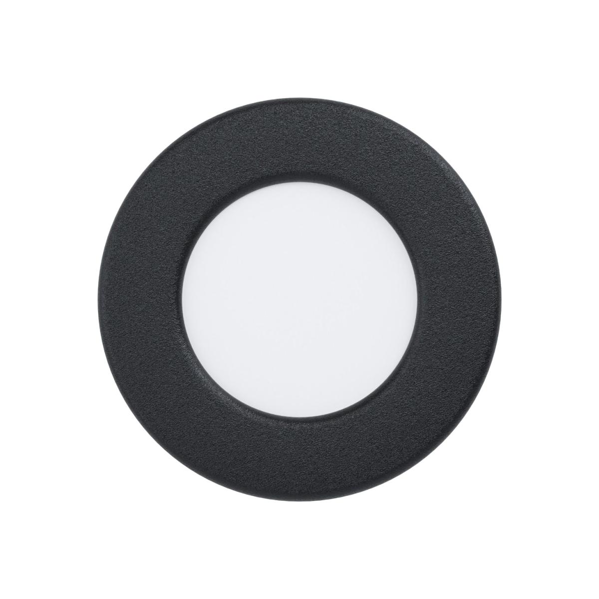Modern recessed ceiling light Diameter: 8.6cm Installation Depth: 2.6cm Cutout: 7.5cm Max Wattage: 2.7w Colour Temp: 3000k (Warm White) IP44 Rated Integrated LED A stylish addition to your home, this recessed light is part of the Fueva range from Eglo. Boasting a black metal frame and IP44 rating, this fitting is ideal for use in bathrooms and outside.