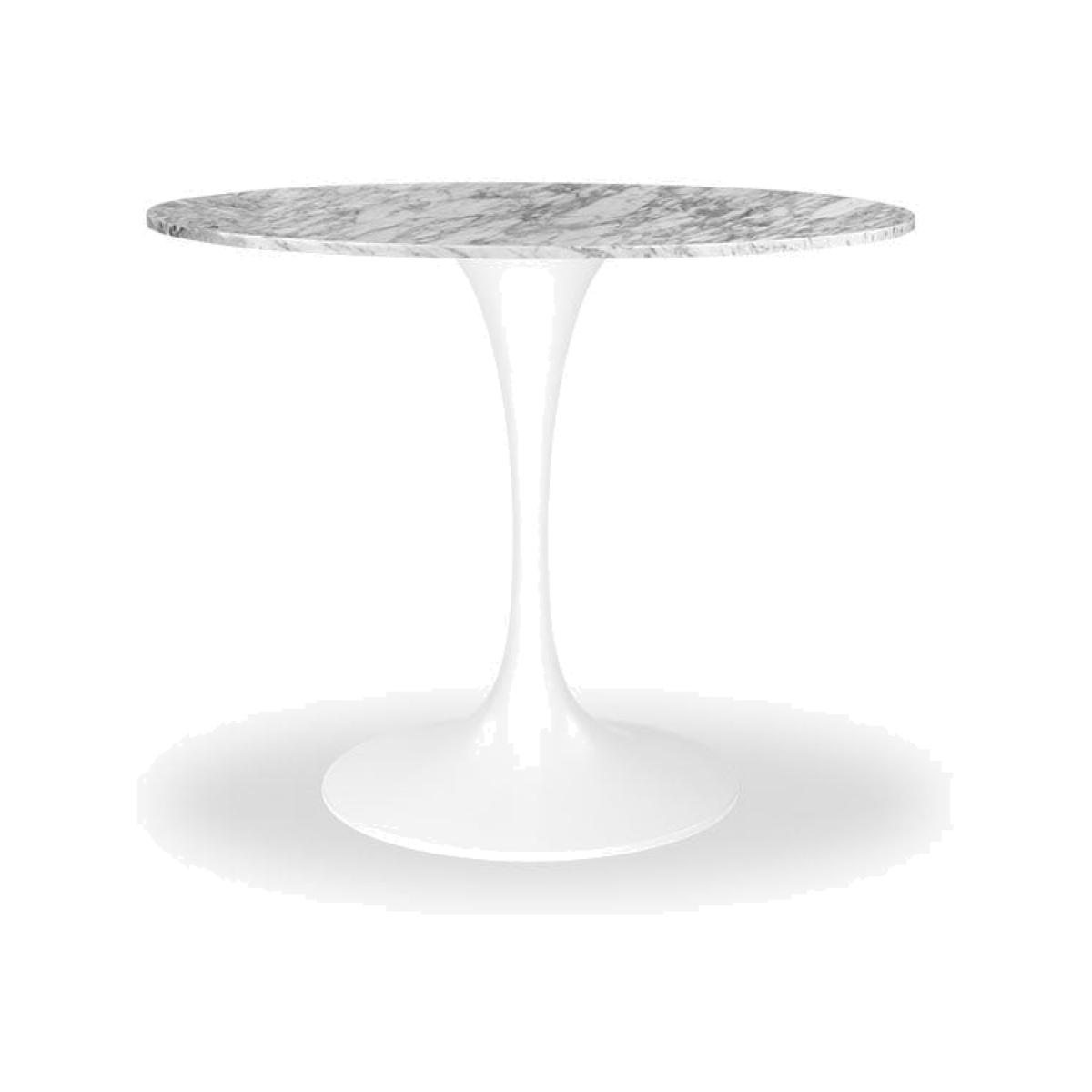 Reinvent your dining space the Fulham cafe table. Accommodating 2 to 4 people, the Fulham mixes the natural qualities of a round white marble tabletop with a curved white stand, attached to a round flat metal base. Available in two tabletop sizes and a variety of tops and metal finishes to choose from, our Fulham round cafe table makes a chic addition to any kitchen or cafe. And if you buying for business? You can head to our Trade Team for more details. Please note: The table requires assembly, which includes drilling holes into the tabletop. Doing so is a simple process we have detailed below: The tabletop has a wooden underside that can be lined up with the base. Drill small guide holes into the wood and then drill in the inserts. Attach the tabletop to the base with the 10mm bolts we have provided. View The Fulham Range