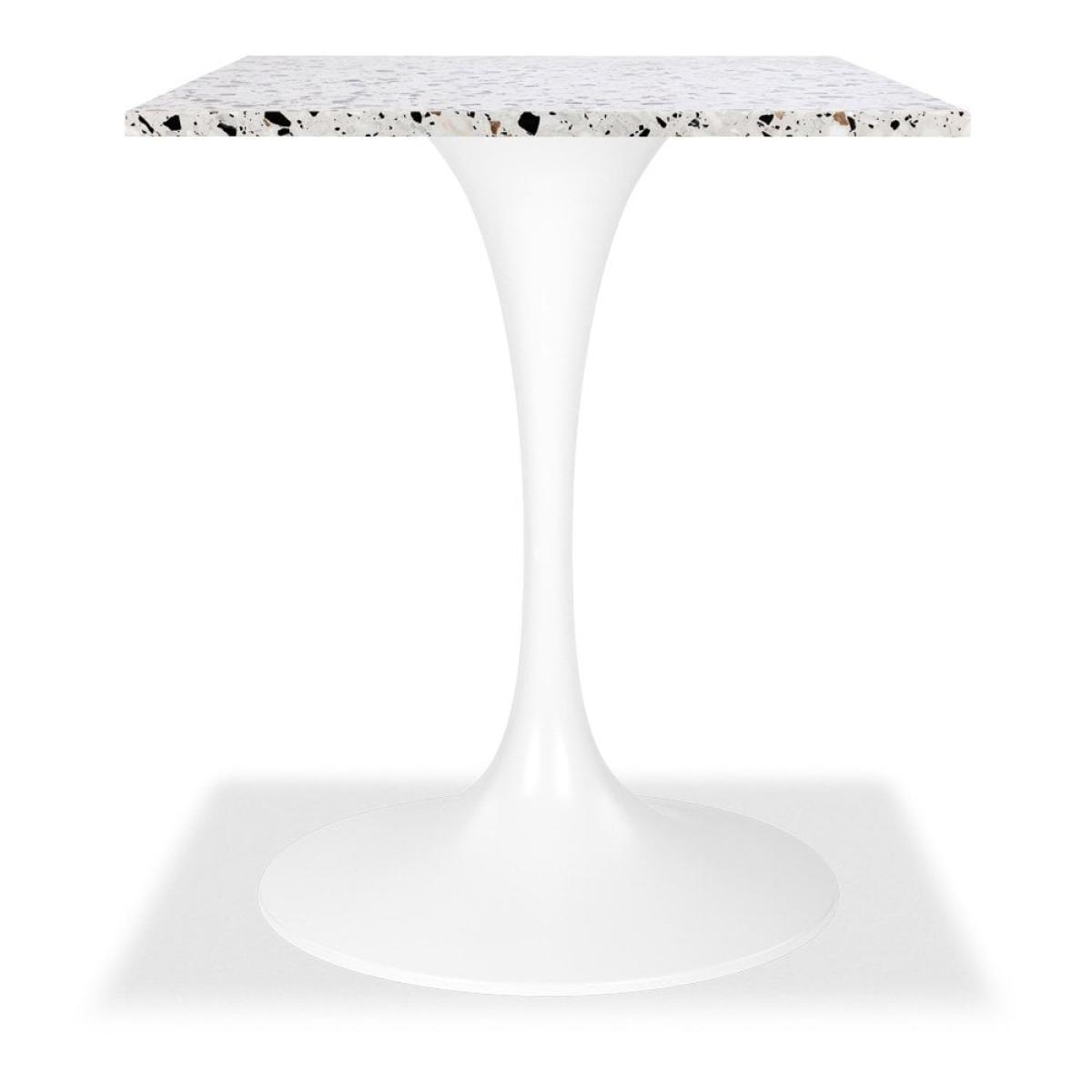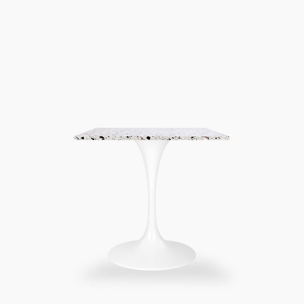 Reinvent your dining space and add a retro touch with the Mid-Century inspired Fulham short cafe table. Accommodating 2 to 4 people, the Fulham mixes the natural qualities of a square terrazzo tabletop with a curved white stand, attached to a round flat metal base. Available in two tabletop sizes and a tall stand option - with a variety of tops and metal finishes to choose from - our Fulham square cafe table makes a chic addition to any kitchen or cafe while creating the ultimate dining experience when teamed with dining chairs and pendant lights of your choice. And if you buying for business? You can head to our Trade Team for more details. Please note: The table requires assembly, which includes drilling holes into the tabletop. Doing so is a simple process we have detailed below: The tabletop has a wooden underside that can be lined up with the base. Drill small guide holes into the wood and then drill in the inserts. Attach the tabletop to the base with the 10mm bolts we have provided. View The Fulham Range