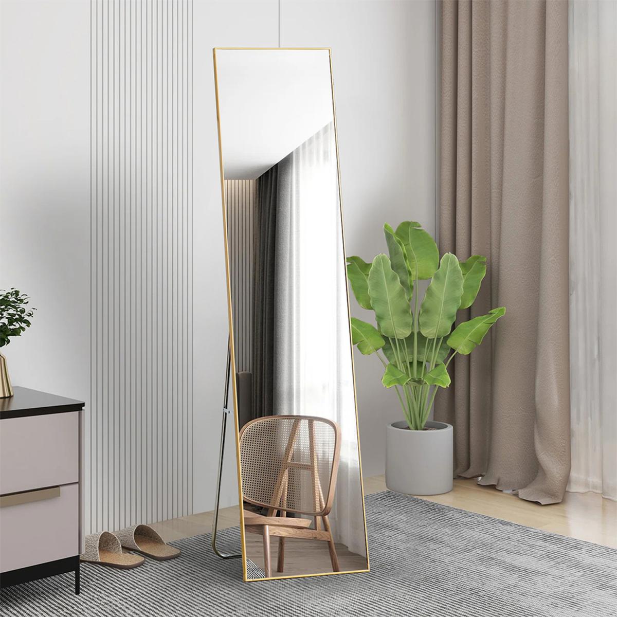 Designed with simplicity and precision, aluminum alloy rectangle frame, our full body mirror is lasting and more durable. This deressing mirror let you can get ready from head to toe, ensure you can get the perfect view of yourself. Highly reflective to catch as much light as possible, giving you the best reflection day and night. The full-length mirror adopts anti-rust treatment, no oxidation and no rust, and more high-definition lifelike. With an explosion-proof film, it can prevent the glass from being scratched by accidental impact, making it safer. The full-length mirror has a stable and non-slip pad bottom, which is not easy to tip over. Comes with hanging clips as well as the wall hardware and metal expansion screws to hang it both horizontally or vertically, hang the mirror easily in minutes. Just place it near a window or in a little corner to add the illusion of space and depth to your smaller spaces. The classic and simple appearance is perfectly integrated into various fashionable living environments, adding a rich Nordic and high-quality taste to your home.