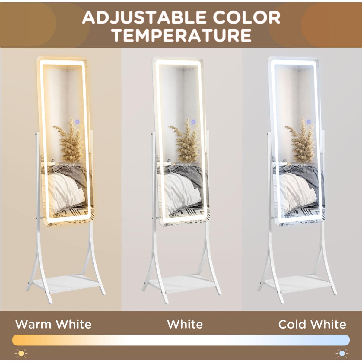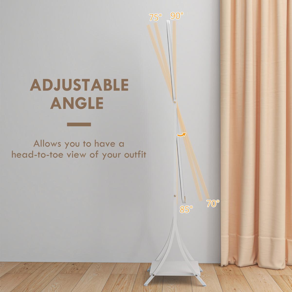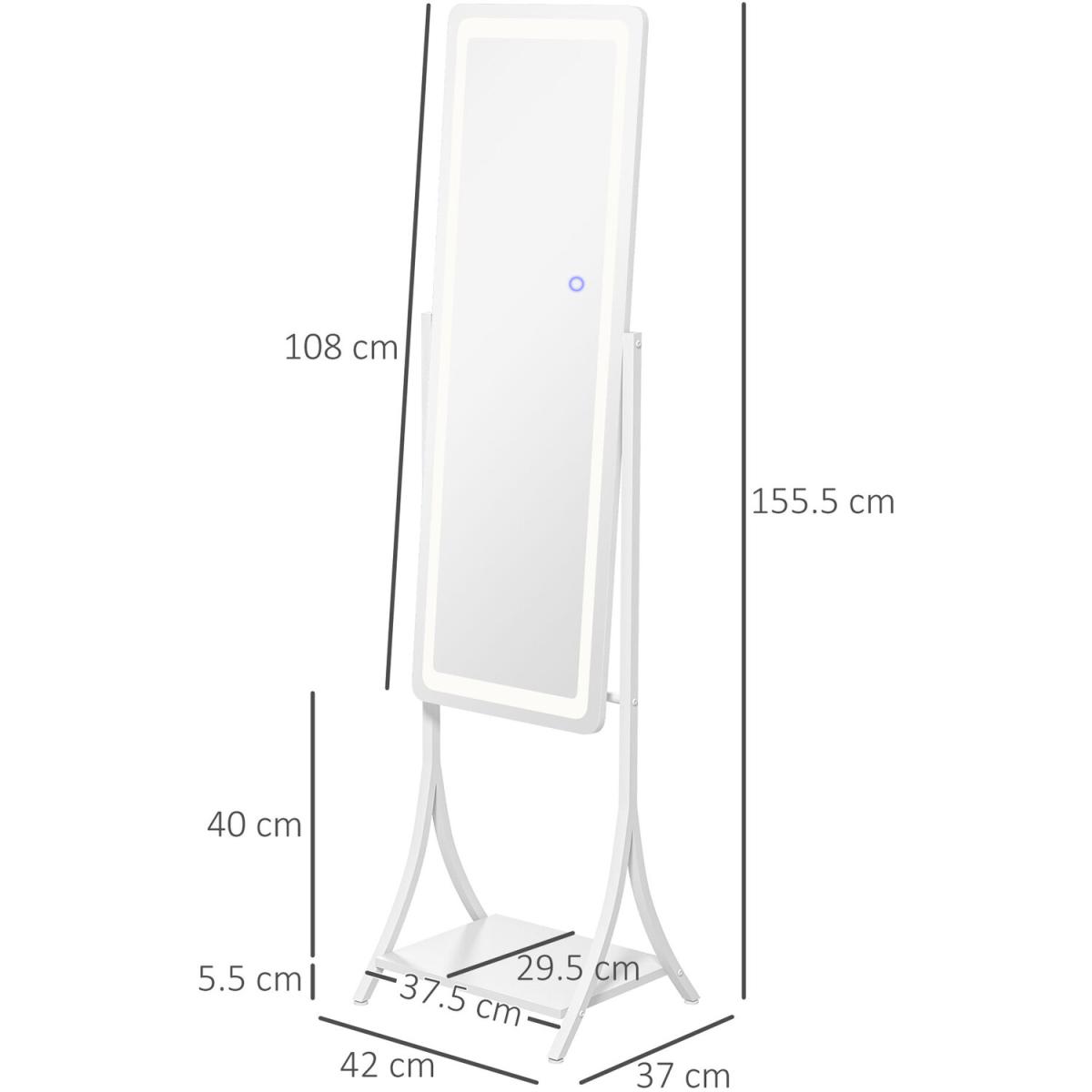 Illumination, day and night, so you can get ready - whenever. This HOMCOM full-length mirror is a classic piece, with a contemporary twist,it comes with an outer LED light to illuminate the mirror whenever you need it. Choose between warm white, white and cool white - with adjustable brightness too. Set the mirror angle to 70 degrees, 75 degrees, 85 degrees or 90 degrees, the full length size is perfect for seeing your whole outfit. Complete with a handy bottom shelf.