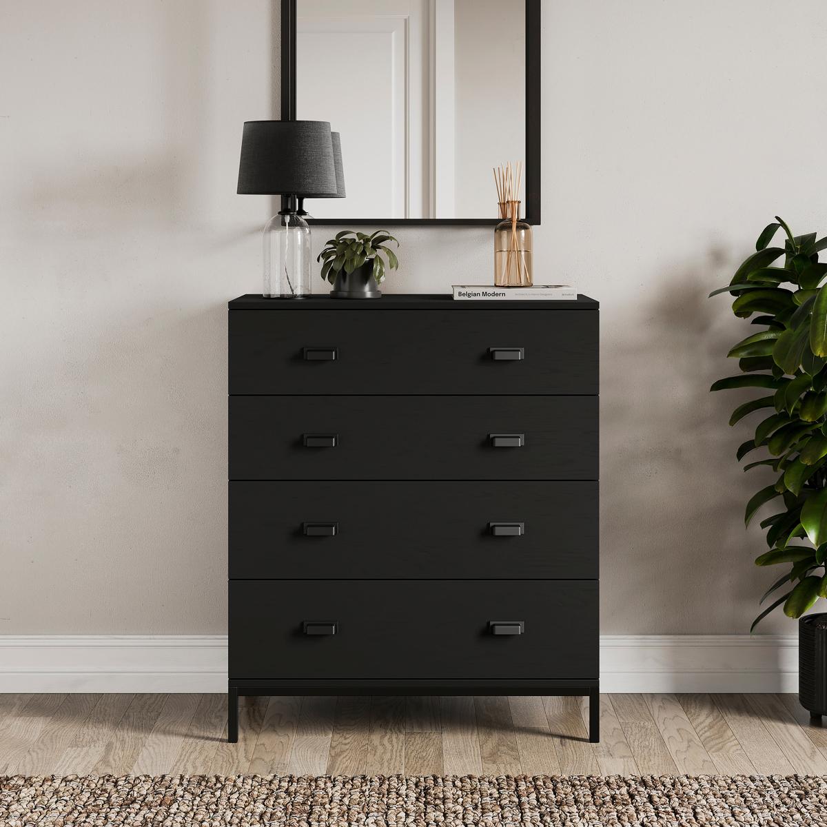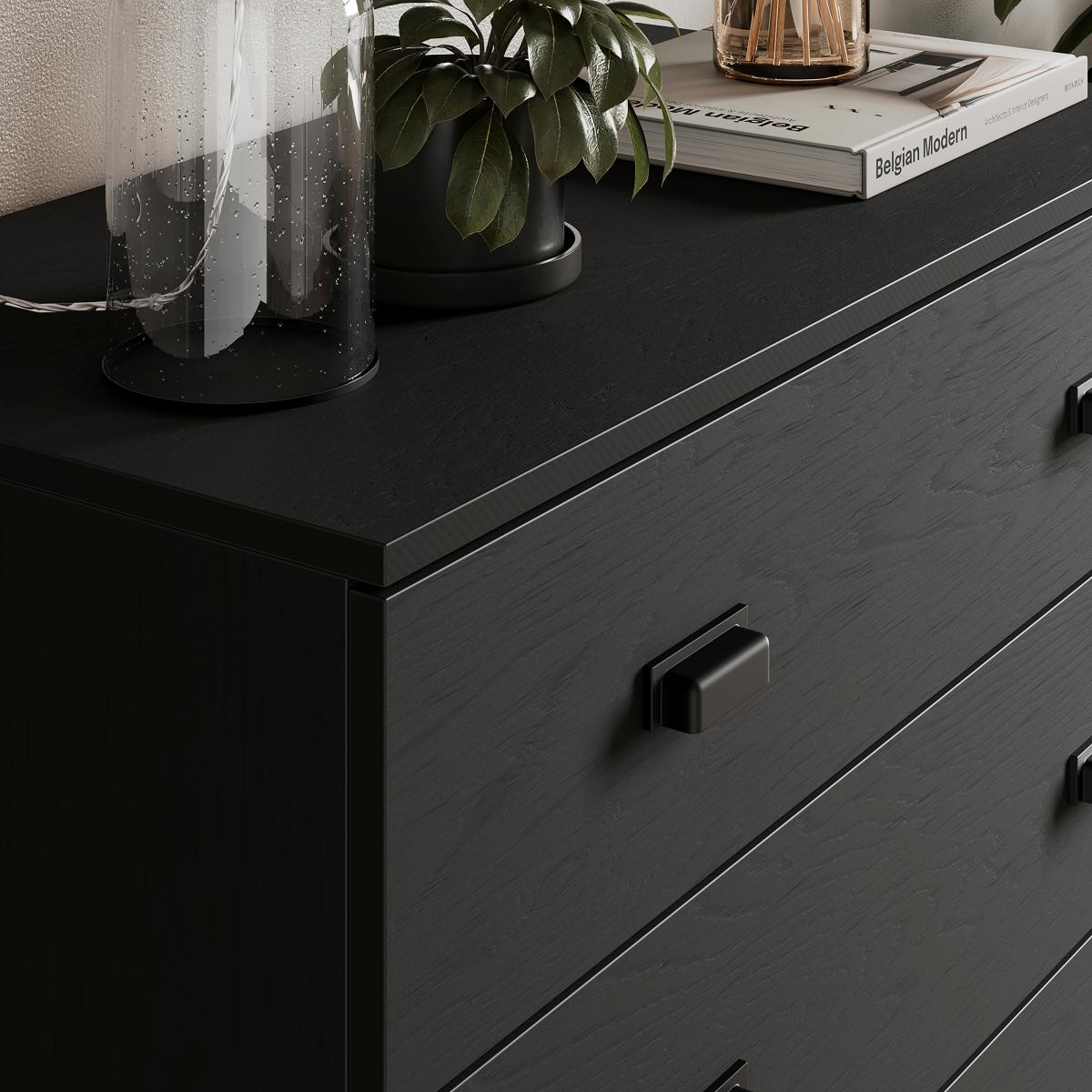 I love this black chest of drawers for its sleek, contemporary look and versatile style. Its clean lines and matte finish make it a great fit for modern, minimalist interiors, but it can also work well in industrial or Scandinavian schemes. The deep drawers offer practical storage, perfect for bedrooms or living rooms, while the black finish adds a touch of sophistication. For styling tips, consider pairing it with metal or concrete accents to enhance its modern vibe, or soften the look with textured textiles or linen accessories. It’s a practical statement piece that balances functionality with chic design.