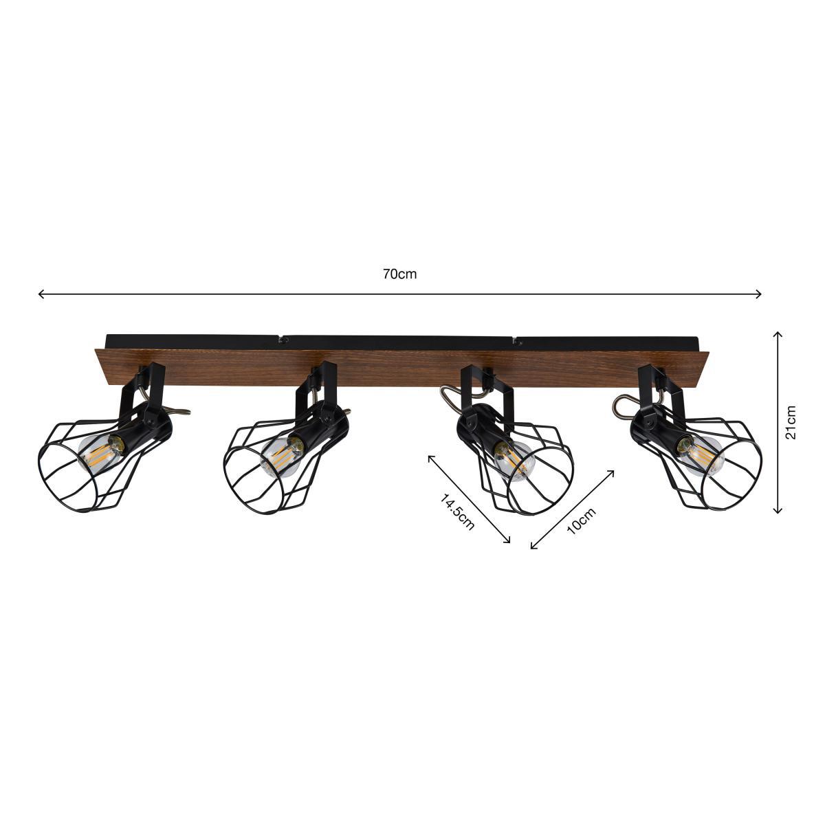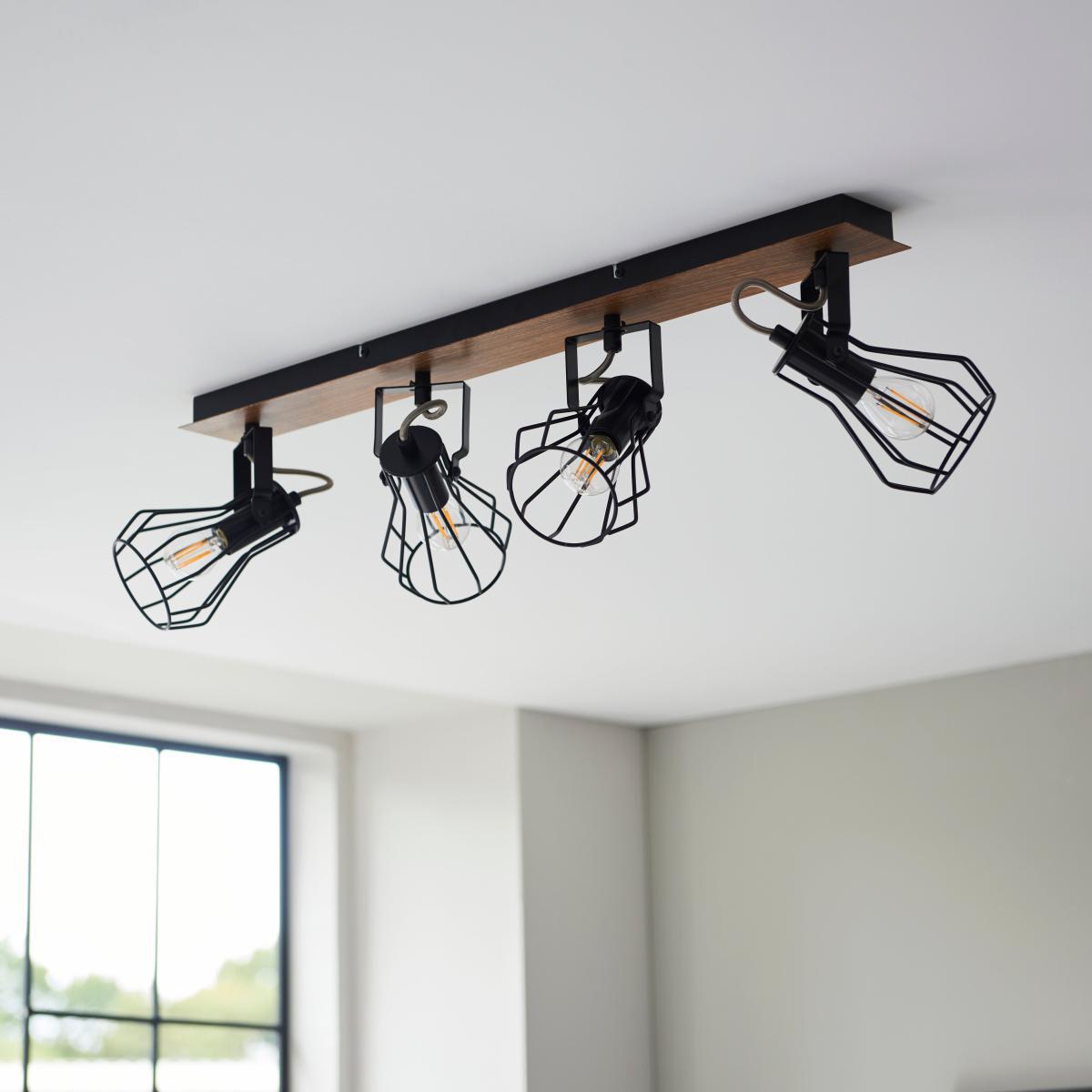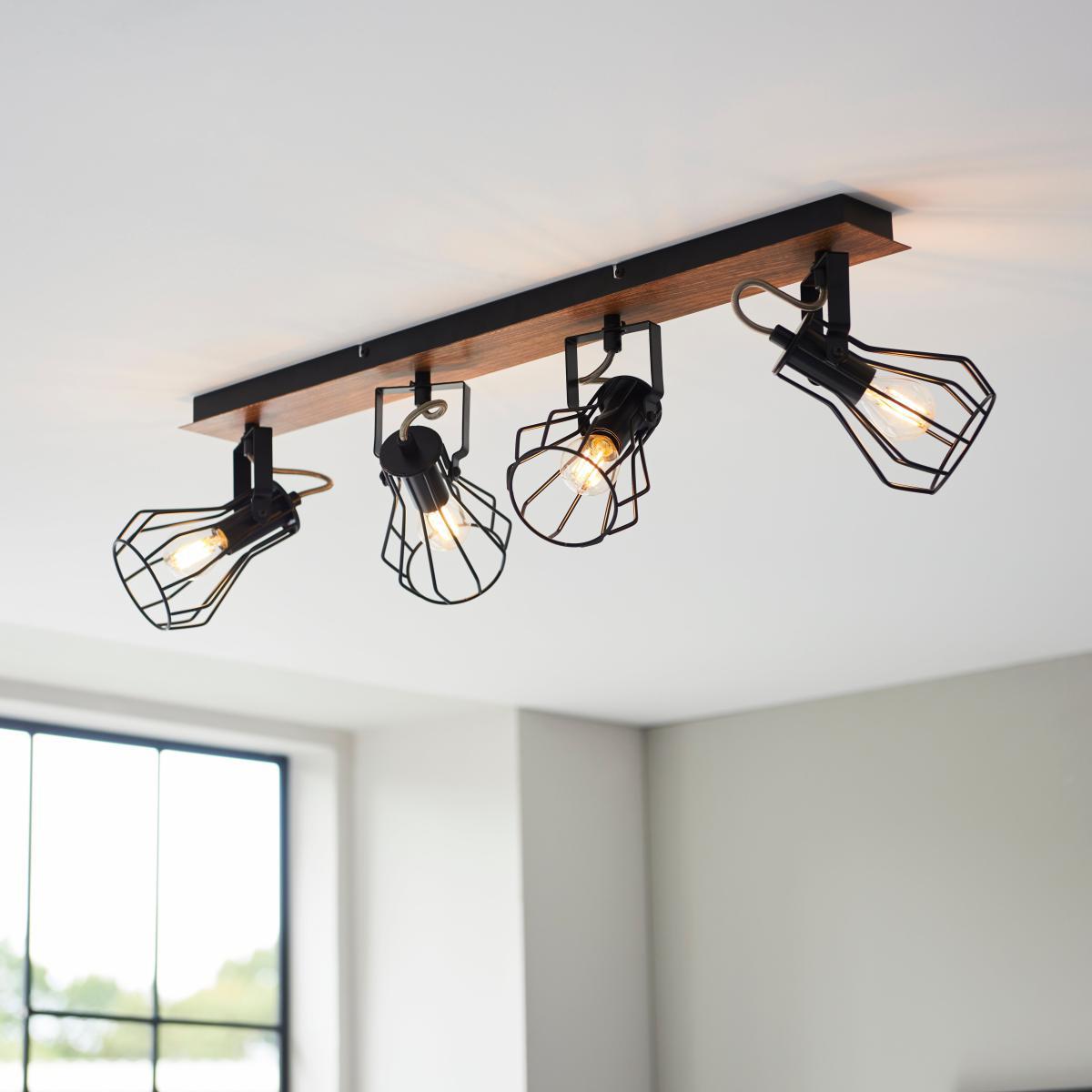 Brighten up your home with the stunning Fulton 4 Light Spotlight Bar. This modern contemporary inspired spotlight bar would suit a range of interiors. It features a dark wood effect bar base with four fully adjustable, matt black paint finish heads for a contrasting look. This stunning spotlight is dimmable compatible and perfect for adding a contemporary touch to your home, with matching family items available to help coordinate your home.