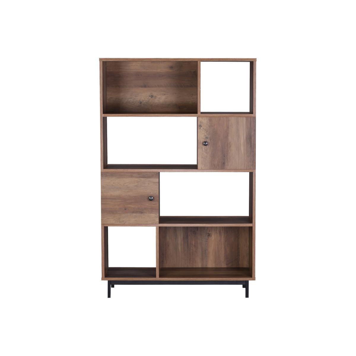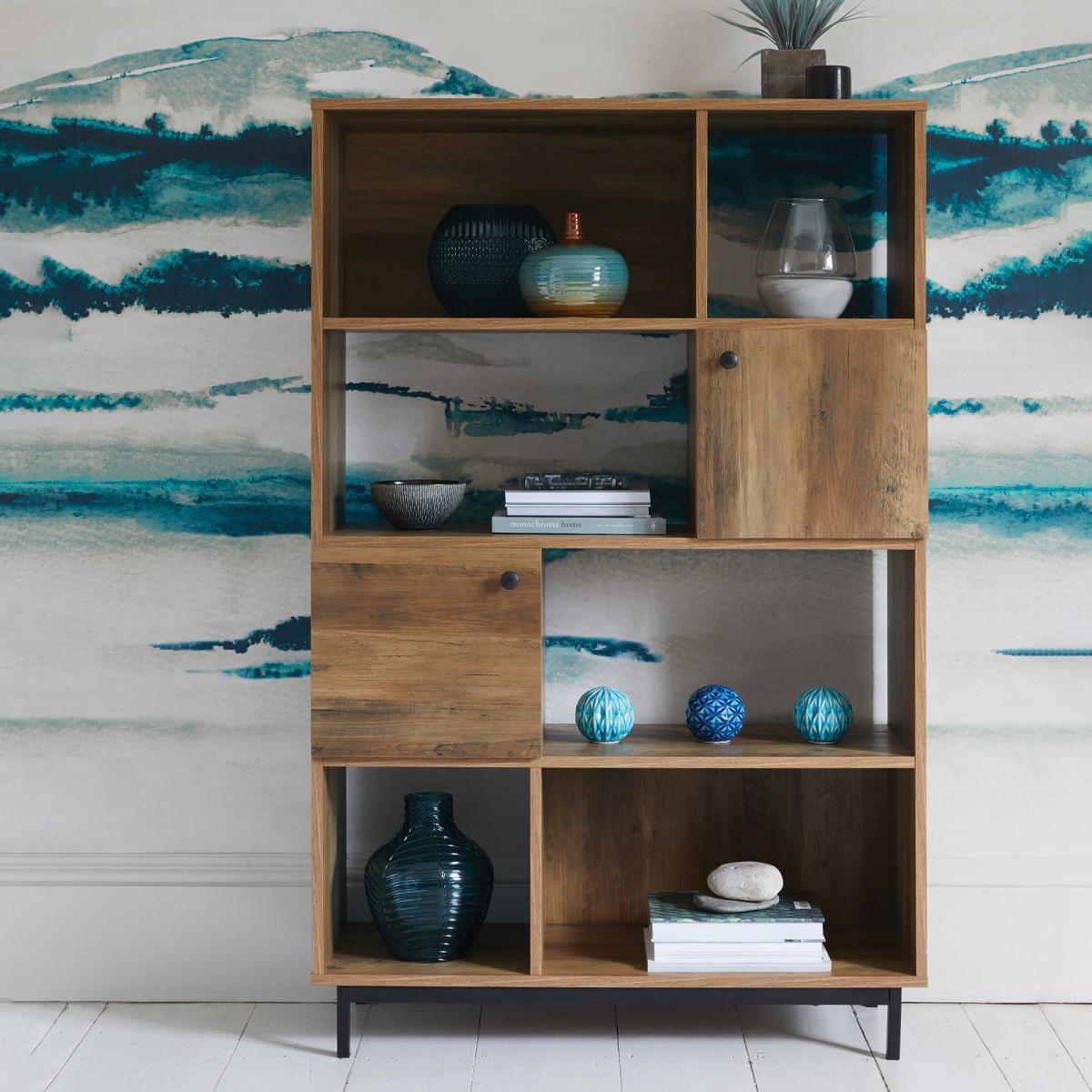 Dunelm Exclusive - Designed and Developed by Dunelm. Inspired by contemporary and simplistic styling the Fulton range is a perfect statement piece to any living space. Made from durable materials with a metal tube base and unique matt finish, this self-assembly range features a rustic pine-effect finish with complementing black handles. Designed with a straight edge finish, this stylish bookcase features six open shelves and two square cupboards, complete with adjustable hinged doors. Care Instruction: Only clean using a damp cloth and mild detergent, do not use bleach or abrasive cleaners. From time to time check that there are no loose screws on this unit. Remove any spills immediately to avoid. Staining and dust regularly with a soft lint free cloth or duster. This product is also available in an. Oak finish.