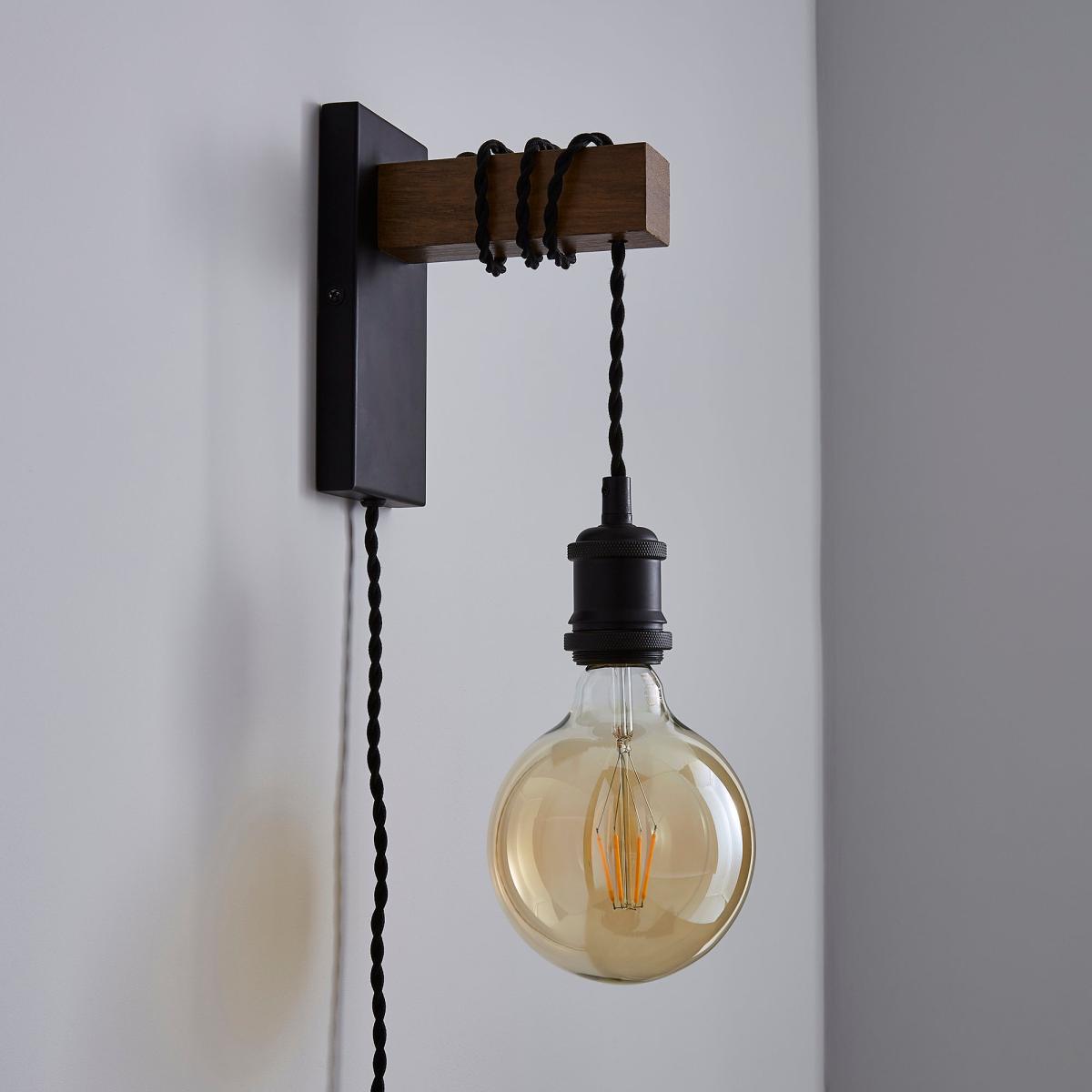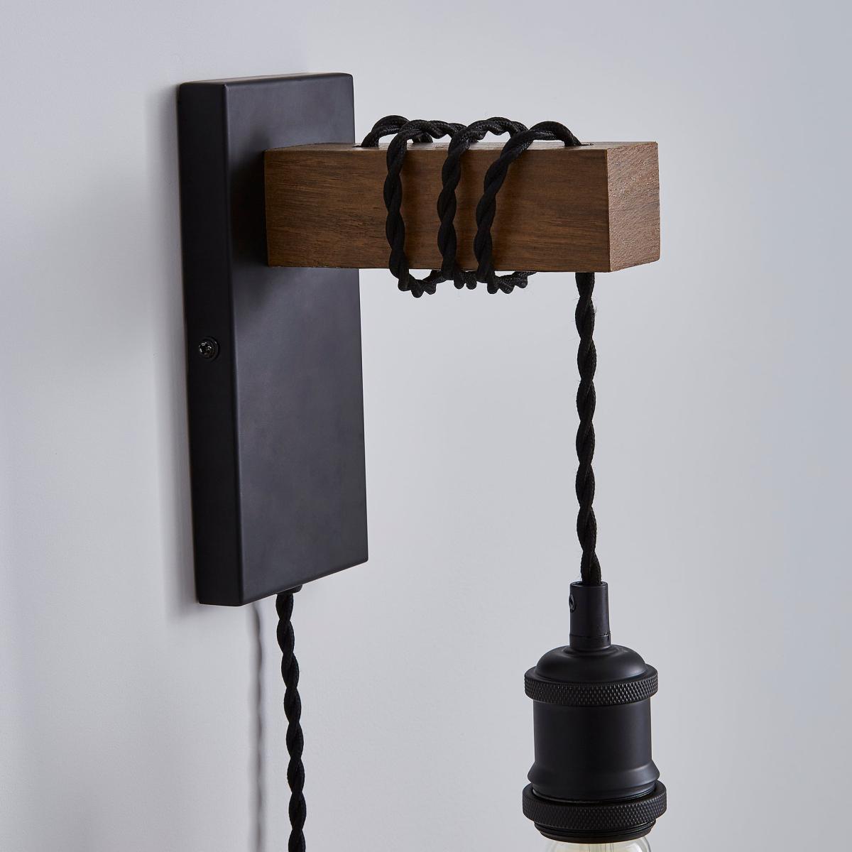 This easy to fit, plug-in wall light has a rustic pine finish and modern colourway that will complement an array of home decors. With a 1. 8m cable from the plug to the light, this wall light is the perfect piece to accompany any room of the house. Matching family items are also available.