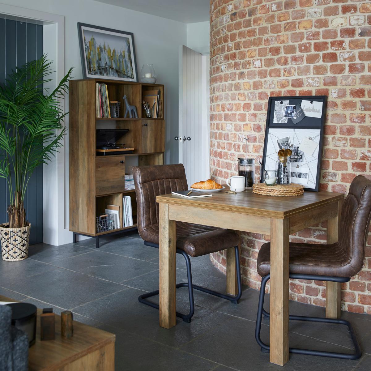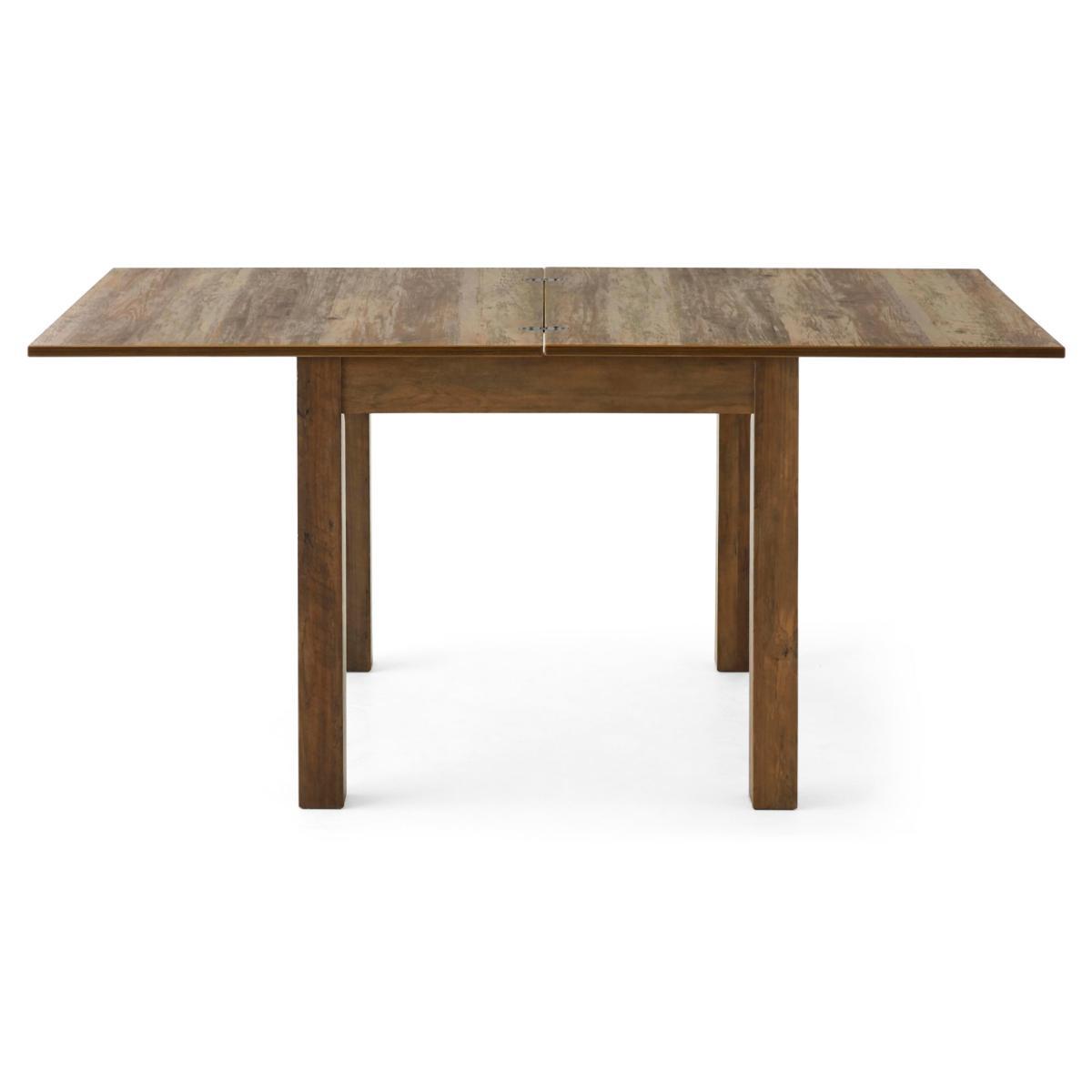 Dunelm Exclusive - Designed and Developed by Dunelm. Inspired by contemporary and simplistic styling the Fulton range is a perfect statement piece to any living space. Made from durable materials, this self-assembly range features a rustic pine-effect finish. Cleverly crafted with a fold out mechanism, this flip top dining table can easily be converted to create extra space to accommodate 4-6 people. Designed with four strong legs and a thick edge finish, this dining table is an ideal solution for compact space. Care Instruction: Only clean using a damp cloth and mild detergent, do not use bleach or abrasive cleaners. From time to time check that there are no loose screws on this unit. Remove any spills immediately to avoid staining and dust regularly with a soft lint free cloth or duster. This product is also available in an. Oak finish.