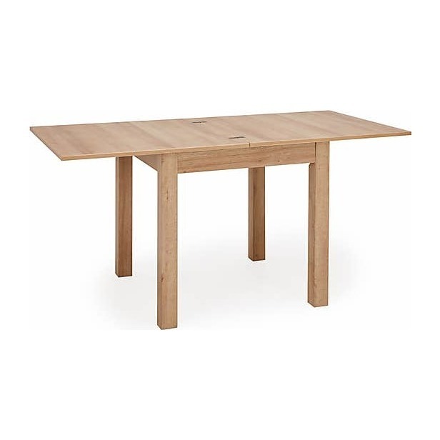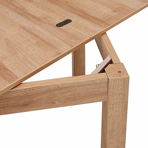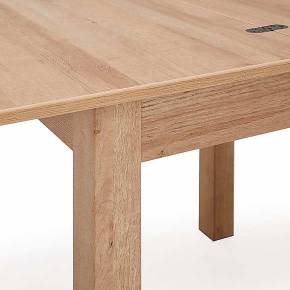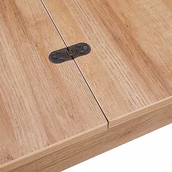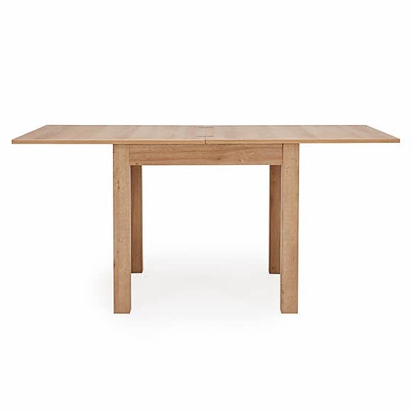 Dunelm Exclusive - Designed and Developed by Dunelm. Inspired by contemporary and simplistic styling the Fulton range is a perfect statement piece to any living space. Made from durable materials, this self-assembly range features an oak-effect finish. Cleverly crafted with a fold-out mechanism, this flip top dining table can easily be converted to create extra space to accommodate 4-6 people. Designed with four strong legs and a thick edge finish, this dining table is an ideal solution for compact space. Care Instructions: Only clean using a damp cloth and mild detergent, do not use bleach or abrasive cleaners. From time to time check that there are no loose screws on this unit. Remove any spills immediately to avoid staining and dust regularly with a soft lint free cloth or duster. This product is also available in a. Pine finish.