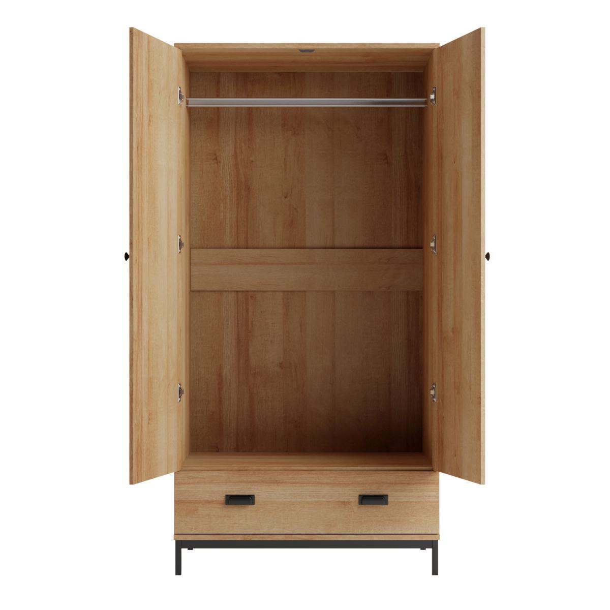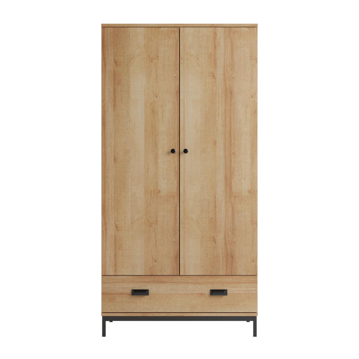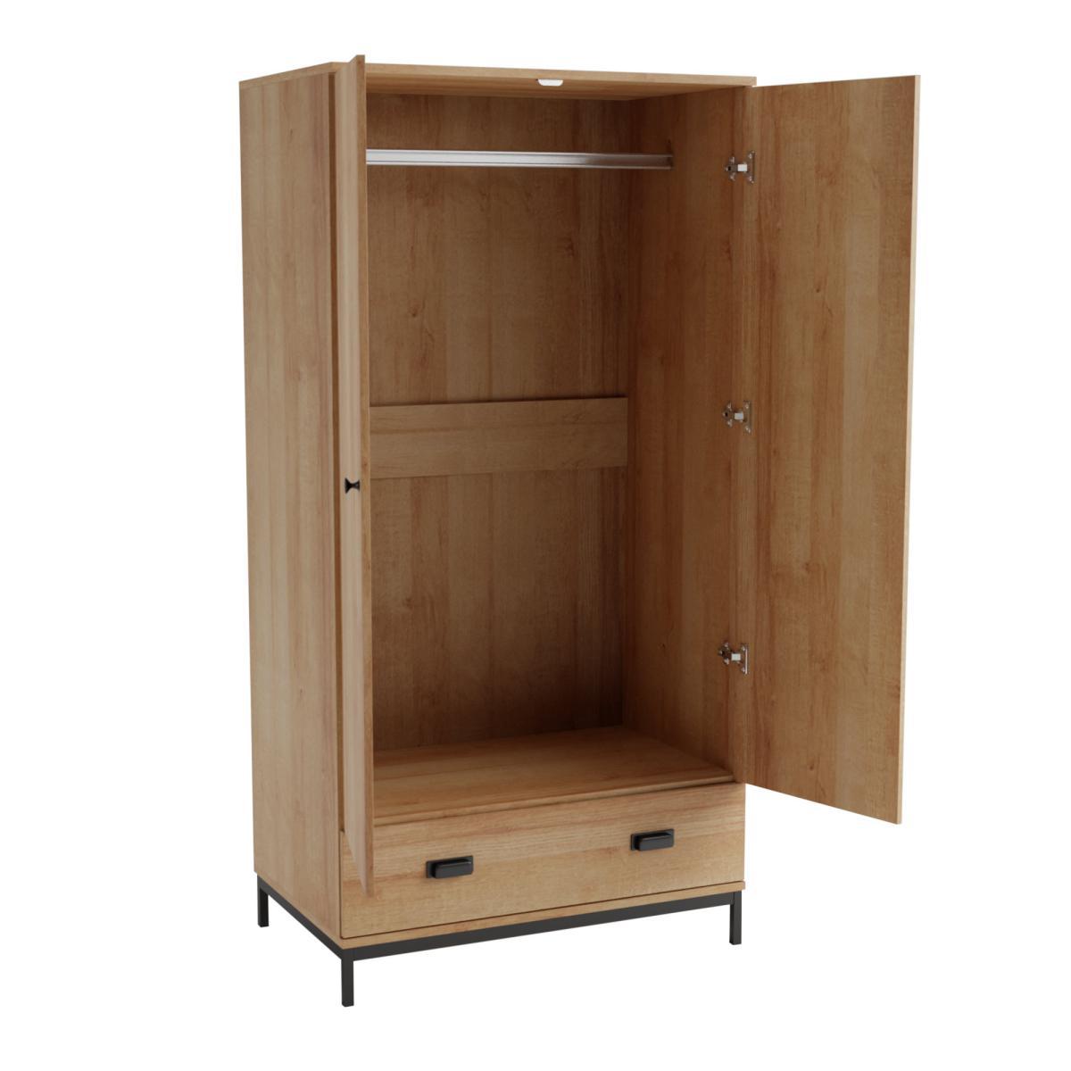 Dunelm Exclusive - Designed and Developed by Dunelm. Inspired by contemporary and simplistic styling the Fulton range is the perfect statement piece for your living areas. Made from durable materials with a metal tube base and unique matt finish, this self-assembly range features a rustic oak-effect finish with complementing gun metal handles. Offering plenty of useful storage space, the Fulton Gents Wardrobe comes complete with a single hanging rail and a spacious drawer with smooth metal extension runners and a safety pull out stop. Care Instructions: Only clean using a damp cloth and mild detergent, do not use bleach or abrasive cleaners. From time to time check that there are no loose screws on this unit. Remove any spills immediately to avoid staining and dust regularly with a soft lint free cloth or duster.