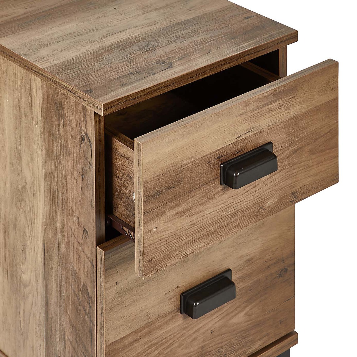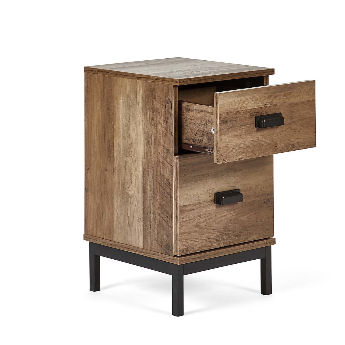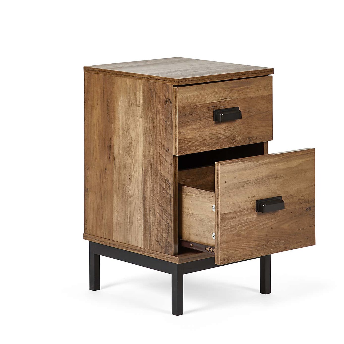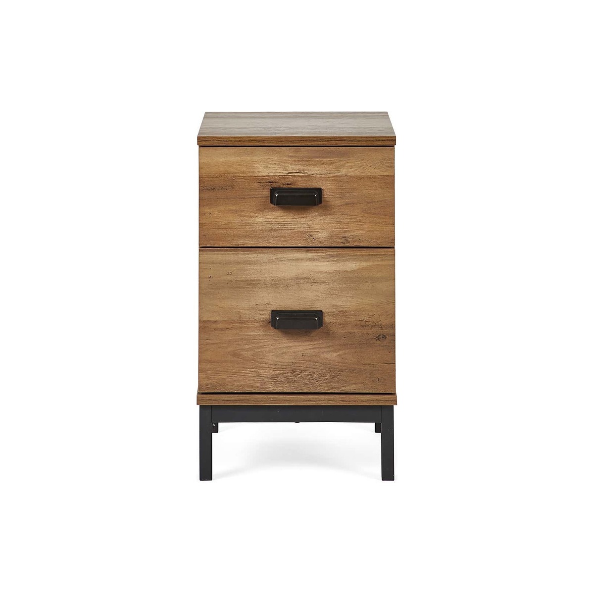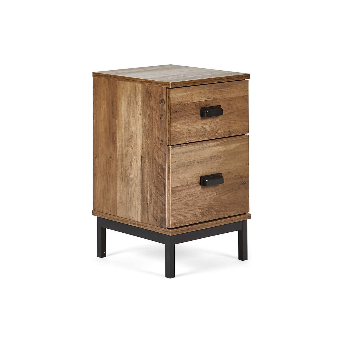 Dunelm Exclusive - Designed and Developed by Dunelm* Compact size* Study metal tube base* Black metal handles With a practical, slim-line design that’s a perfect fit for smaller bedrooms, we love this versatile little Fulton Slim Bedside with its oak effect finish and useful drawers. The black metal legs and handles add an industrial-inspired vibe to this piece for an edgy feel that's timeless and pairs perfectly with a myriad of interior styles. This versatile piece can be added to any room in the home to make use of tight spaces while making it easy to reach for any bits and bobs you wish to keep nearby.
