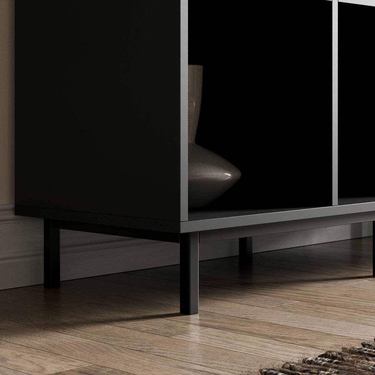 * 15 cube storage spaces * Pine effect or black finish * Black metal base * Part of the Fulton range This tall sideboard is a bold statement piece that will really make an impact on your home. With 15 open cupboard spaces, you can display all your favourite items with ease, including books, vases, plants, photos, and more. Style it your way: leaving the cubes open to let your objects shine, or incorporating decorative cube storage - the choice is yours!Please note: All cube storage is sold separately.