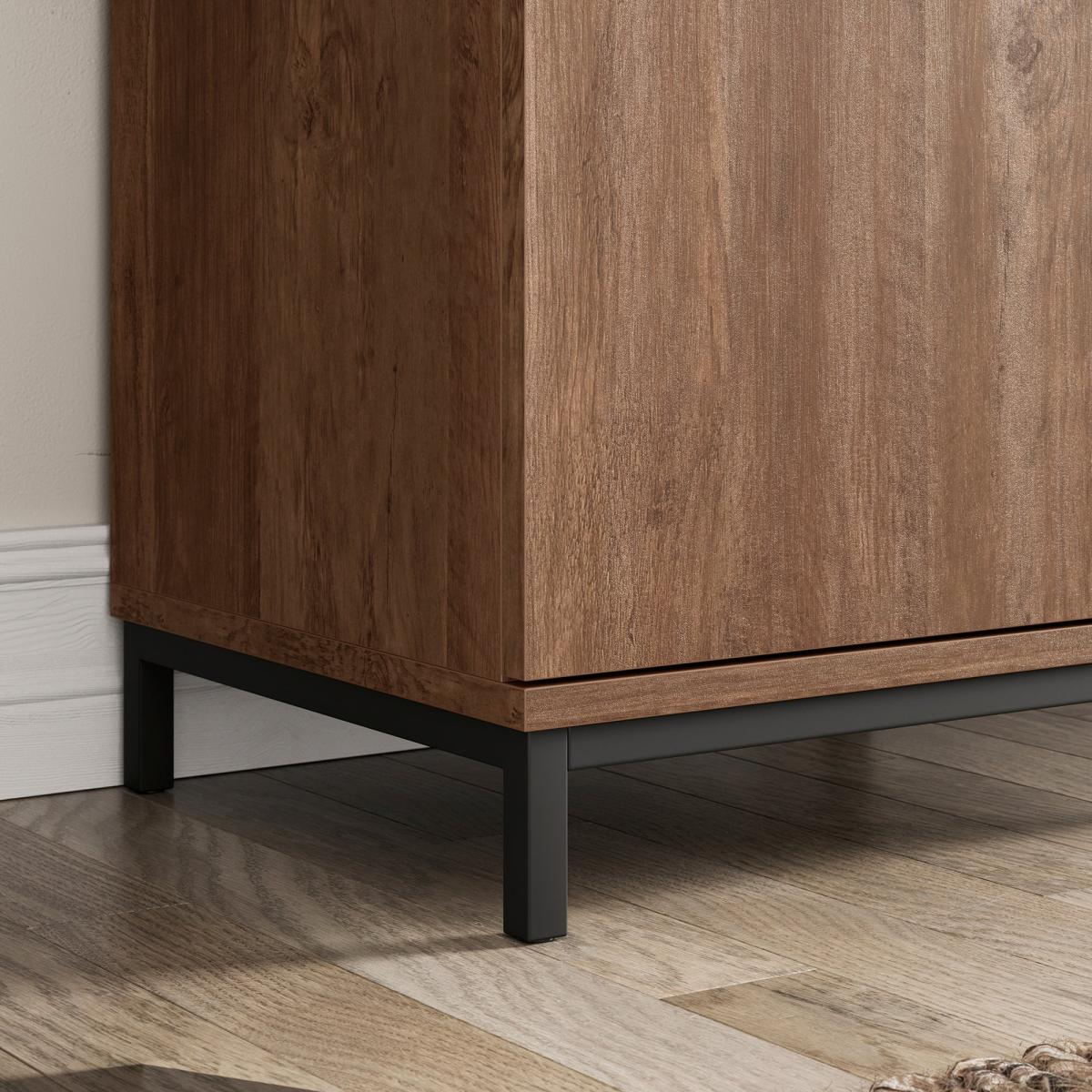 * Compact design* 4 large shelves* Metal legs This compact yet spacious piece, exclusively designed by Dunelm, features adjustable shelves, two drawers, and a cupboard door, providing a tailored solution for organising shoes and accessories. The pine-effect finish adds a warm touch, while the sleek metal handles and legs create a modern aesthetic.