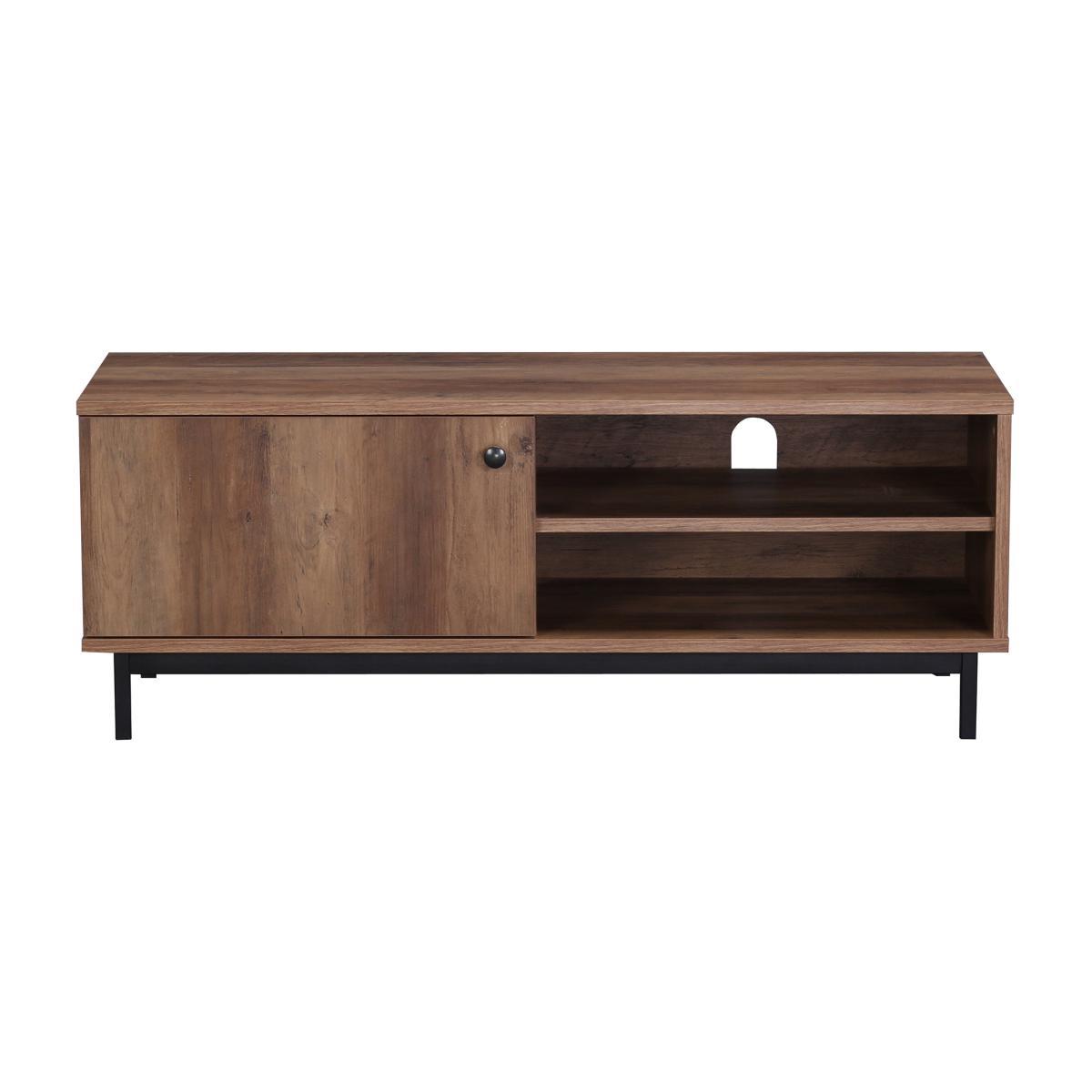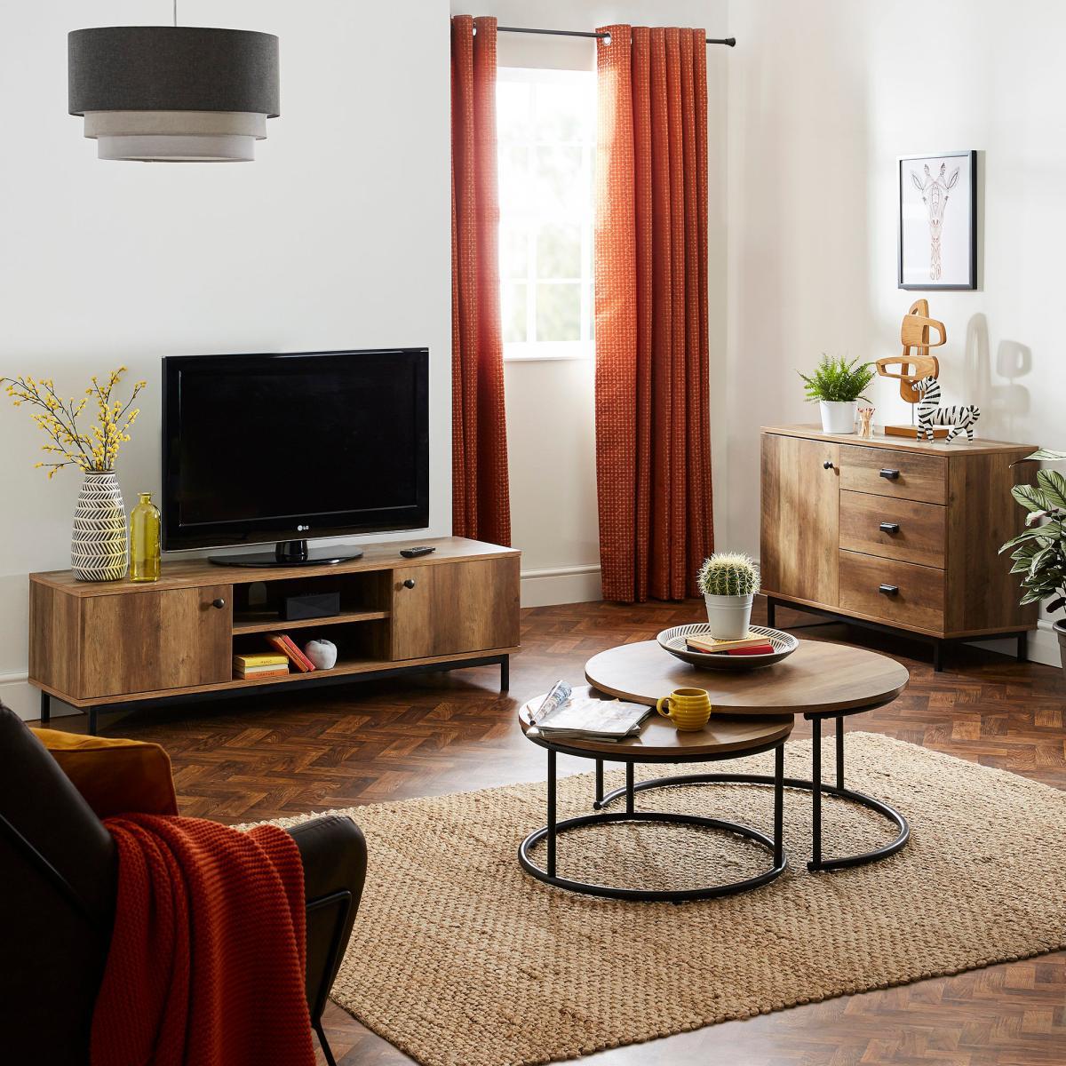 Dunelm Exclusive - Designed and Developed by Dunelm. Inspired by contemporary and simplistic styling the Fulton range is a perfect statement piece to any living space. Made from durable materials with a metal tube base and unique matt finish, this self-assembly range features a rustic pine-effect finish with complementing black handles. Designed with a spacious cupboard, equipped with a fixed shelf and adjustable hinged door, this stylish TV stand offers plenty of useful storage space. The two open shelves are perfect for games consoles and media devices, complete with access at the back for keeping your cables organised and out of sight. Care Instruction: Only clean using a damp cloth and mild detergent, do not use bleach or abrasive cleaners. From time to time check that there are no loose screws on this unit. Remove any spills immediately to avoid staining and dust regularly with a soft lint free cloth or duster. To view the assembly instructions.