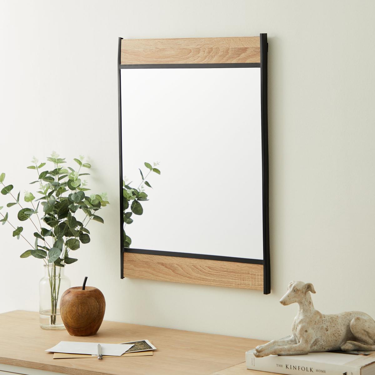 Fulton Wall Mirror in Oak 40cm x 58cm Black/Brown